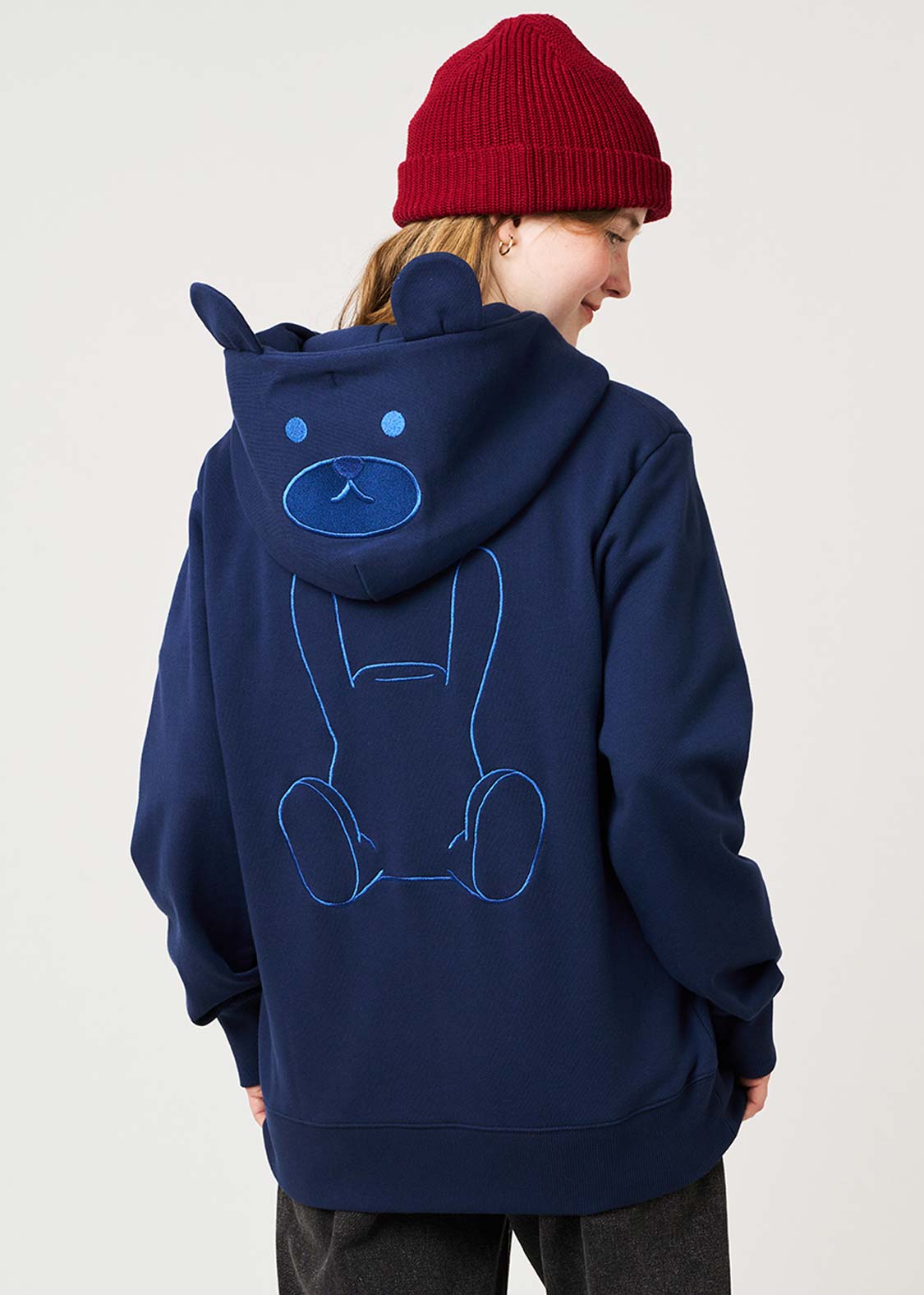 ・後ろから見たときにフードがきれいに立ち上がり、さりげない遊び心がのぞくデザインに仕上げています。