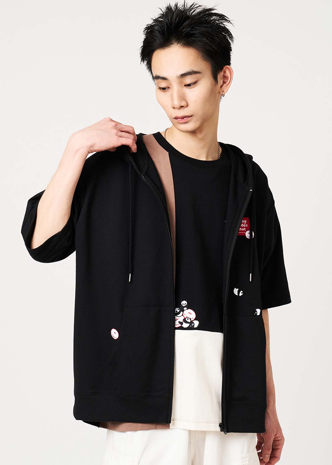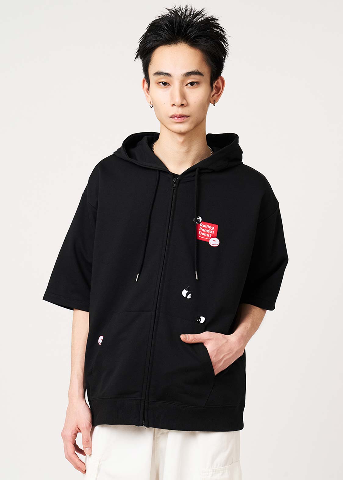 ・コットン混の薄手ミニ裏毛素材を使用した、やわらかな肌触りの5分袖ジップパーカーです。