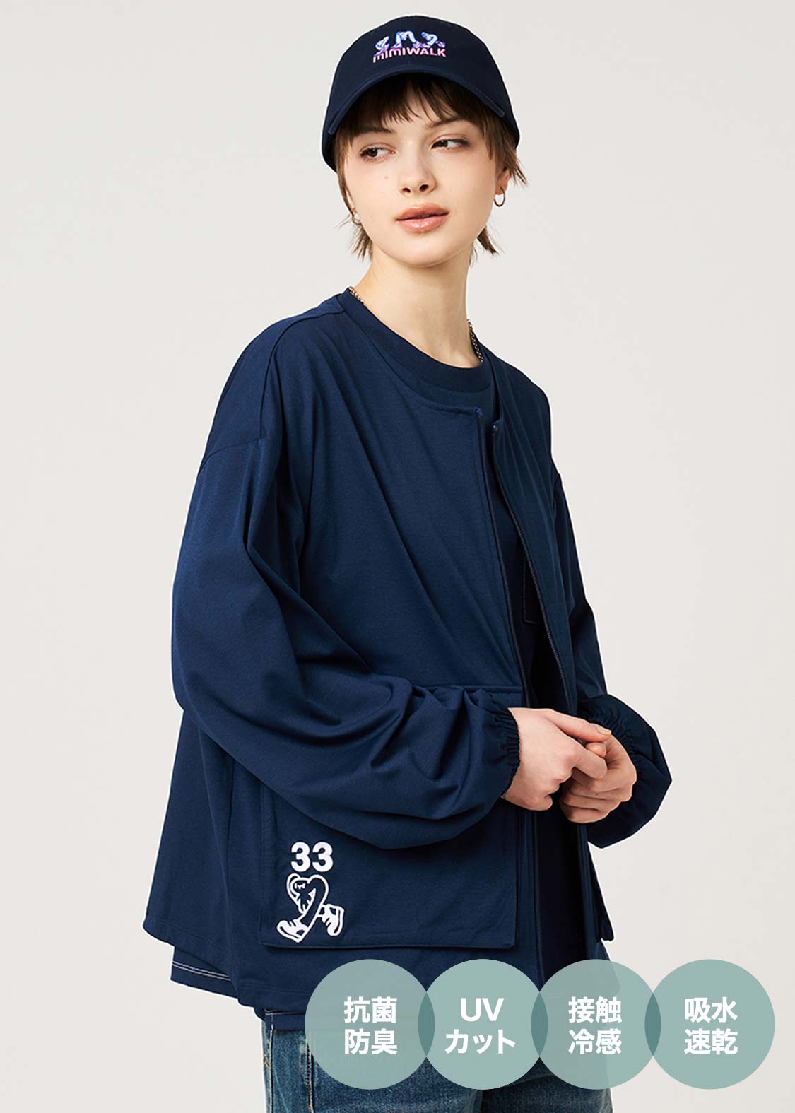 ・吸水速乾、接触冷感、UVカット、抗菌防臭の4つの機能を備えたWonder Dry素材を使用しています。
