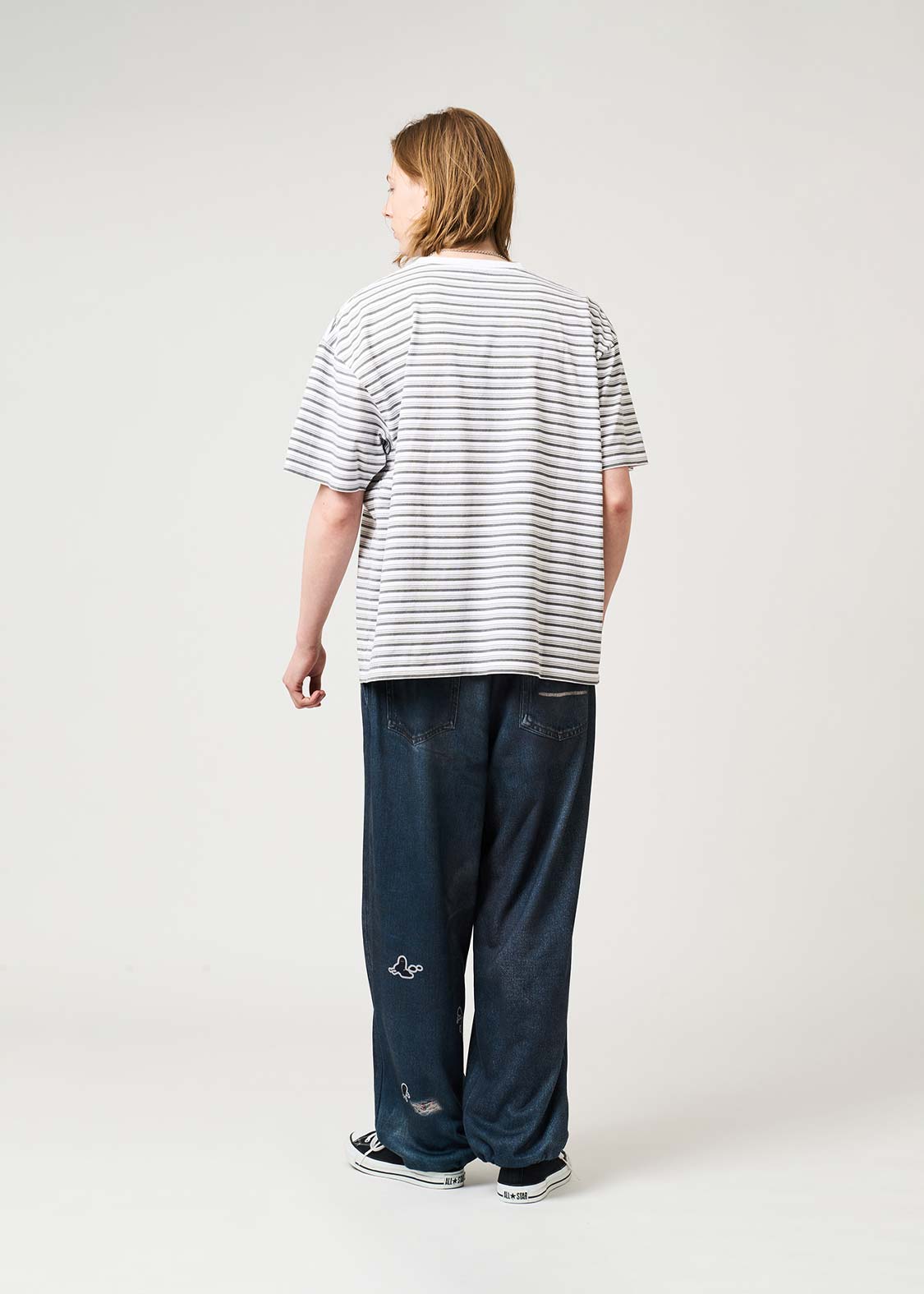 ・プリントボーダーにバイオウォッシュ加工を施し、ほどよく色をなじませたヴィンテージ感のある表情に仕上げています。