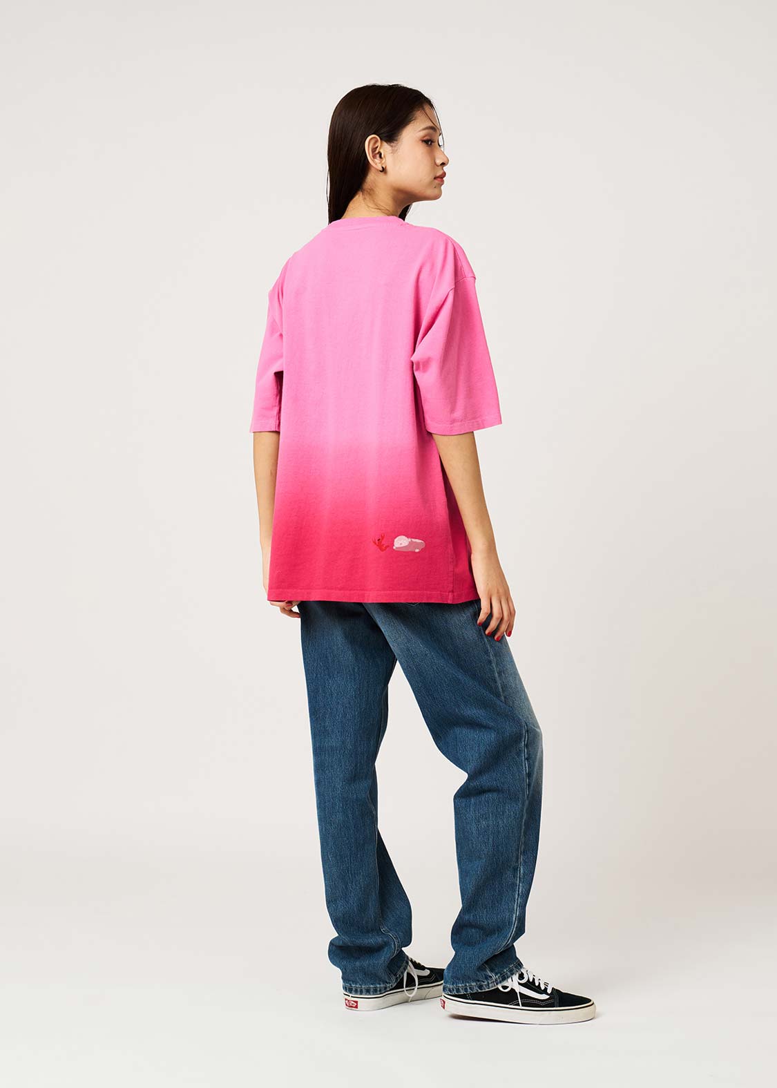 ・裾をグラデーション染めした後にピグメント加工を施し、プリント部分にもほどよいヴィンテージ感を持たせています。