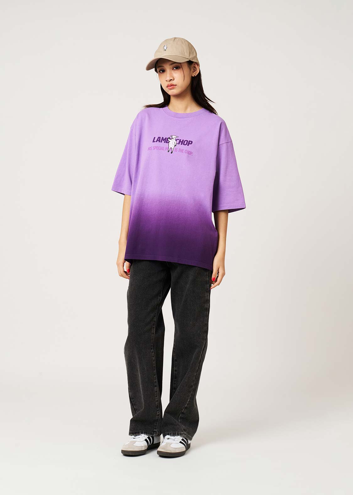 ・裾をグラデーション染めした後にピグメント加工を施し、プリント部分にもほどよいヴィンテージ感を持たせています。