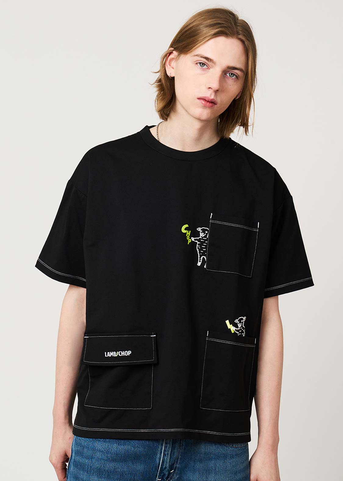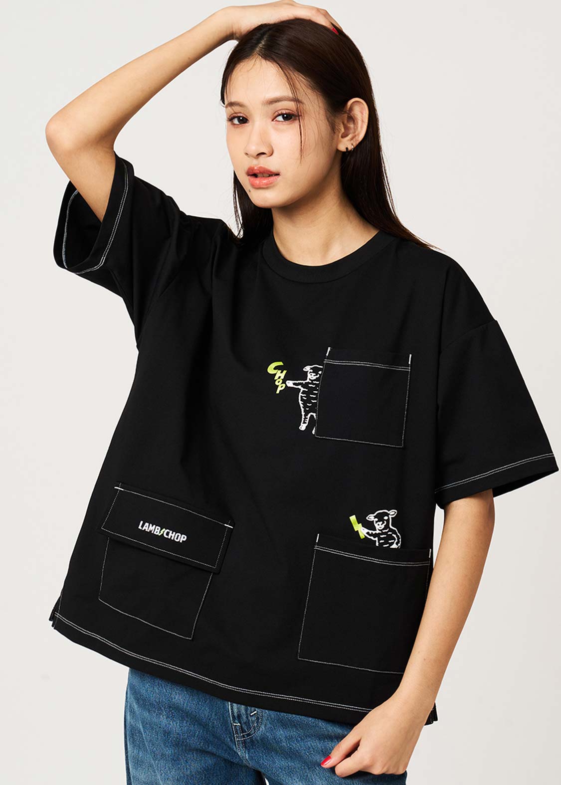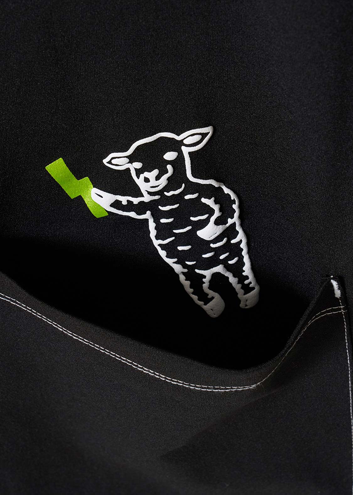 片手をあげるヒツジさん、ナンセンスな感性が見るものを刺激するデザインです。