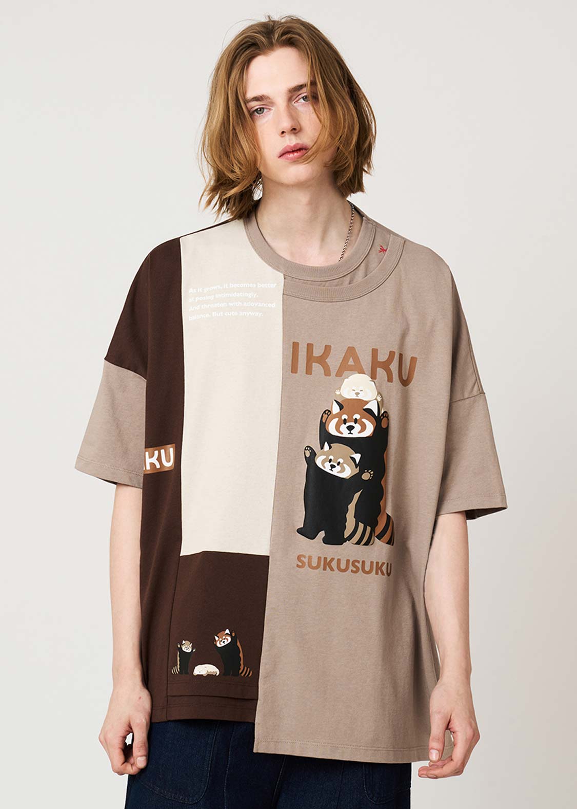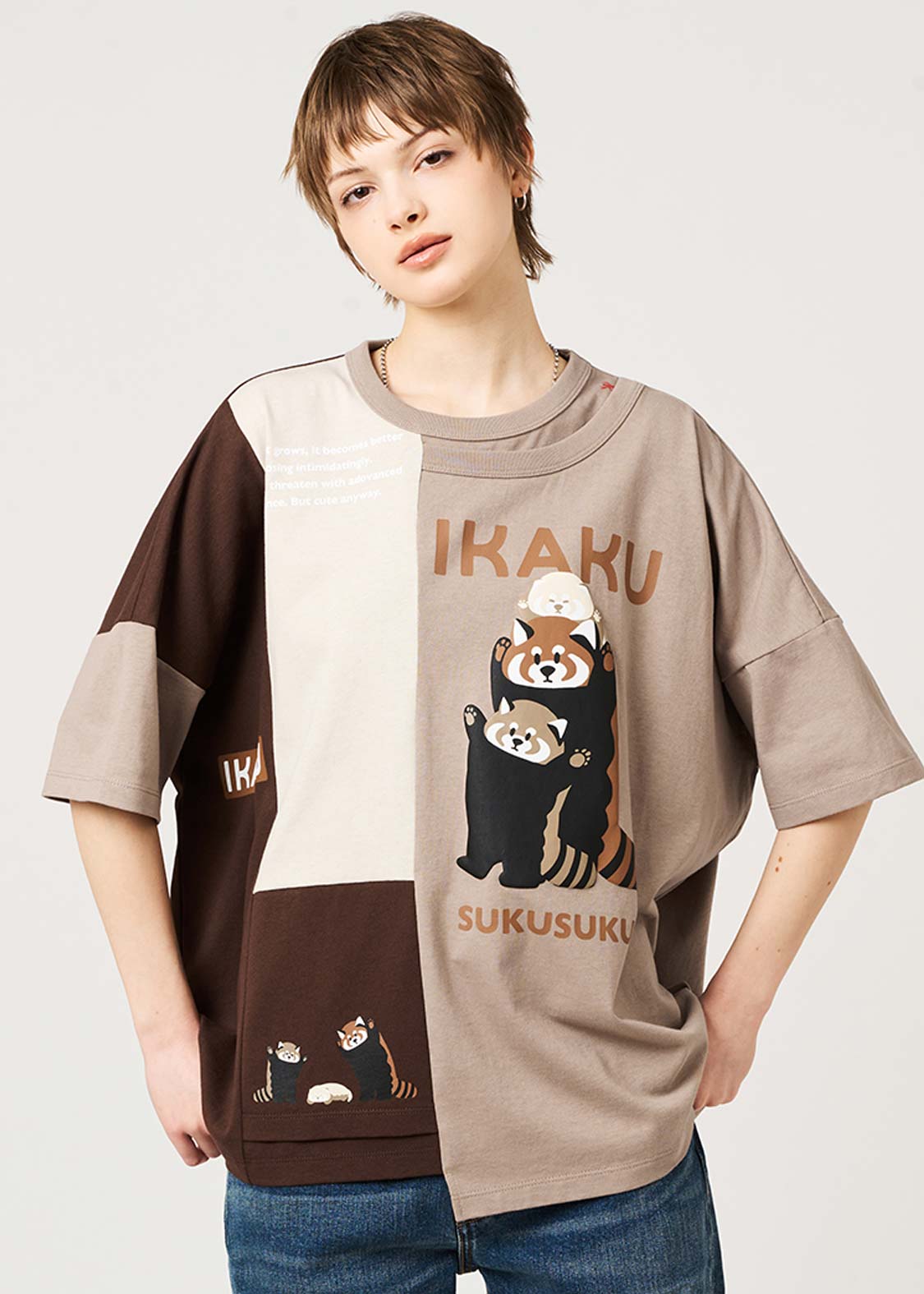 威嚇を練習するレッサーパンダと、まだ小さな子どもと赤ちゃん。生まれたての赤ちゃんも、ちいさな両手を精一杯あげてみせる姿が印象的です。ひとつひとつの成長をそっと切り取った、やわらかなグラフィックです。