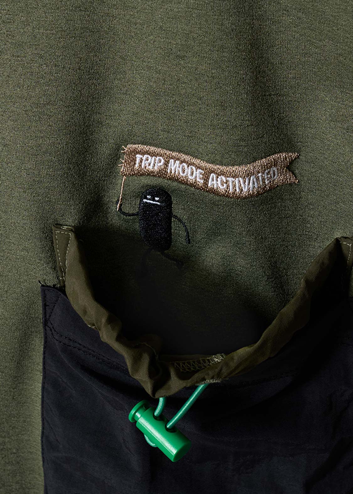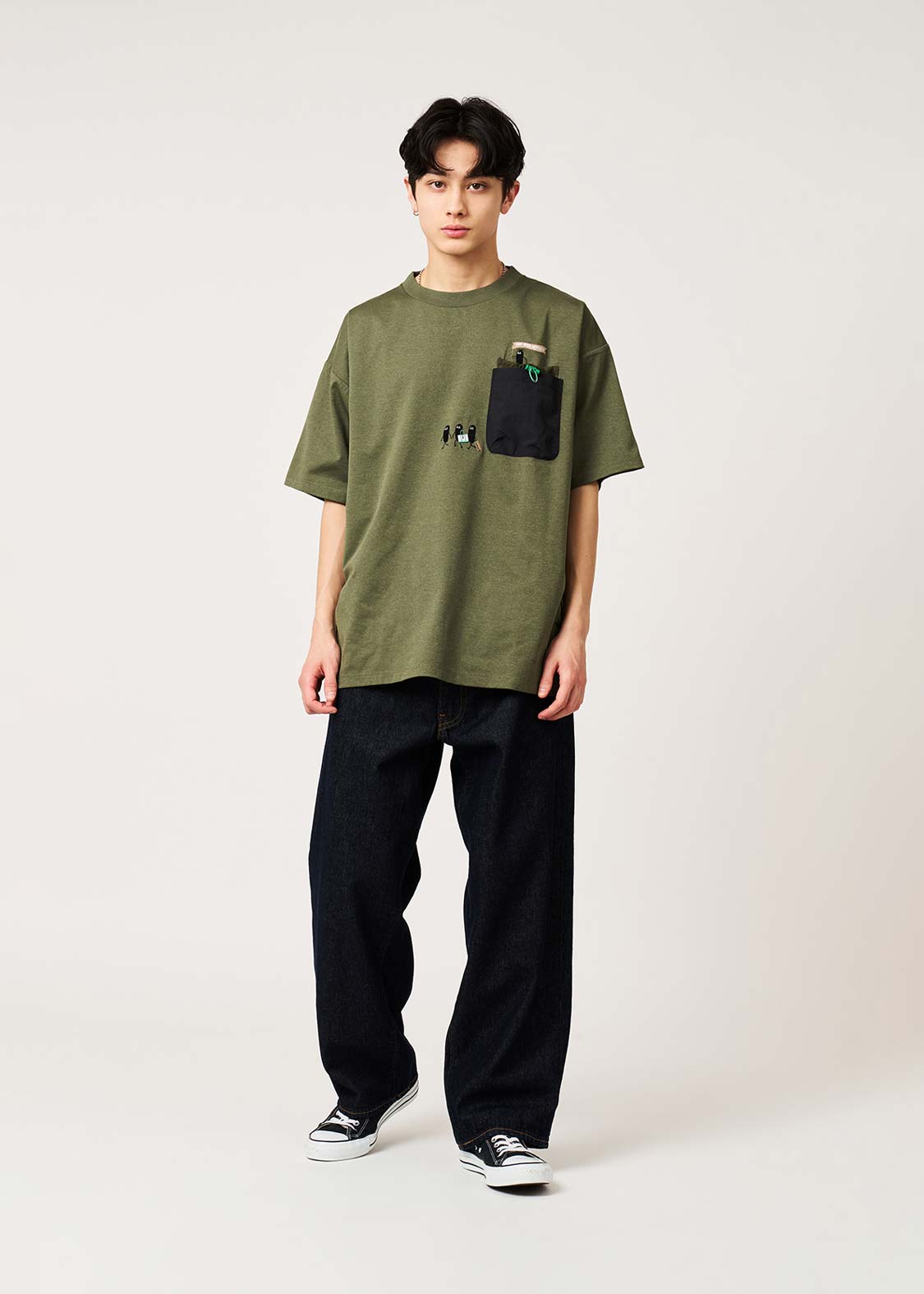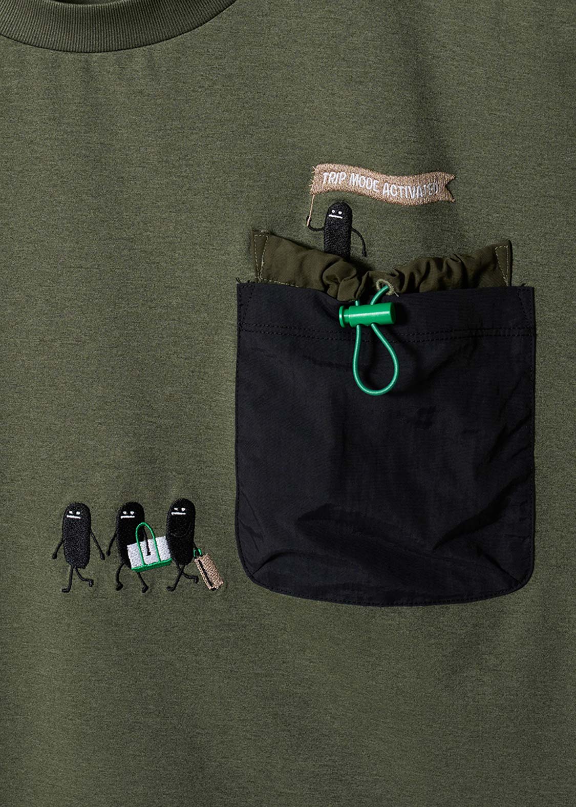 ・胸には巾着型とパッチ型のダブルポケットが付いたデザインがポイントです。