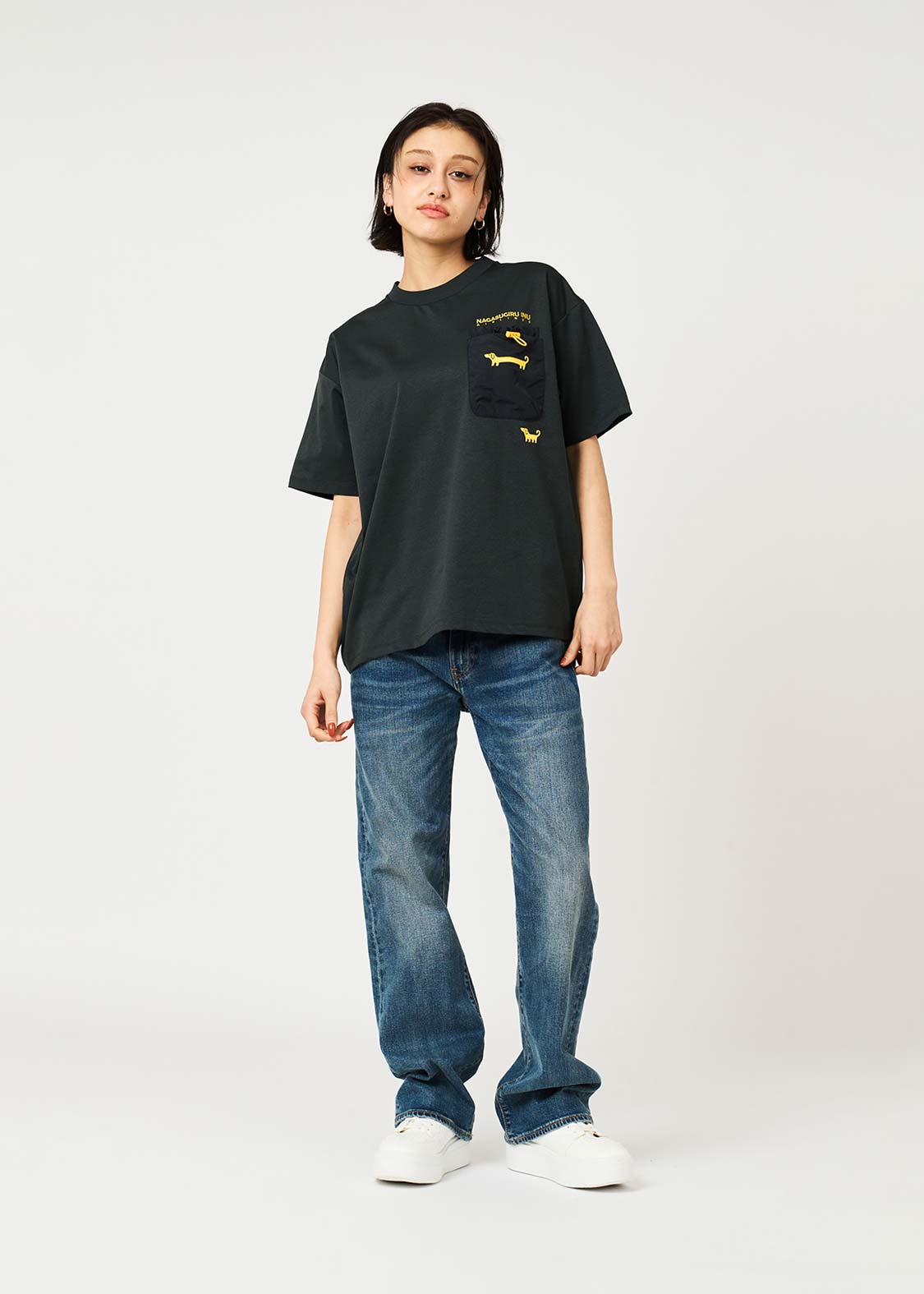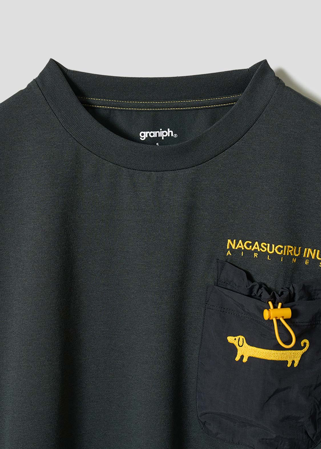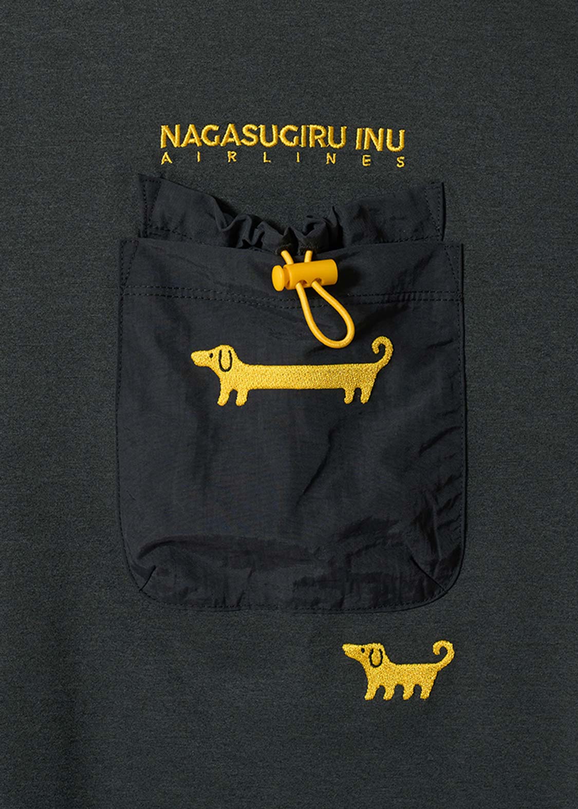 ・胸には巾着型とパッチ型のダブルポケットが付いたデザインがポイントです。