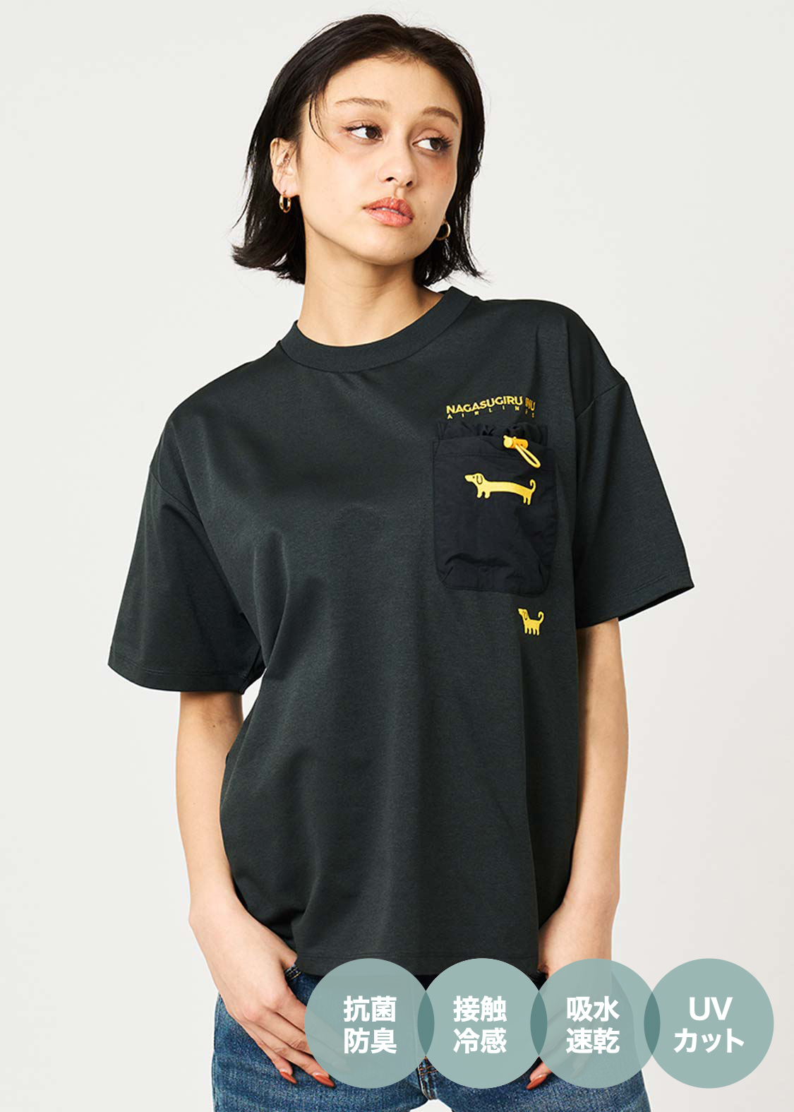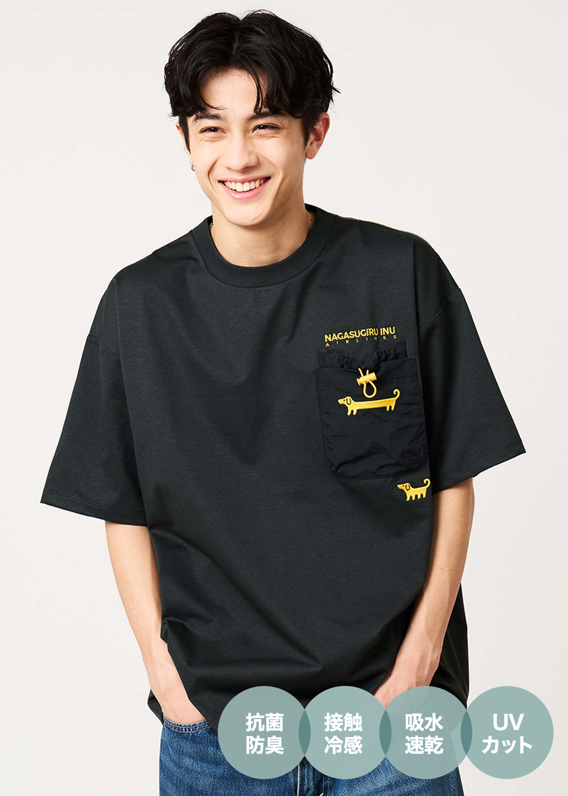 ・吸水速乾、接触冷感、UVカット、抗菌防臭の4つの機能を兼ね備えています。