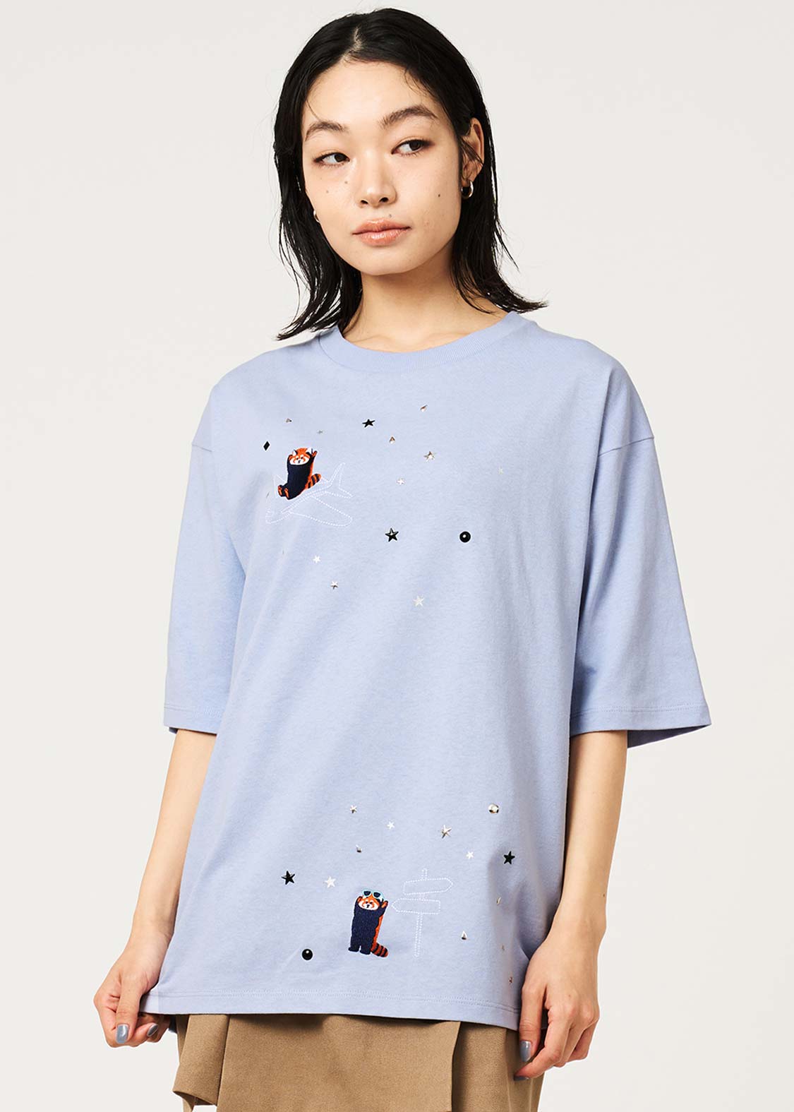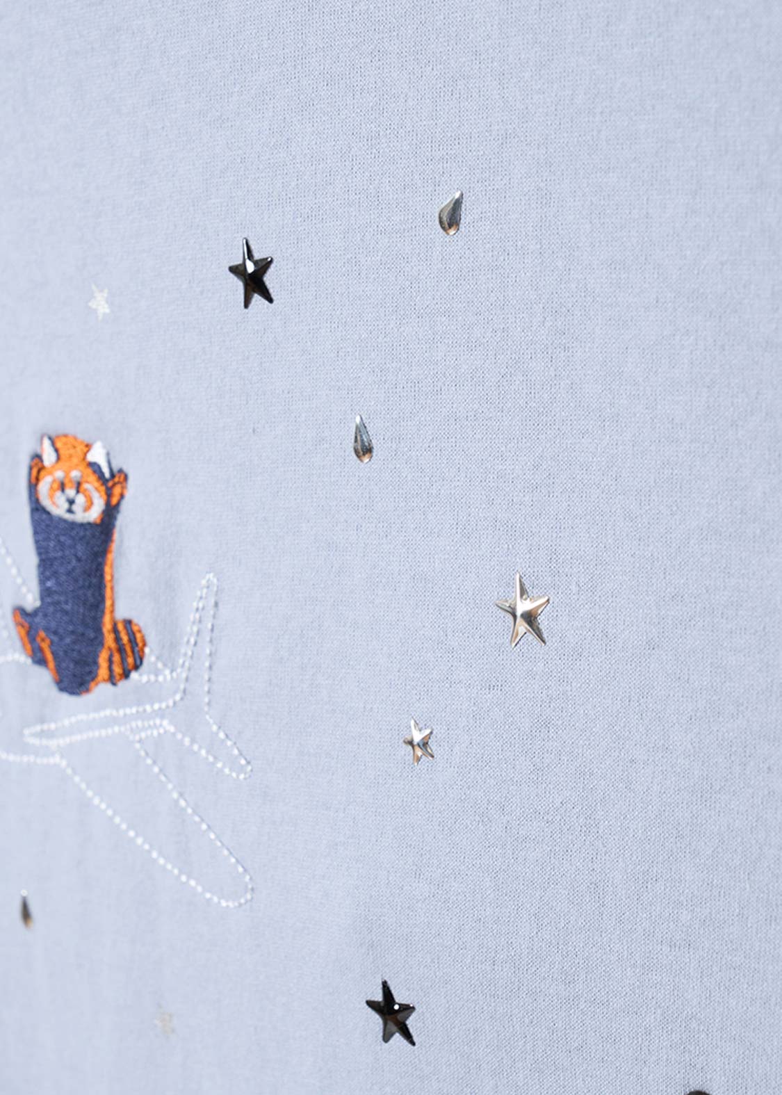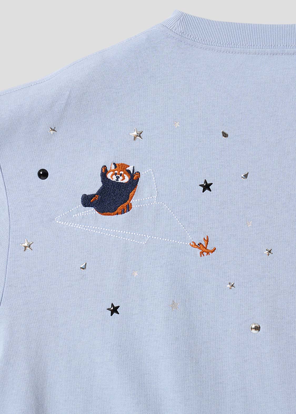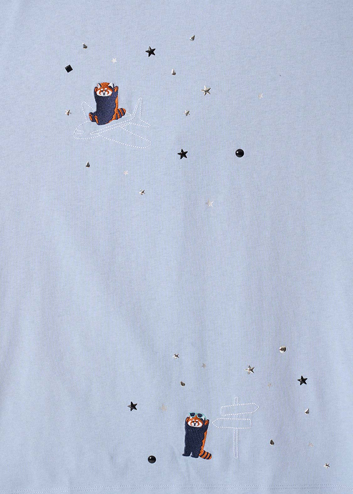 ・ホットフィックスと呼ばれる熱で圧着した小さなメタルチップを散りばめた、アクセントが効いたデザインです。