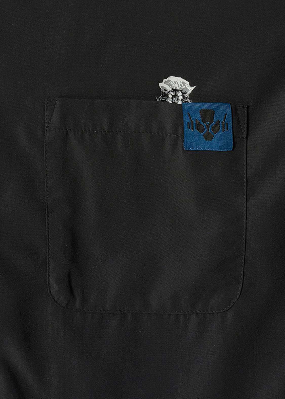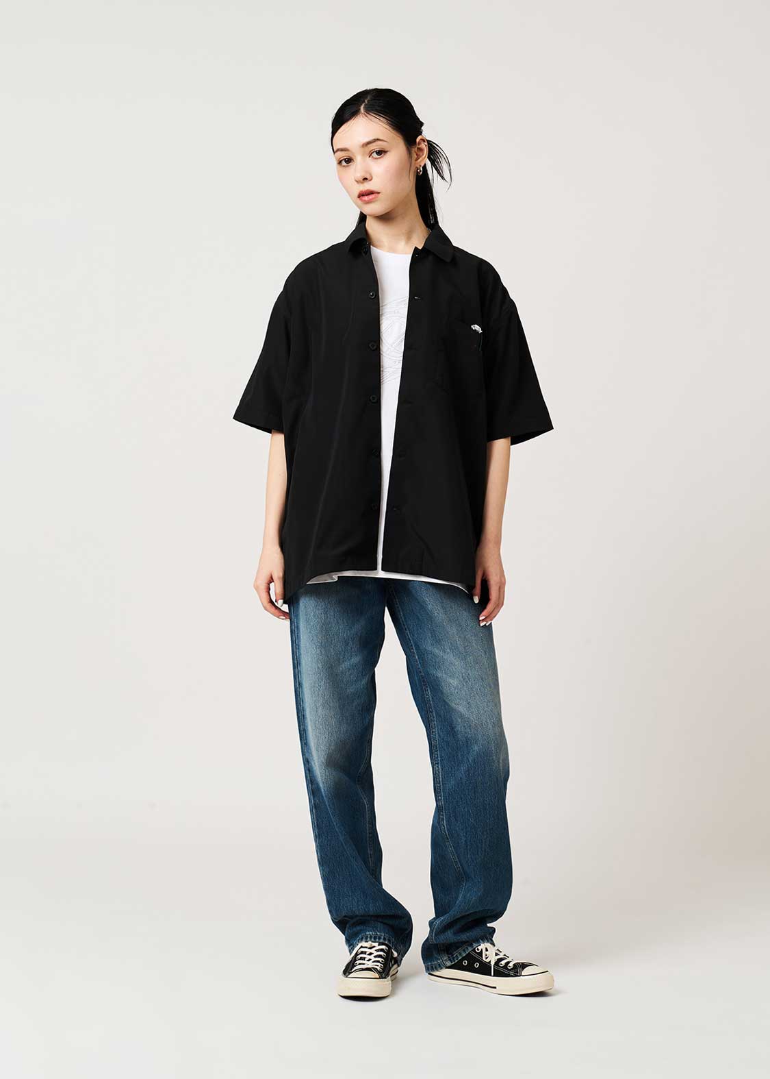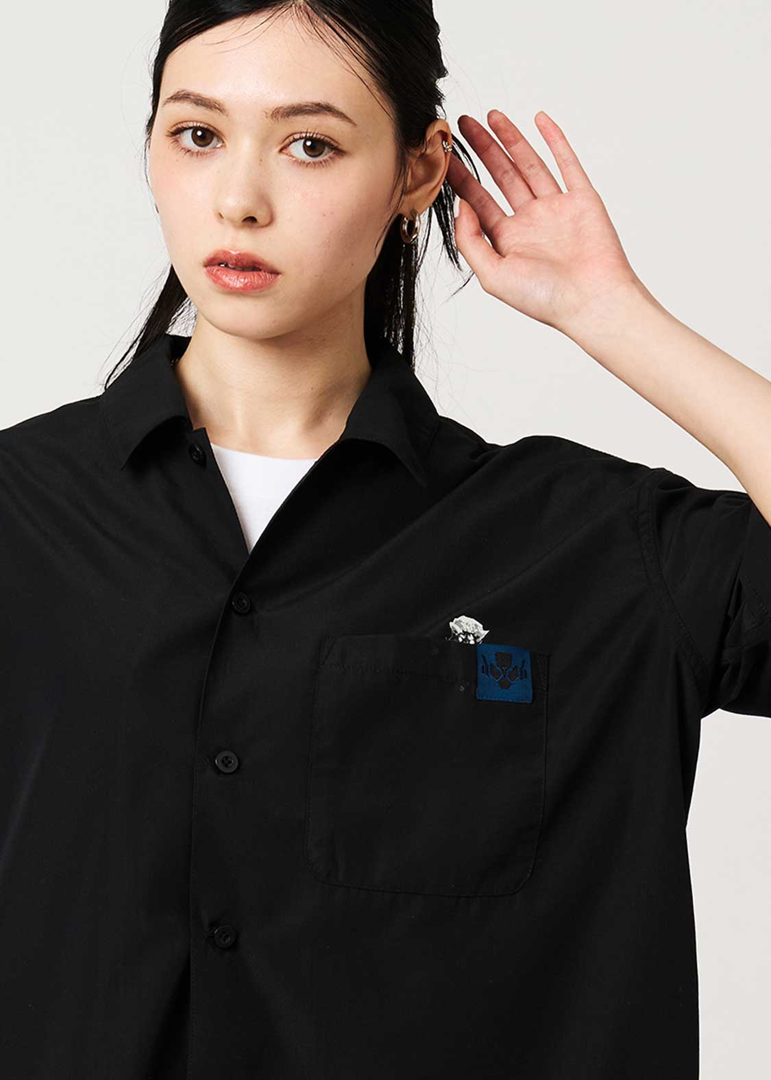 ・ポリエステル100%の生地を使用した半袖シャツです。
