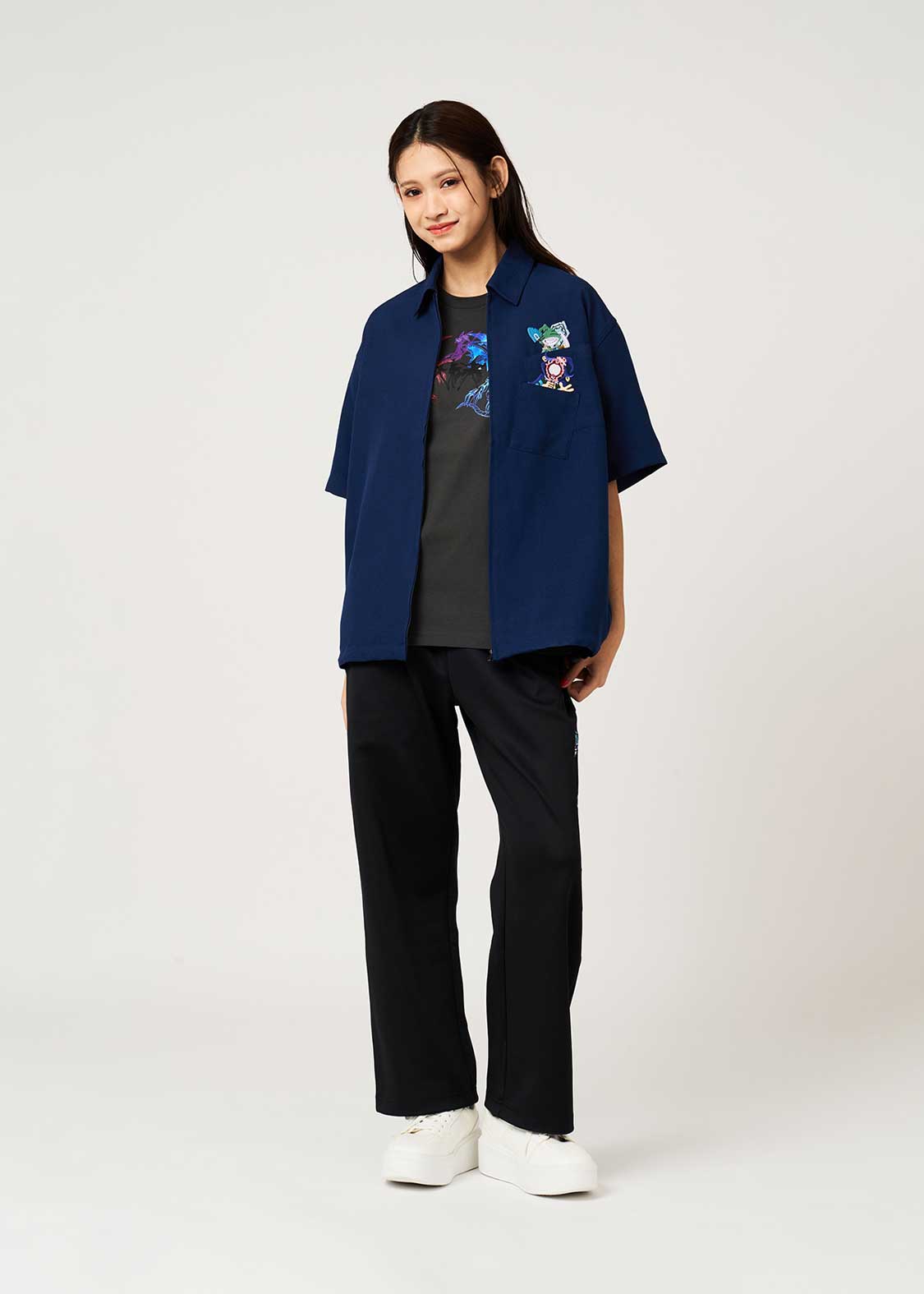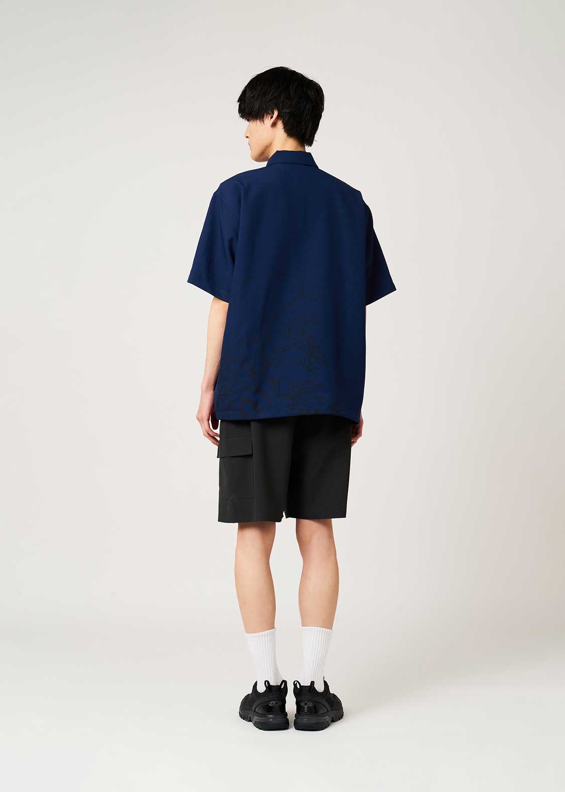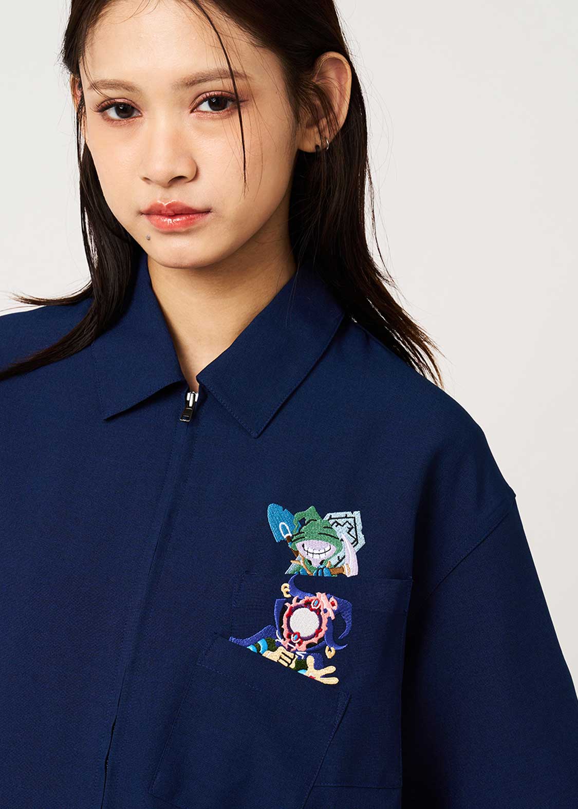 ・ポリエステル素材を使用した、ジップ仕様の半袖シャツです。