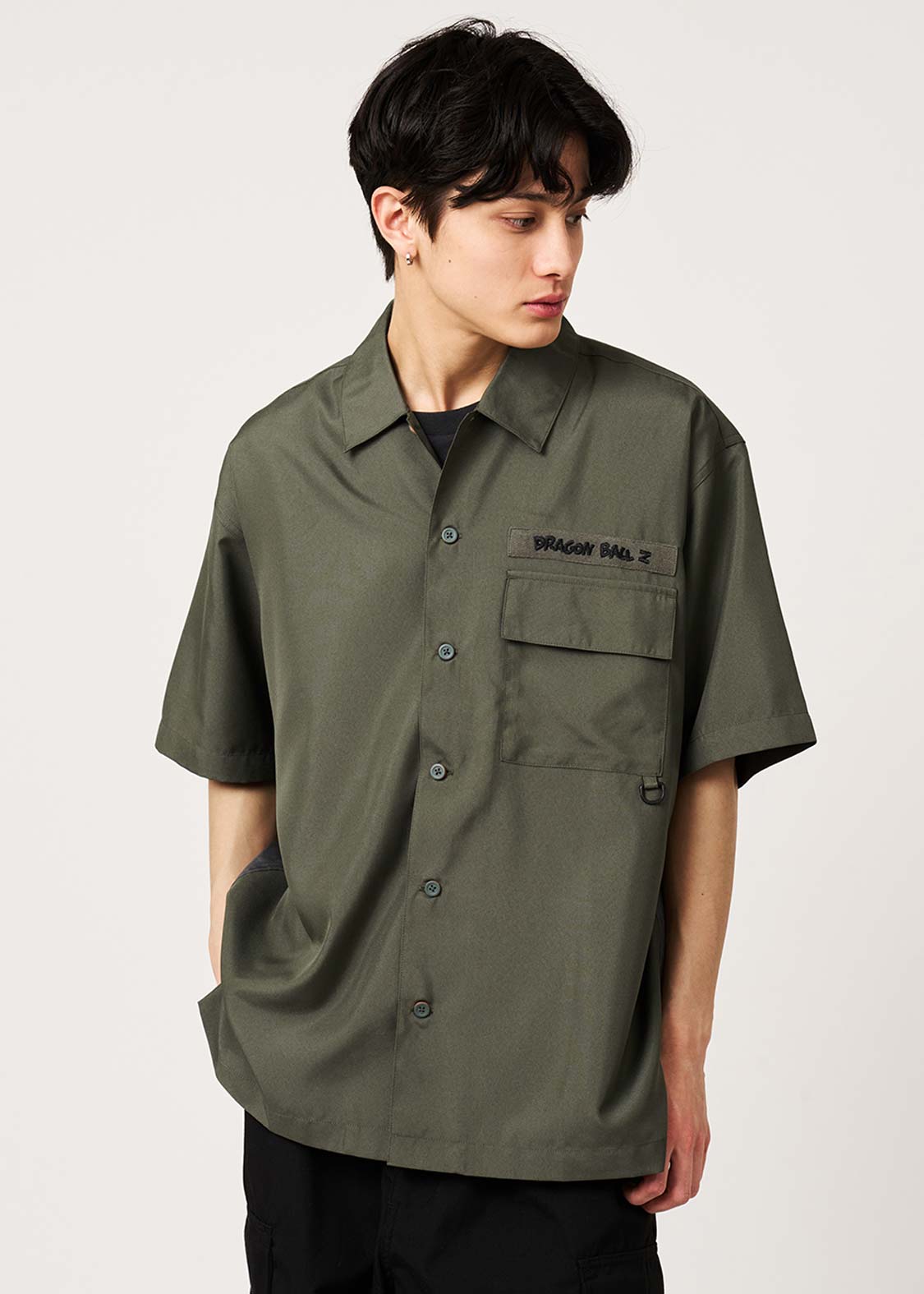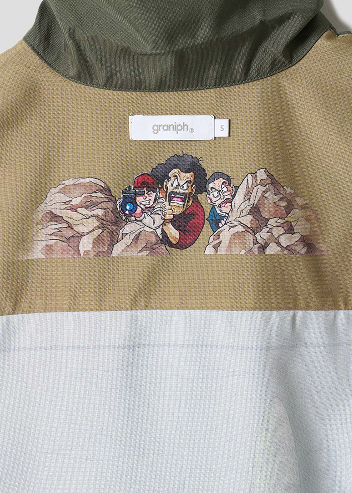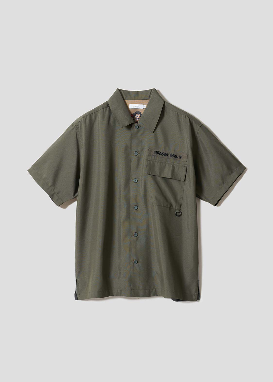 バックにプリントされたメインアートは、セルゲームの舞台となるリングを背景に、セルと悟空が対峙した姿。フロントの胸元にはDRAGON BALL Zの文字が刺繍されています。首元の内側にプリントされた、岩陰から2人の様子を伺うミスター・サタンとテレビクルー2人にも注目です。ボタンのカラーは悟空の道着とセル自身の色をイメージしています。