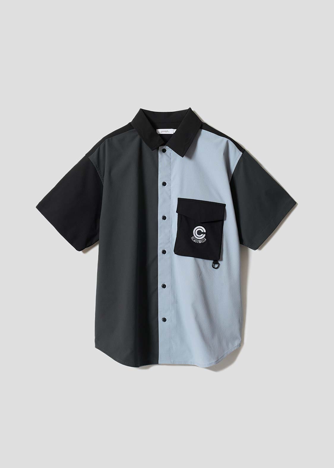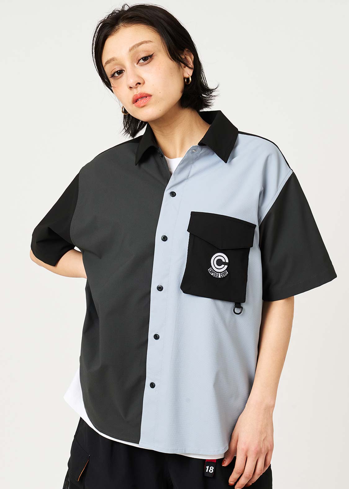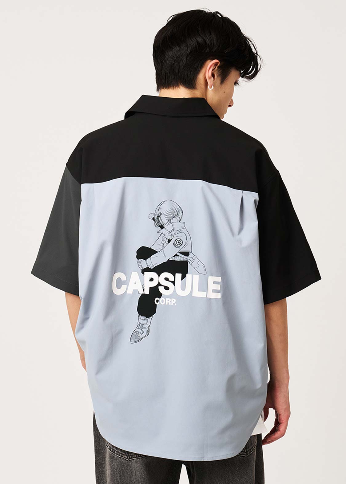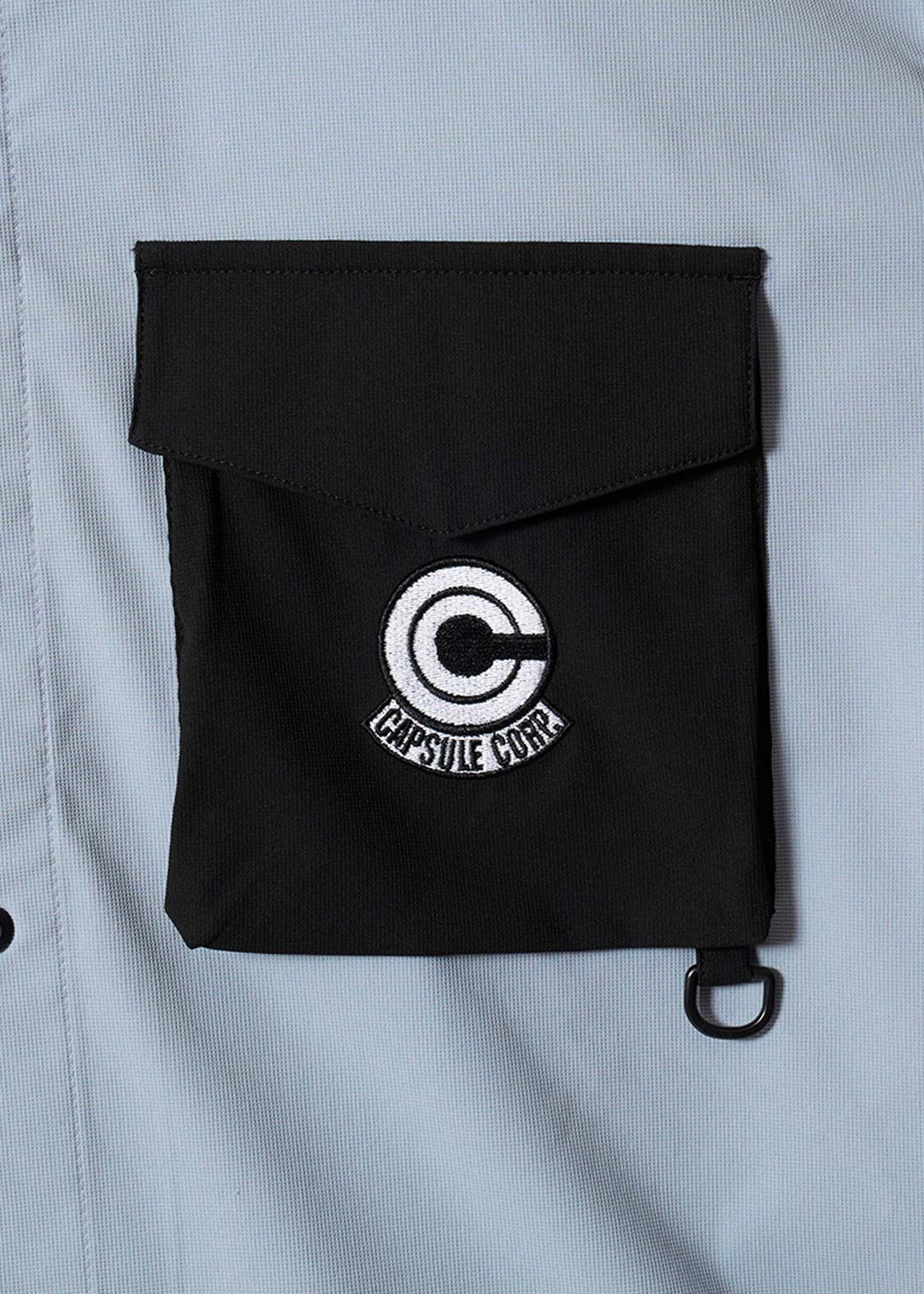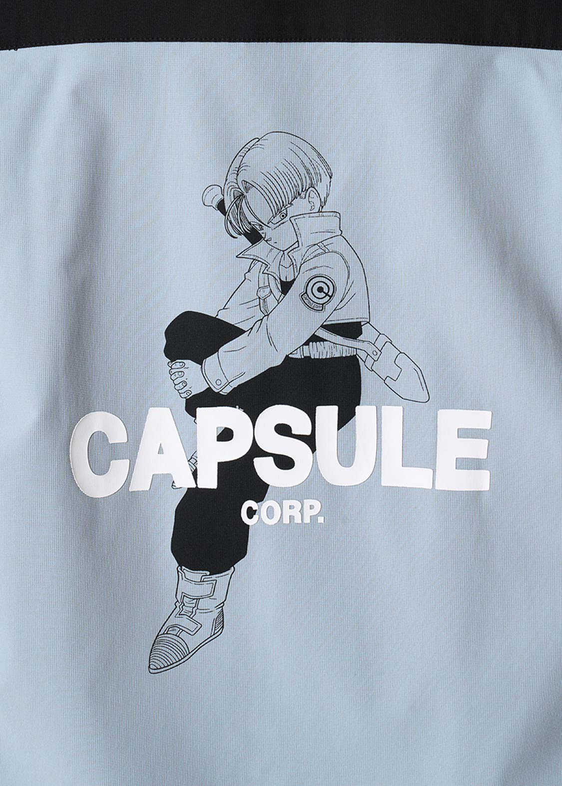 バックにプリントされたメインアートは、20年後の未来からやってきたと言う謎の少年トランクス。フロントの胸ポケットには、カプセルコーポレーションのロゴが刺繍されています。一体彼は何者で、何のために未来からやってきたのでしょうか?彼の正体が気になるデザインです。