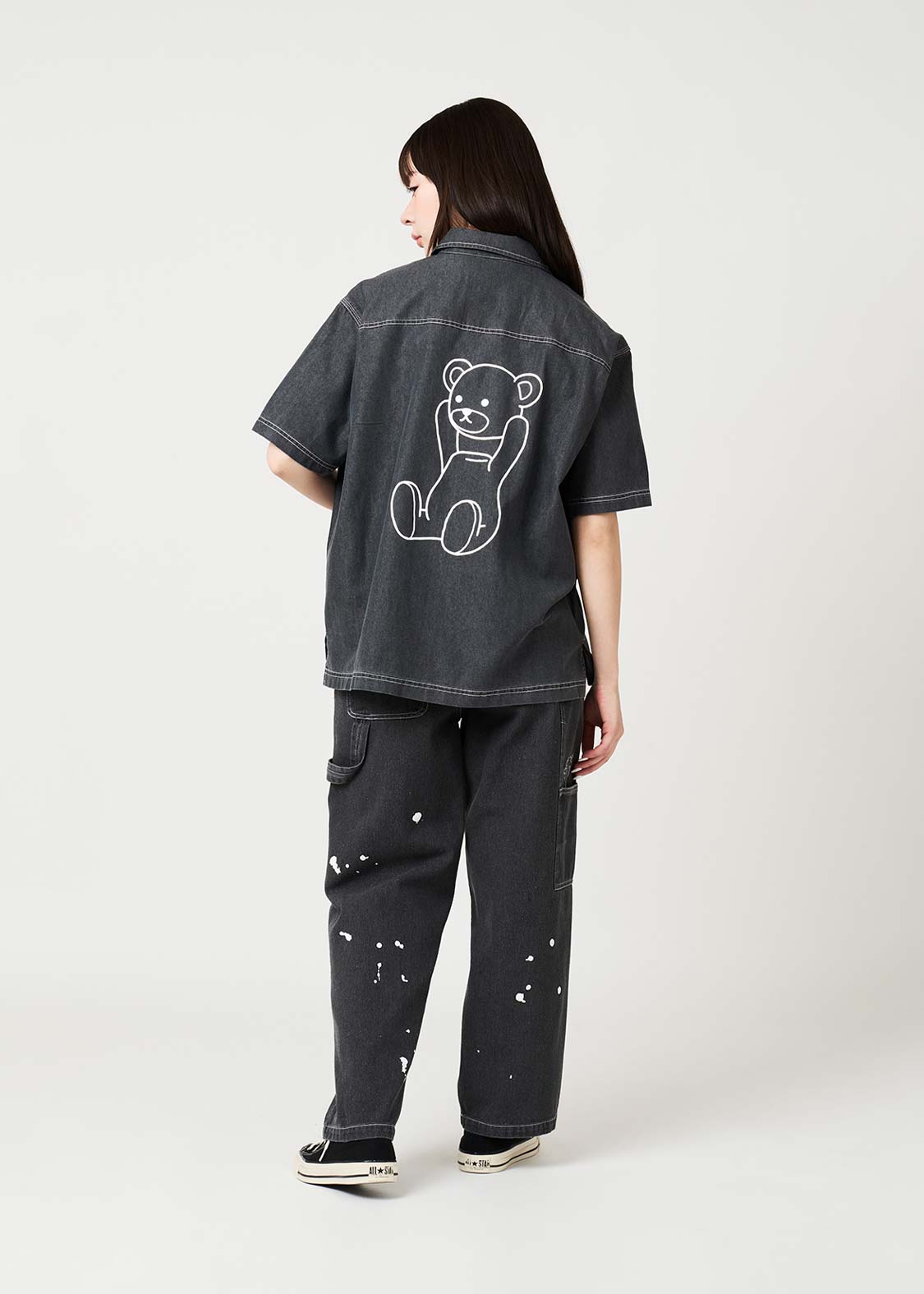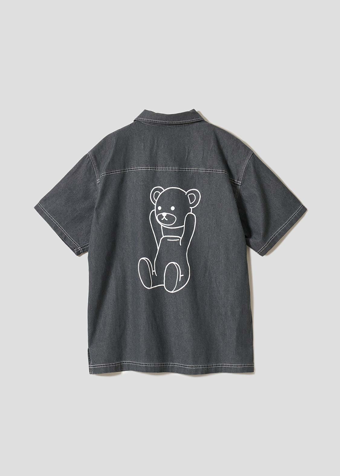 ポン!とばかりに頭をとるファニーなクマくん。ブラックなユーモアとキュートさが混じりあったインパクトのあるキャラクターです。