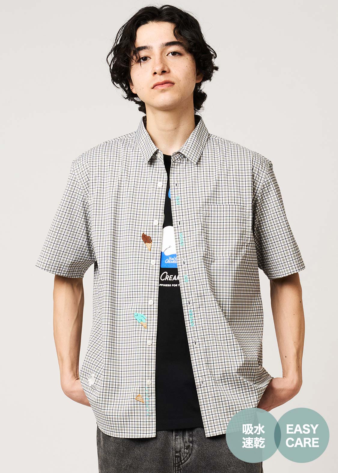 ・肌離れが良く、さらりとした着心地の生地を使用した、ベーシックシルエットの半袖シャツです。