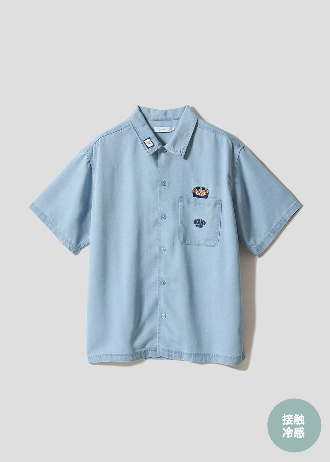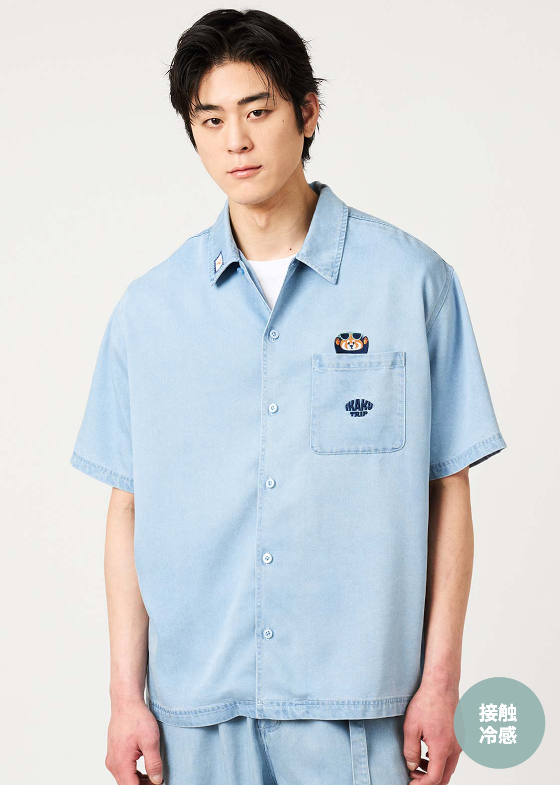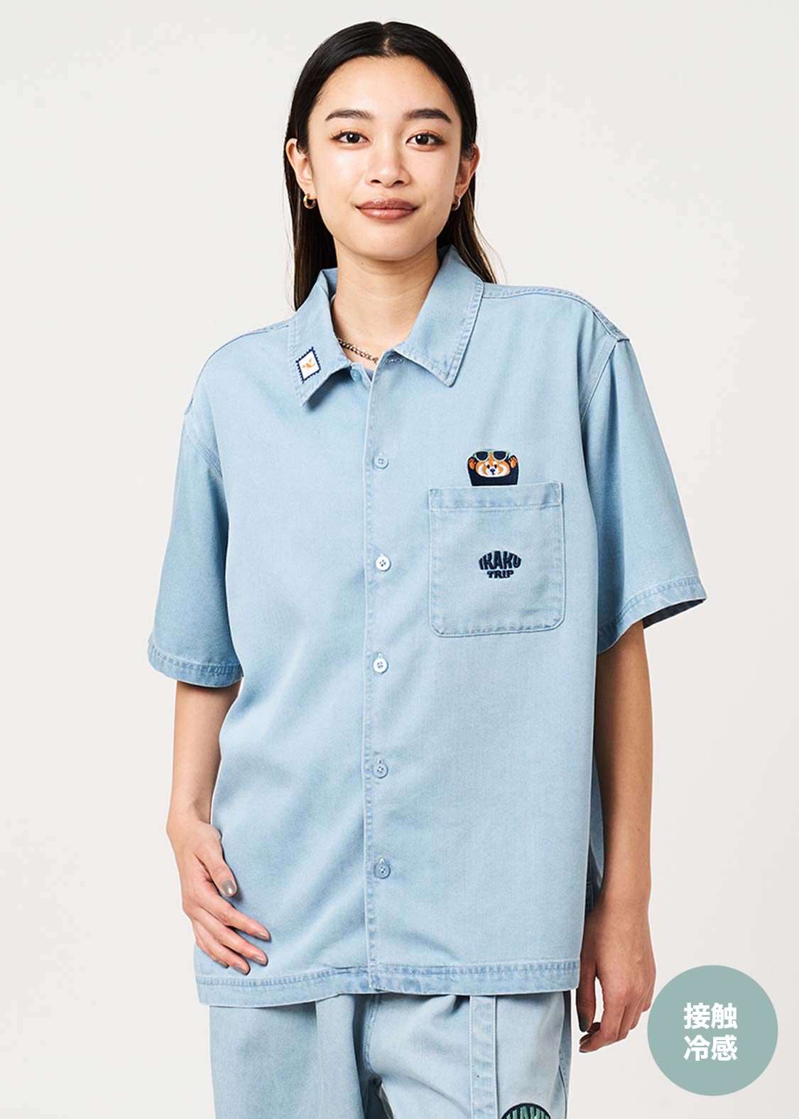 ・接触冷感加工を施した、ライトオンスのデニム生地を使用した半袖シャツです。