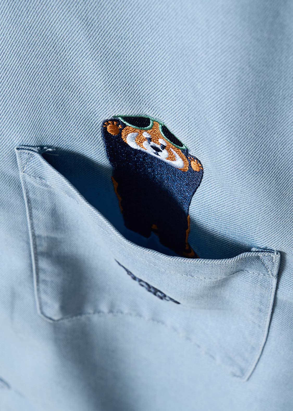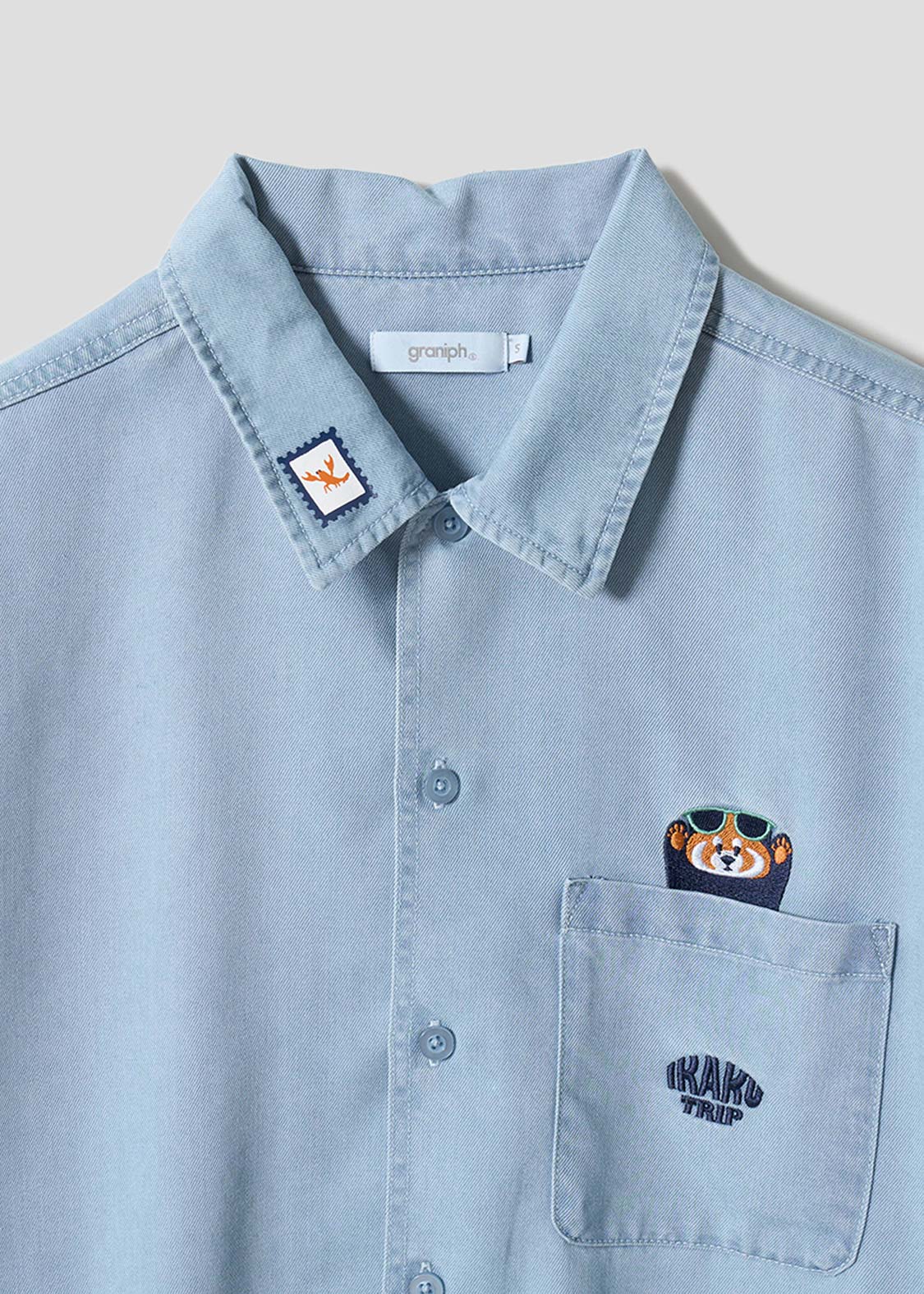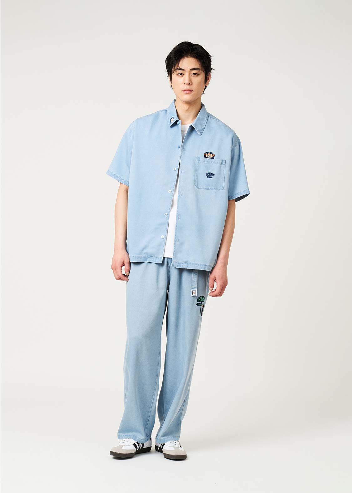 ・接触冷感加工を施した、ライトオンスのデニム生地を使用した半袖シャツです。
