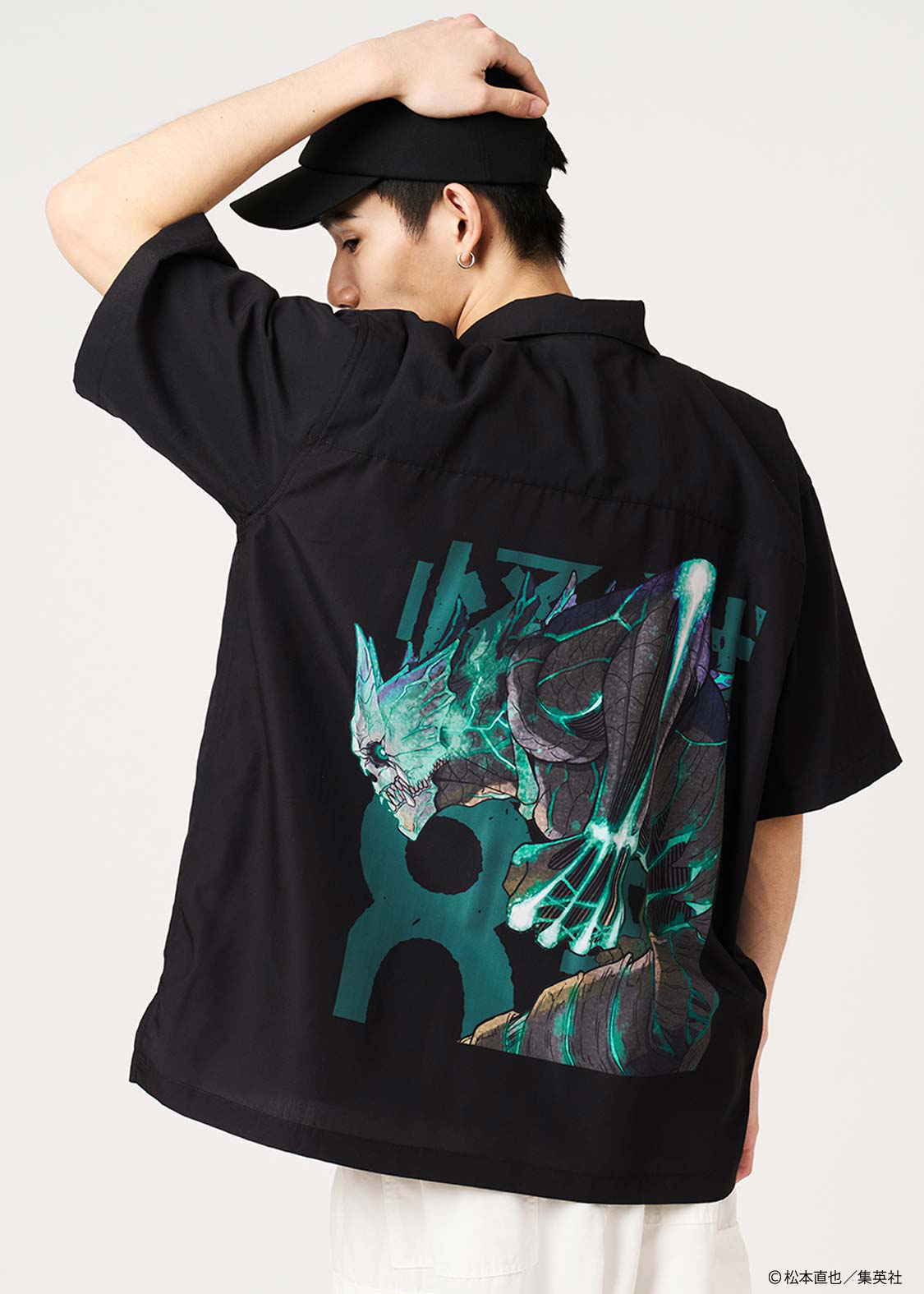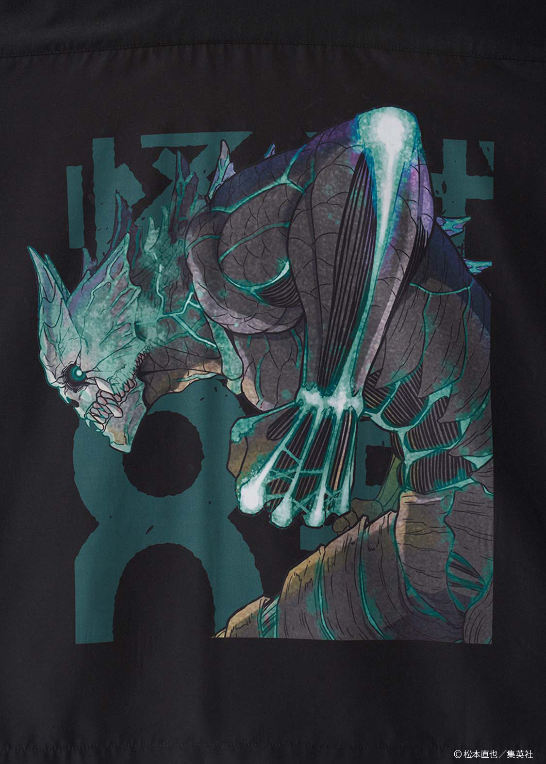 「怪獣8号」の姿をバックに大胆にプリントした迫力のあるデザイン。ポケットにはカフカを怪獣化させた謎の幼獣を刺繍で表現しています。
