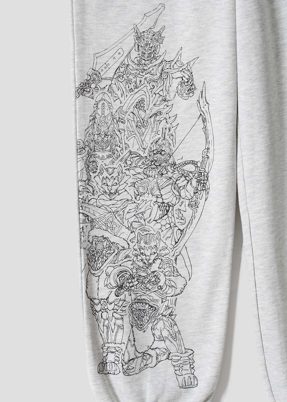 『仮面ライダーガヴ』より。グラニュート界で大手製菓会社を経営する上流階級の一族ストマック家。右足フロントには長男ランゴ、長女グロッタ、次男ニエルブ、次女シータ、三男ジープのグラニュートの姿が線画でプリントされています。バックのポケットにはストマック家の家紋が刺繍されています。