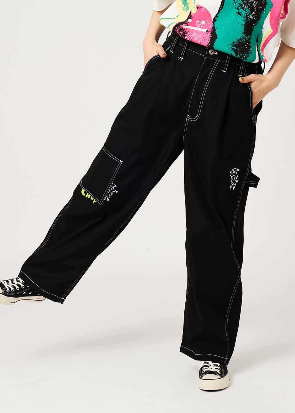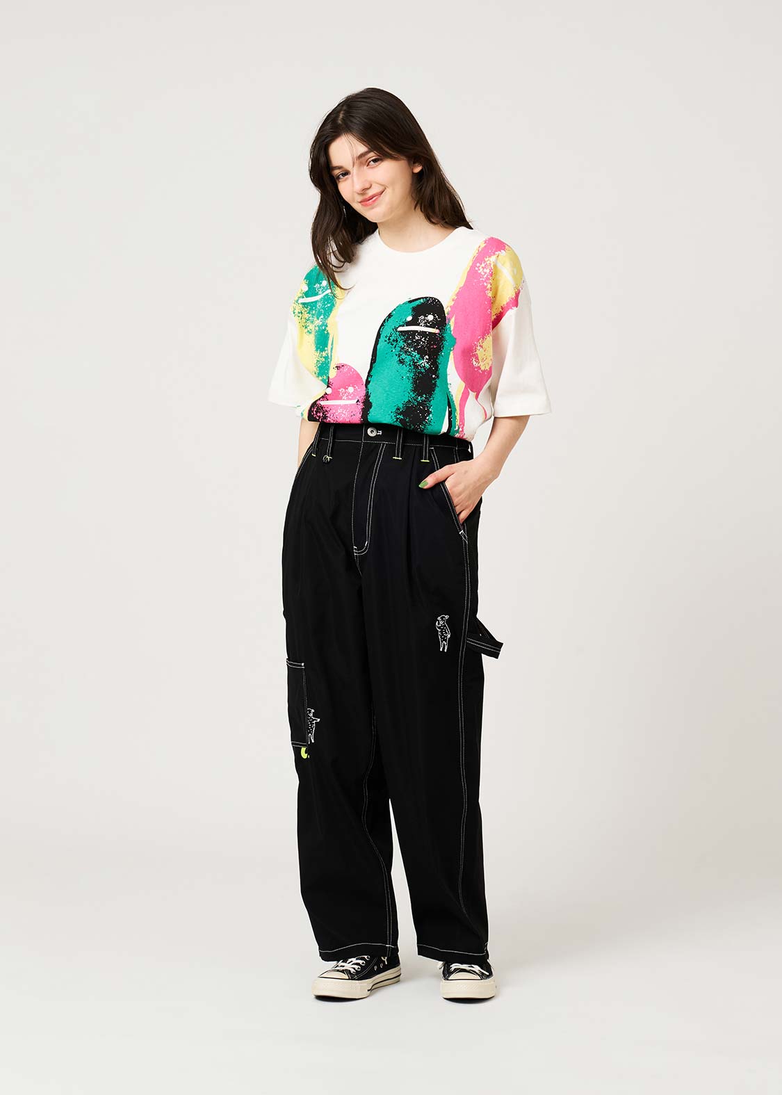 ・ポリエステル100%素材を使用した、ゆとりのあるテーパードシルエットのペインターパンツです。