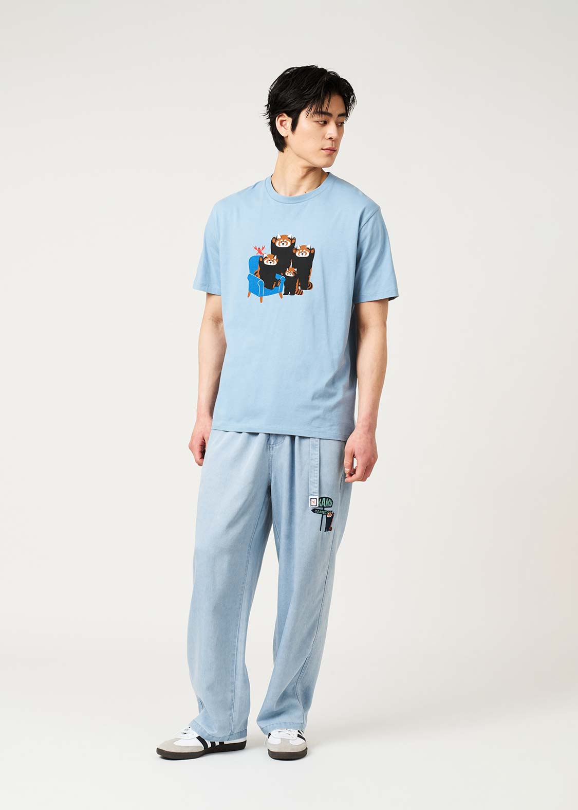 いろいろなものに威嚇しながら旅を楽しむレッサーパンダ。そのユニークな姿を切り取った、どこかクスッとくるグラフィックです。