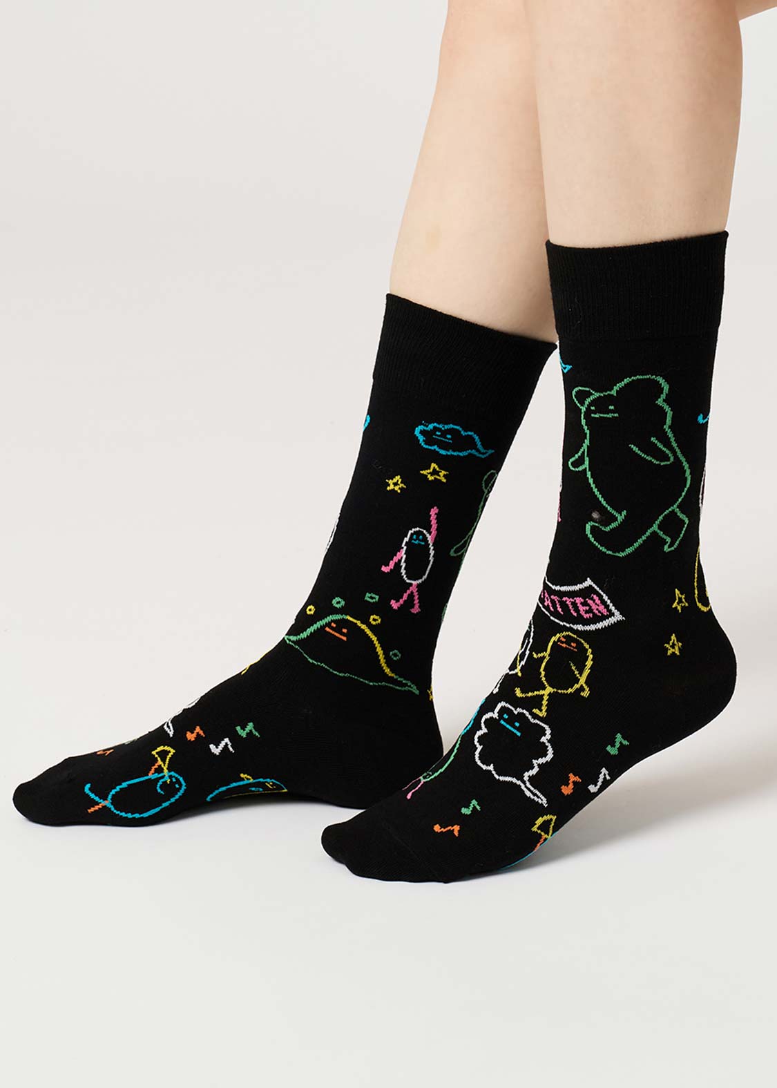 ・細かなグラフィックをジャカードで表現したソックス。