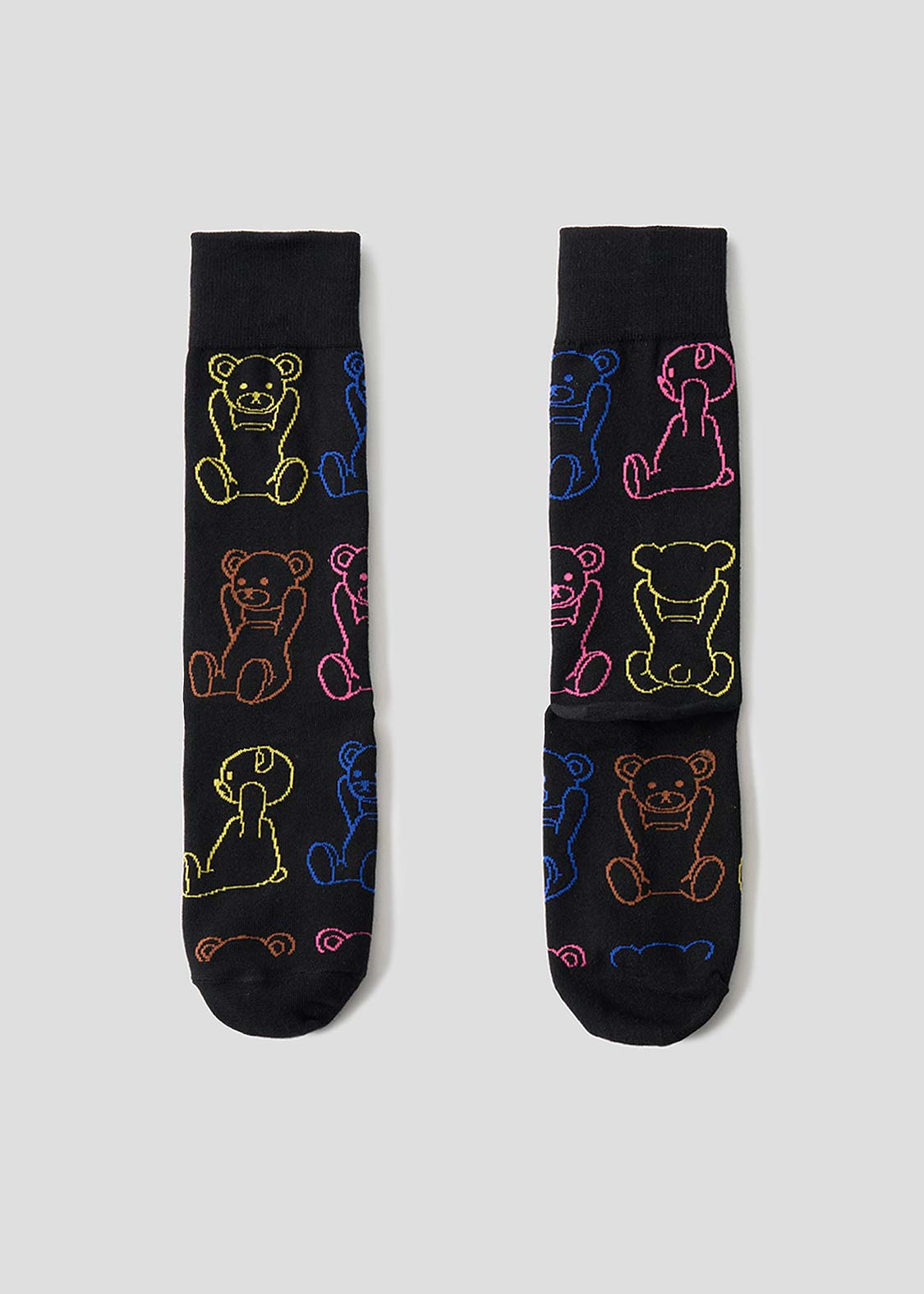 ポン!とばかりに頭をとるファニーなクマくん。ブラックなユーモアとキュートさが混じりあったインパクトのあるキャラクターです。