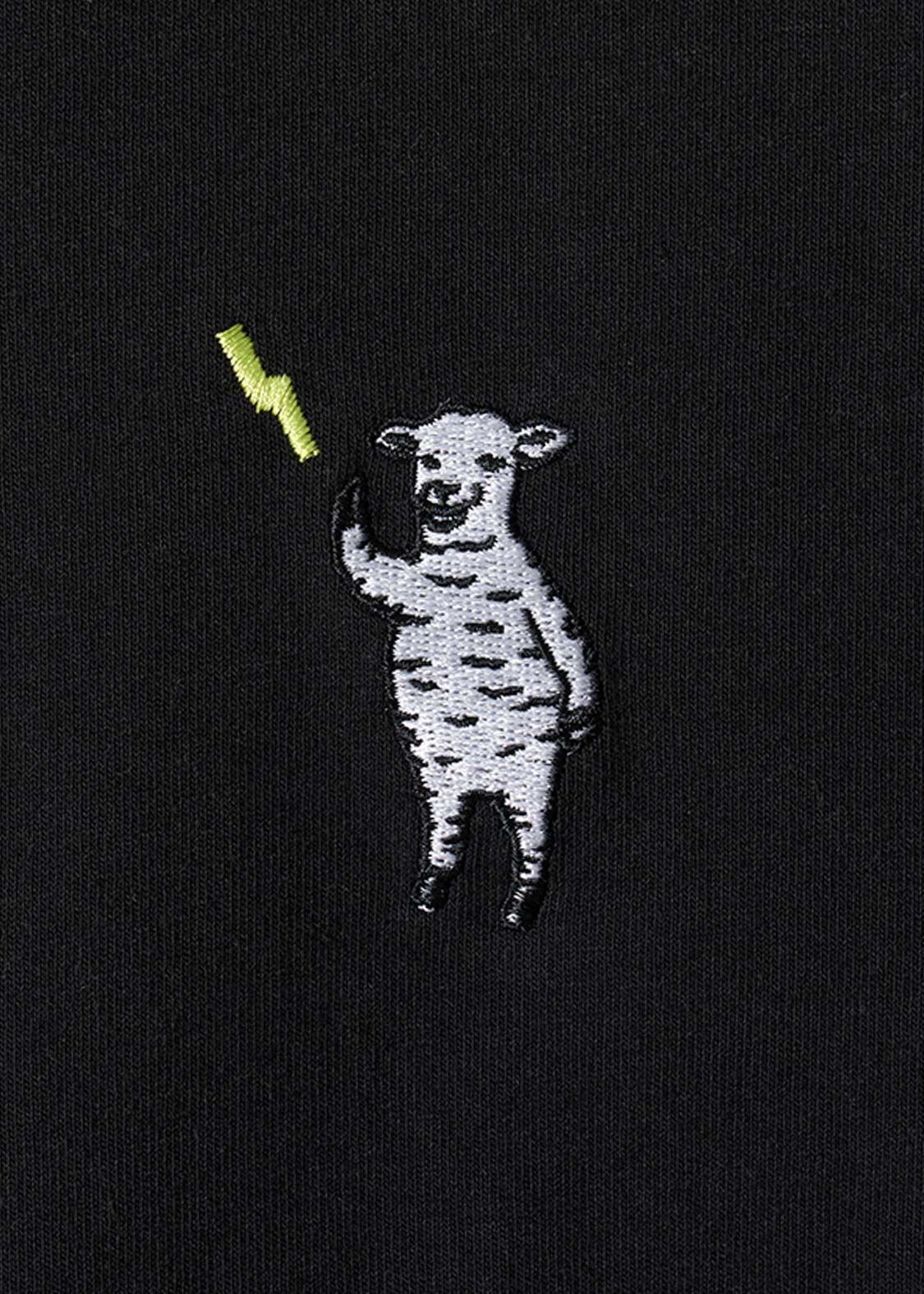 片手をあげるヒツジさん、ナンセンスな感性が見るものを刺激するデザインです。