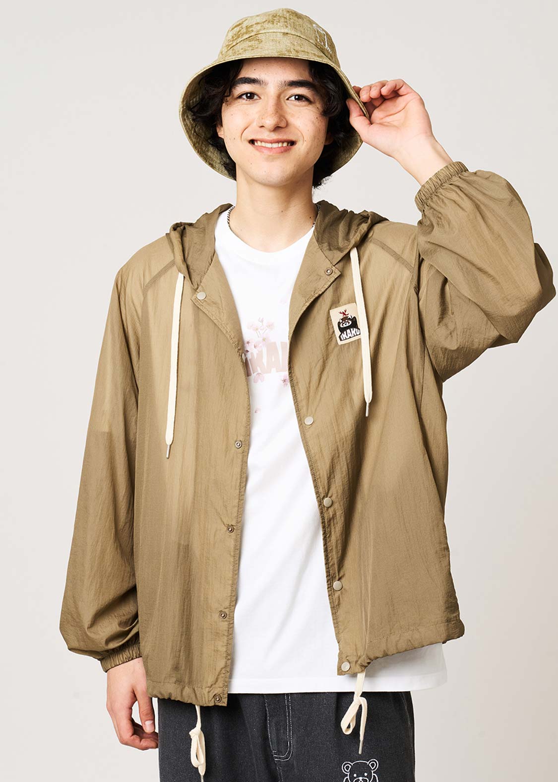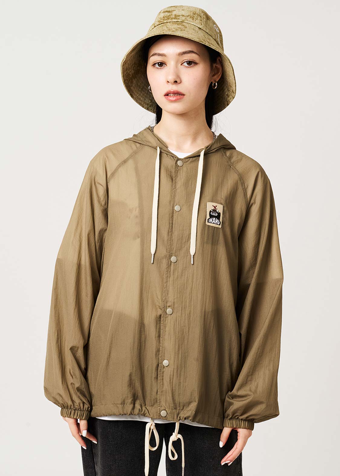 ・ゆったりとしたサイズ感で着用できる、薄手のナイロンパーカーです。