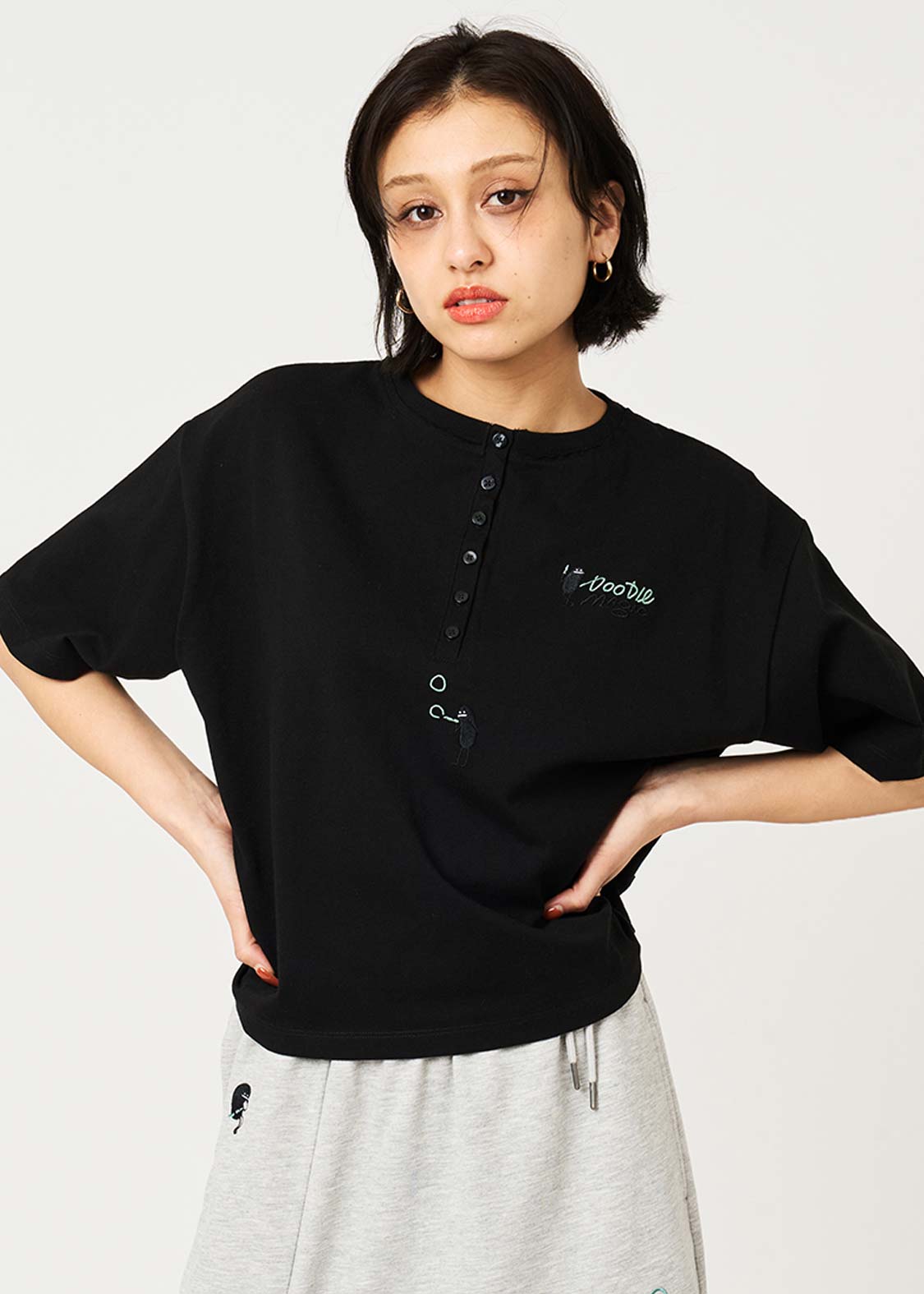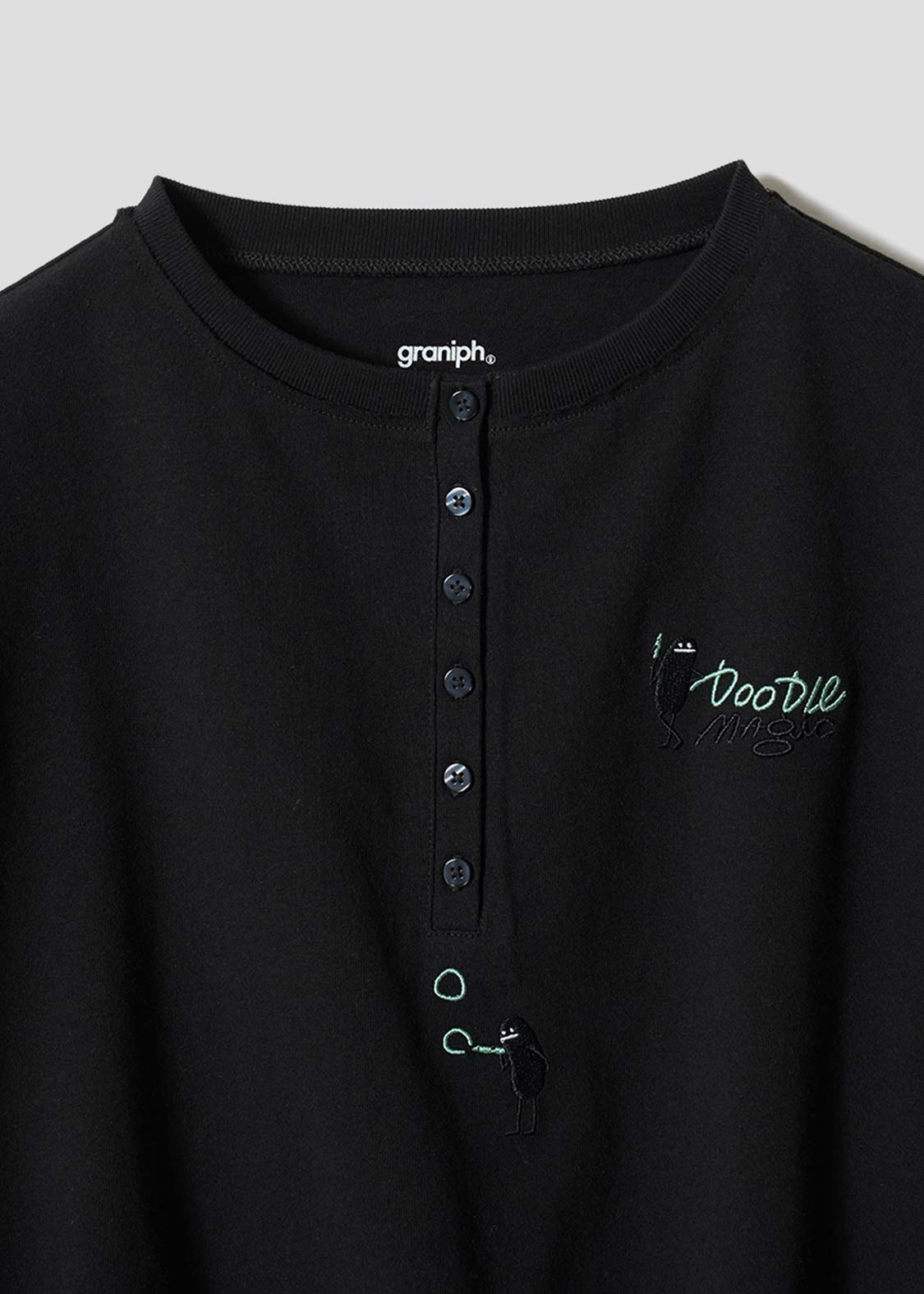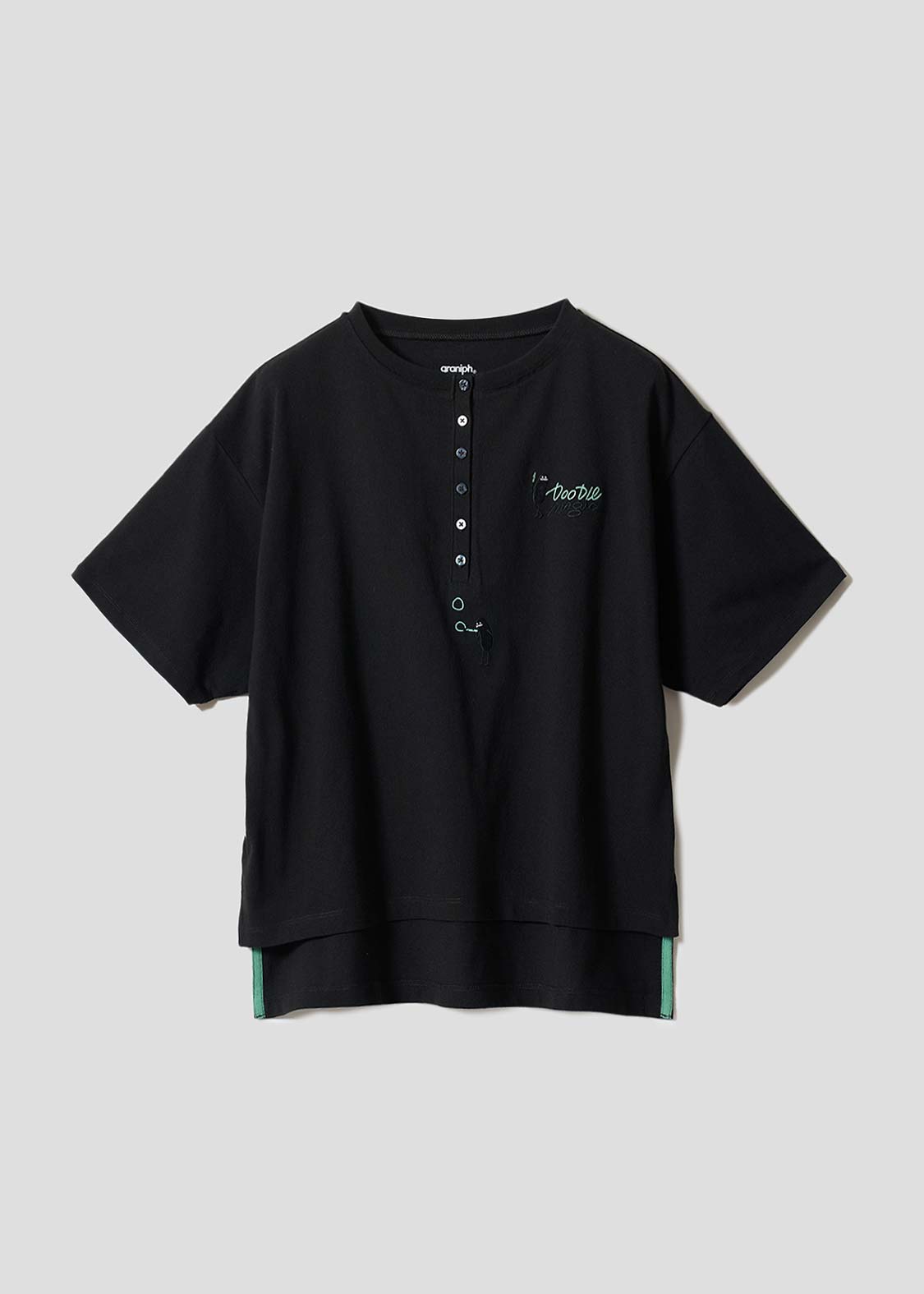 ・コットン100%の天竺素材を使用した、やわらかな肌触りのヘンリーネックTシャツです。