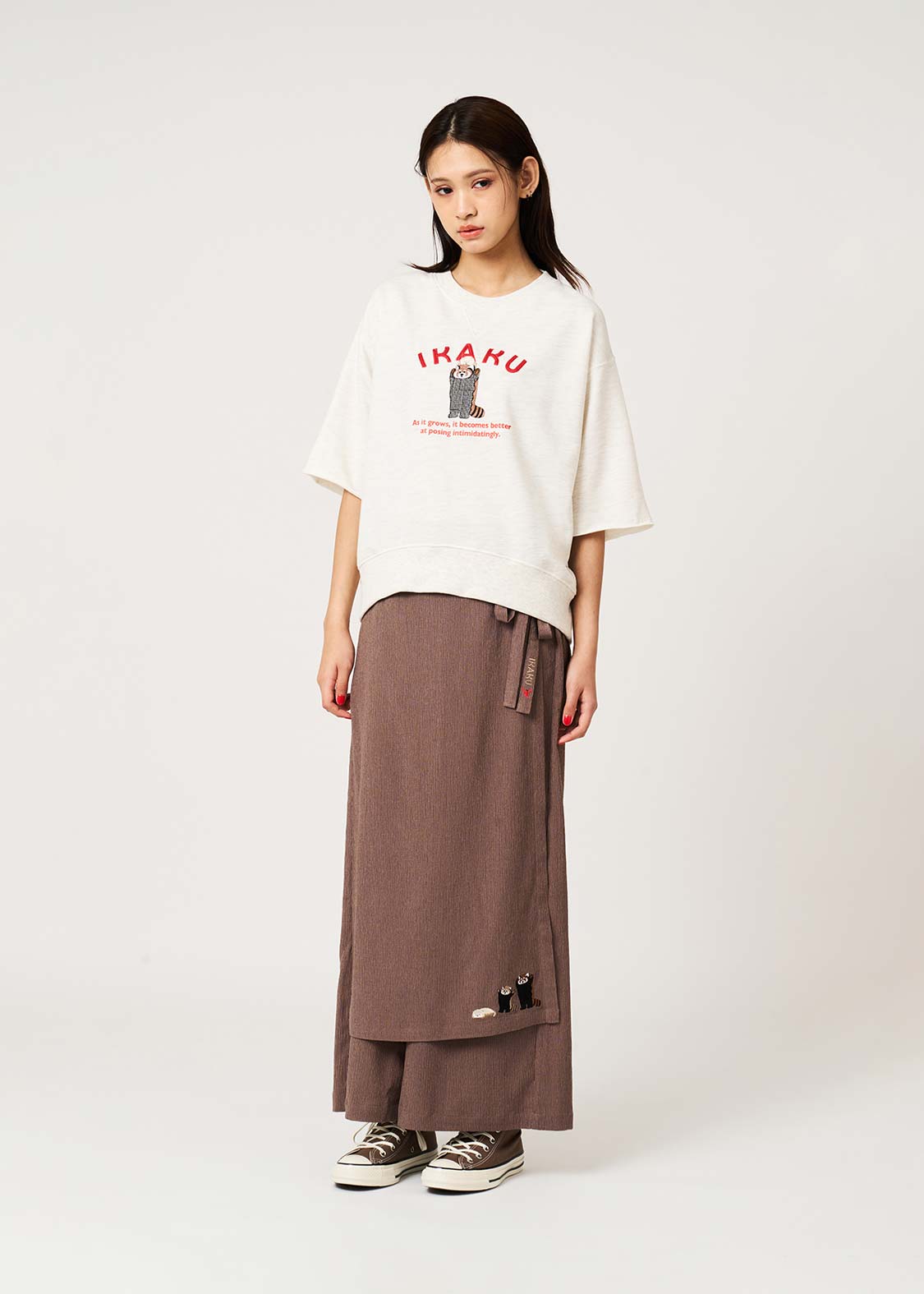 ・ゆとりのあるシルエットで、一枚でも着やすく、肌寒い時期には長袖カットソーやシャツとのレイヤードも楽しめます。