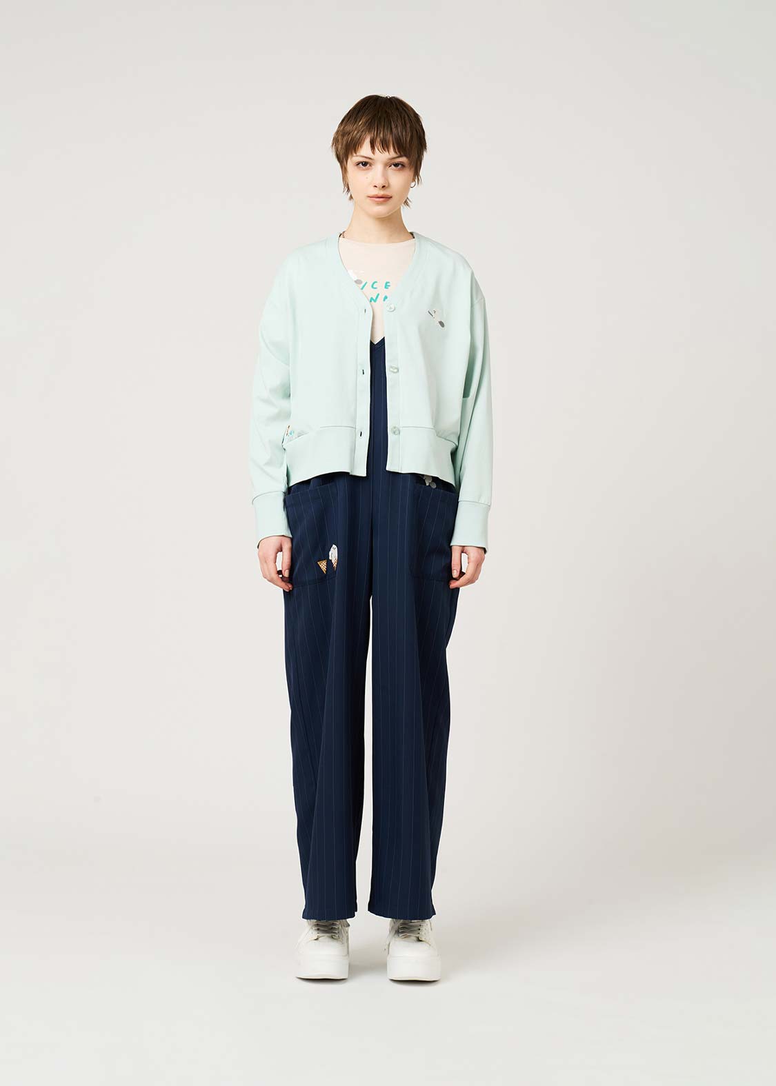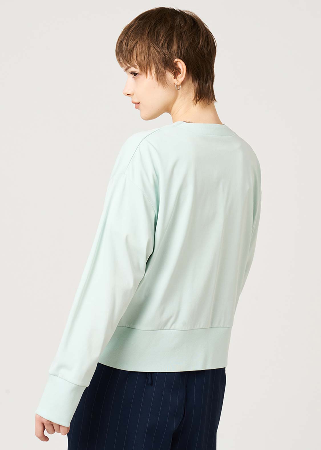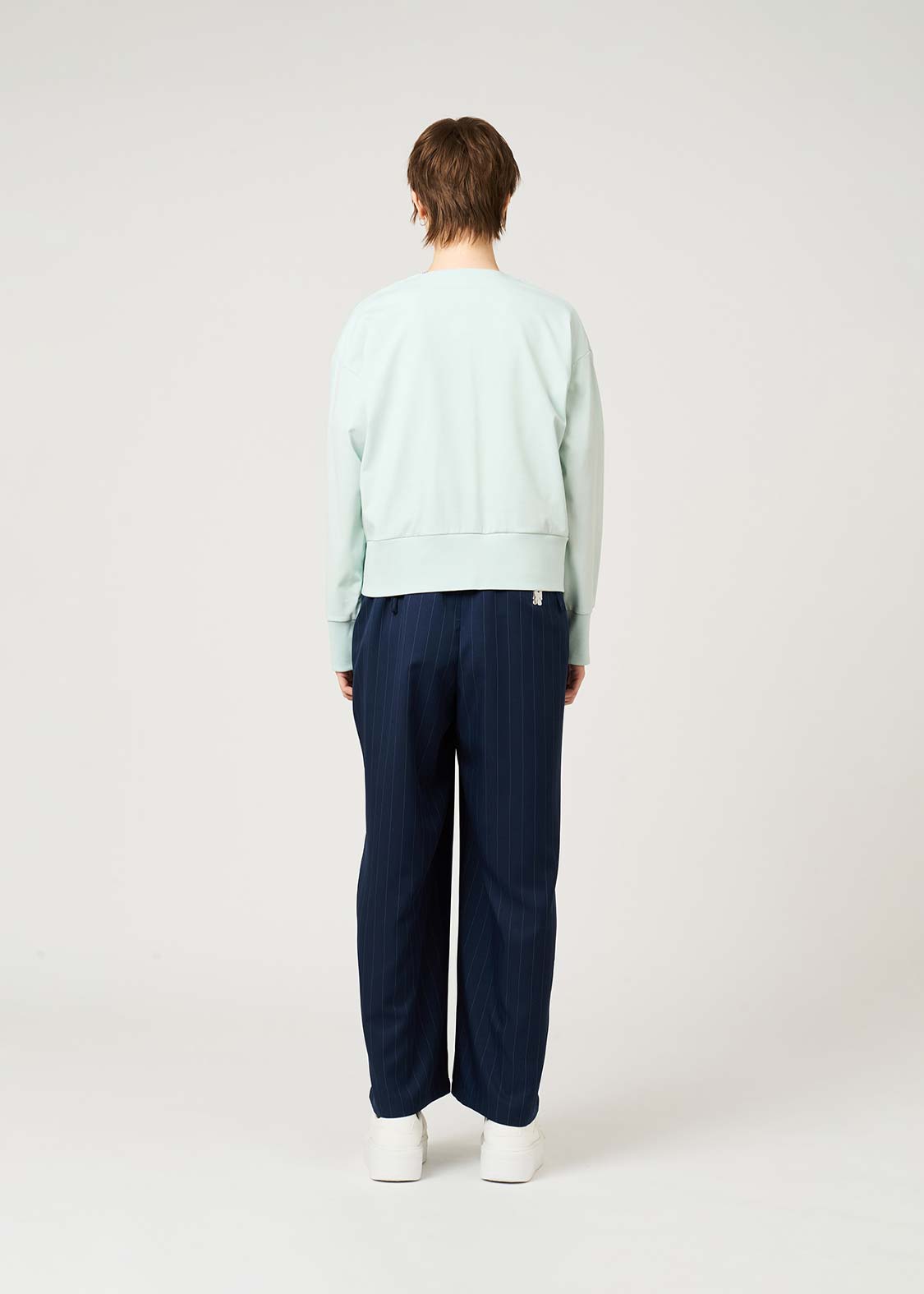 ・身幅はゆとりを持たせつつ、クロップド丈ですっきりとしたシルエットに仕上げています。