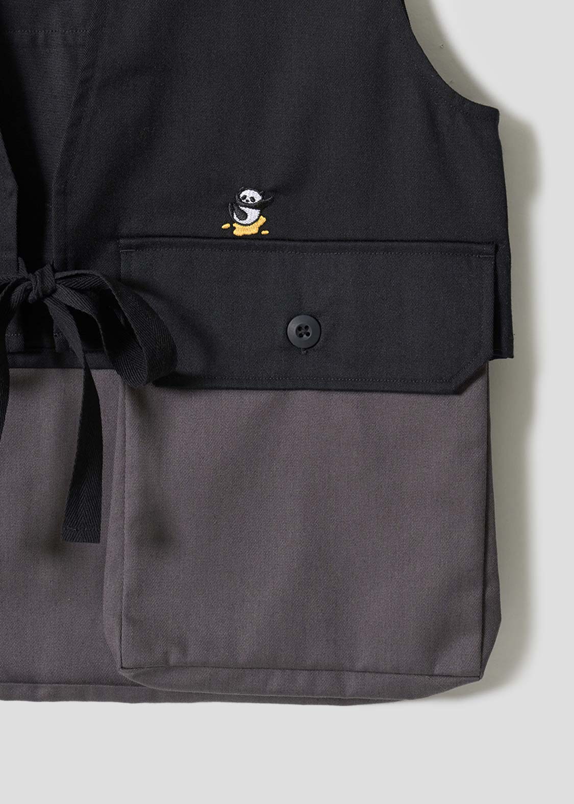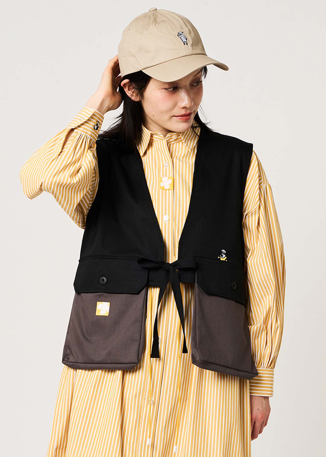 ・ハンティングベストをベースに、街の装いにもなじむよう整えたデザインです。