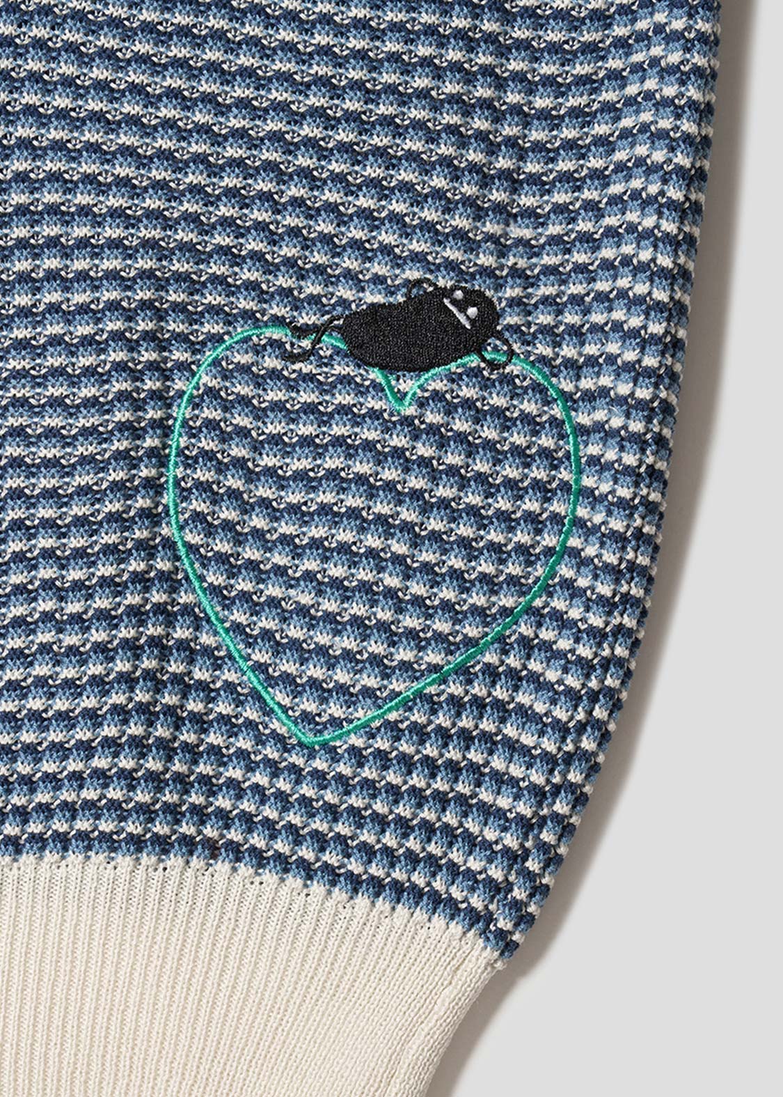 ・身頃は3色の糸をミックスしたカラーリング、襟やリブはバイカラーでモダンな印象に仕上げました。