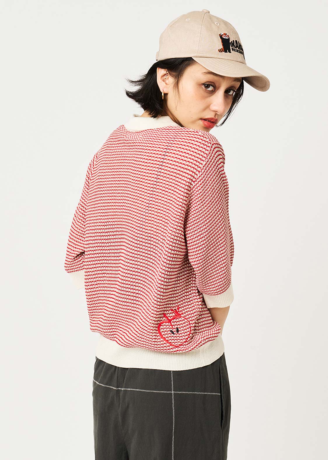 ・身頃は3色の糸をミックスしたカラーリング、襟やリブはバイカラーでモダンな印象に仕上げました。