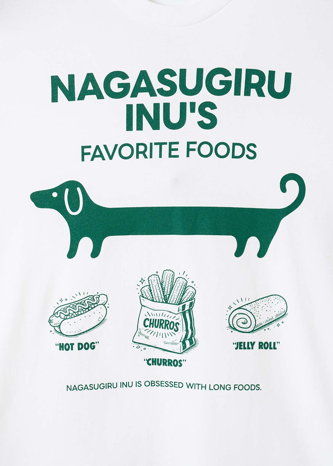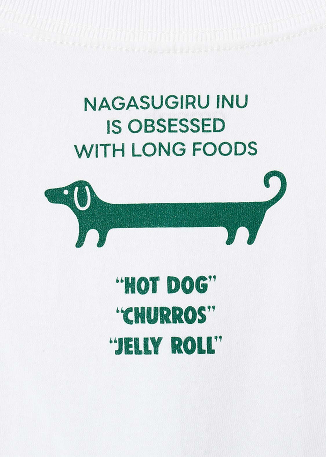 びよーんと伸びた長い胴、決してダックスフントではなくあくまで「ナガスギルイヌ」。それぞれの好きなもの・ことをレトロなタイポグラフィと組み合わせた、「ネオレトロ」なグラフィックです。