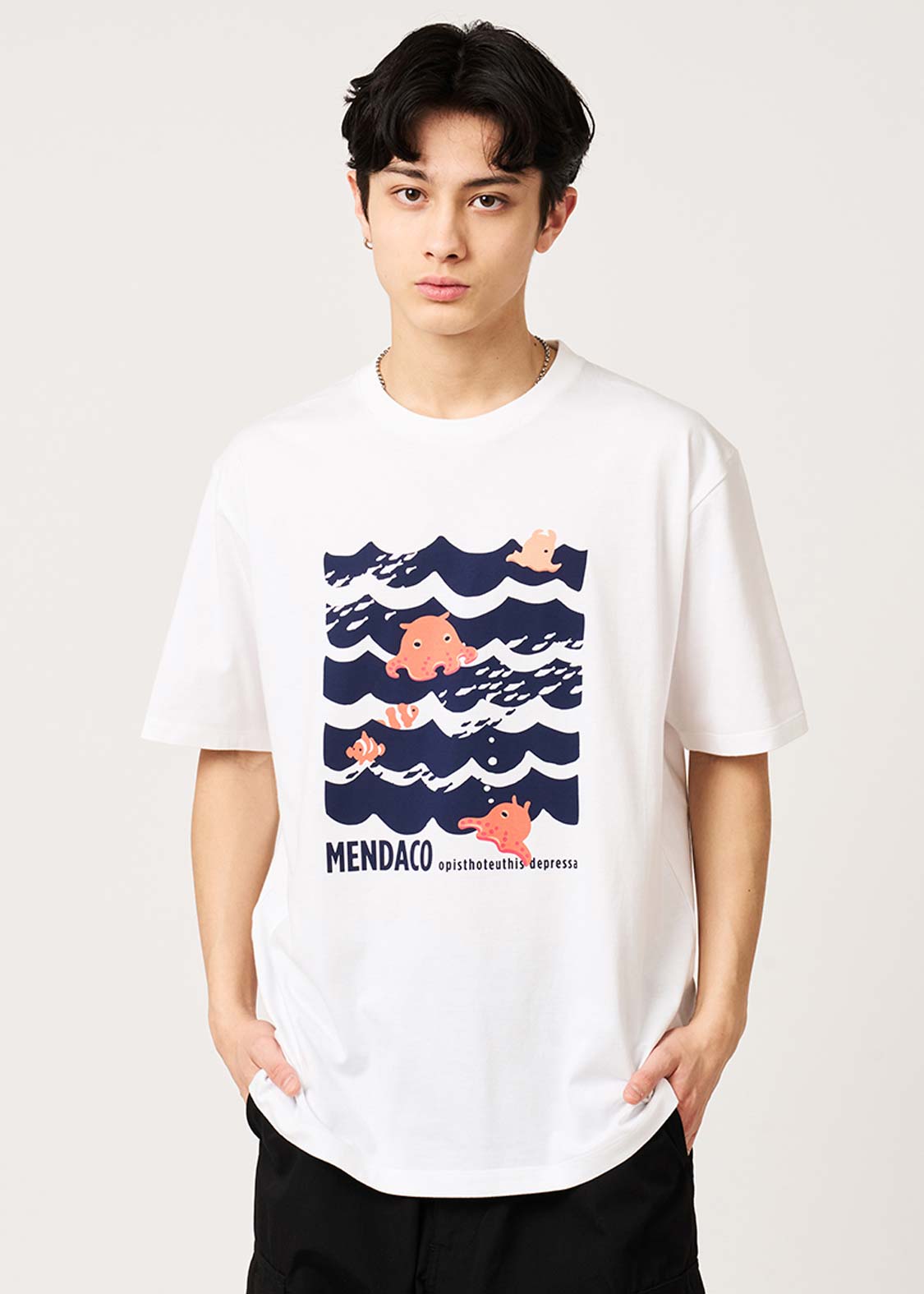 ふわふわと深海を漂っているキッカイな生き物。海洋生物ファンから絶大な人気をほこる「メンダコ」をモチーフにしたデザイン。マニアな味わいがポイントです。