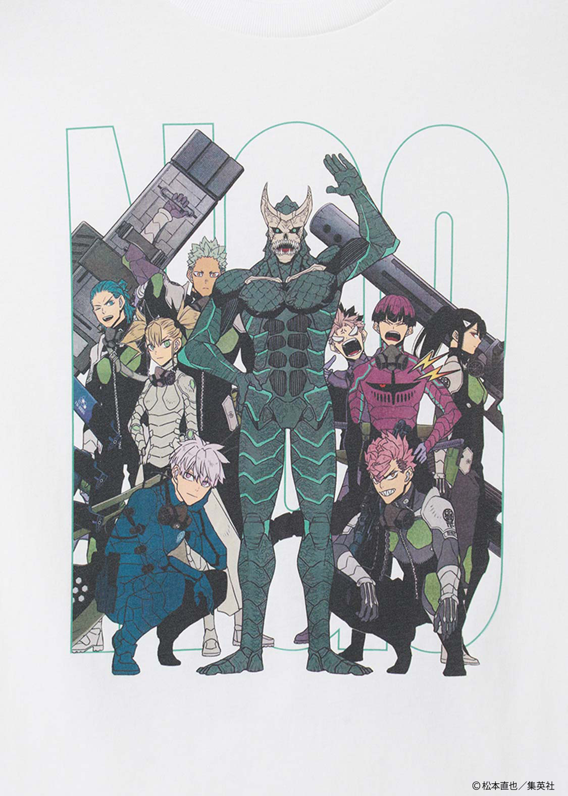 最終巻の扉絵を使用したデザイン。表面には第3部隊に所属したばかりの頃のカフカと仲間たち、裏面には幾多の戦いを経て、それぞれの戦闘スタイルを確立させた「怪獣8号」と仲間たちが描かれており、「NO.8」の文字を背景にその対比が楽しめるデザインとなっています。