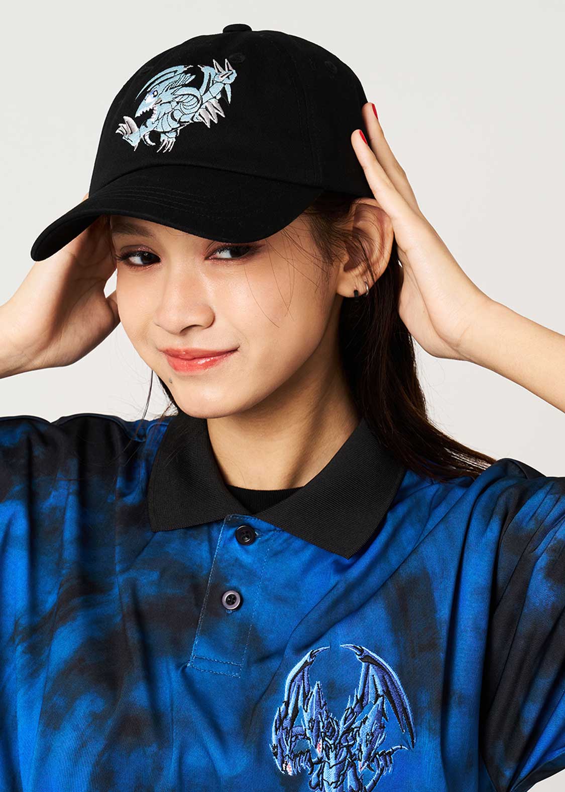 ペガサスに奪われた海馬の「青眼の白龍(ブルーアイズ・ホワイト・ドラゴン)」が、魔法カード「トゥーン・ワールド」によってトゥーン化された「ブルーアイズ・トゥーン・ドラゴン」をフロントに刺繍。バックにはペガサスの「千年眼(ミレニアム・アイ)」を刺繍し、内側にはペガサスの顔と「TOON WORLD」のロゴを織りネームであしらいました。