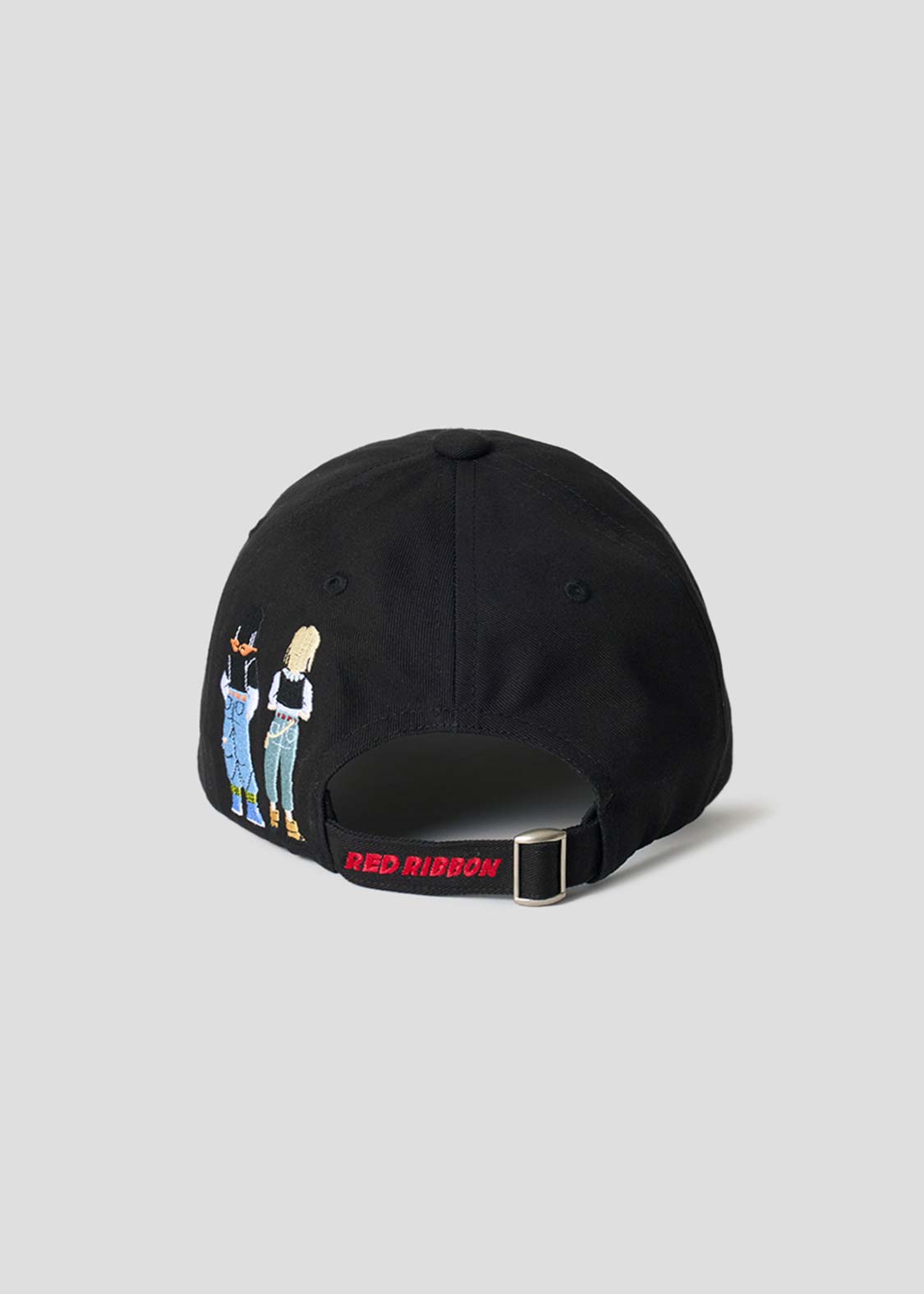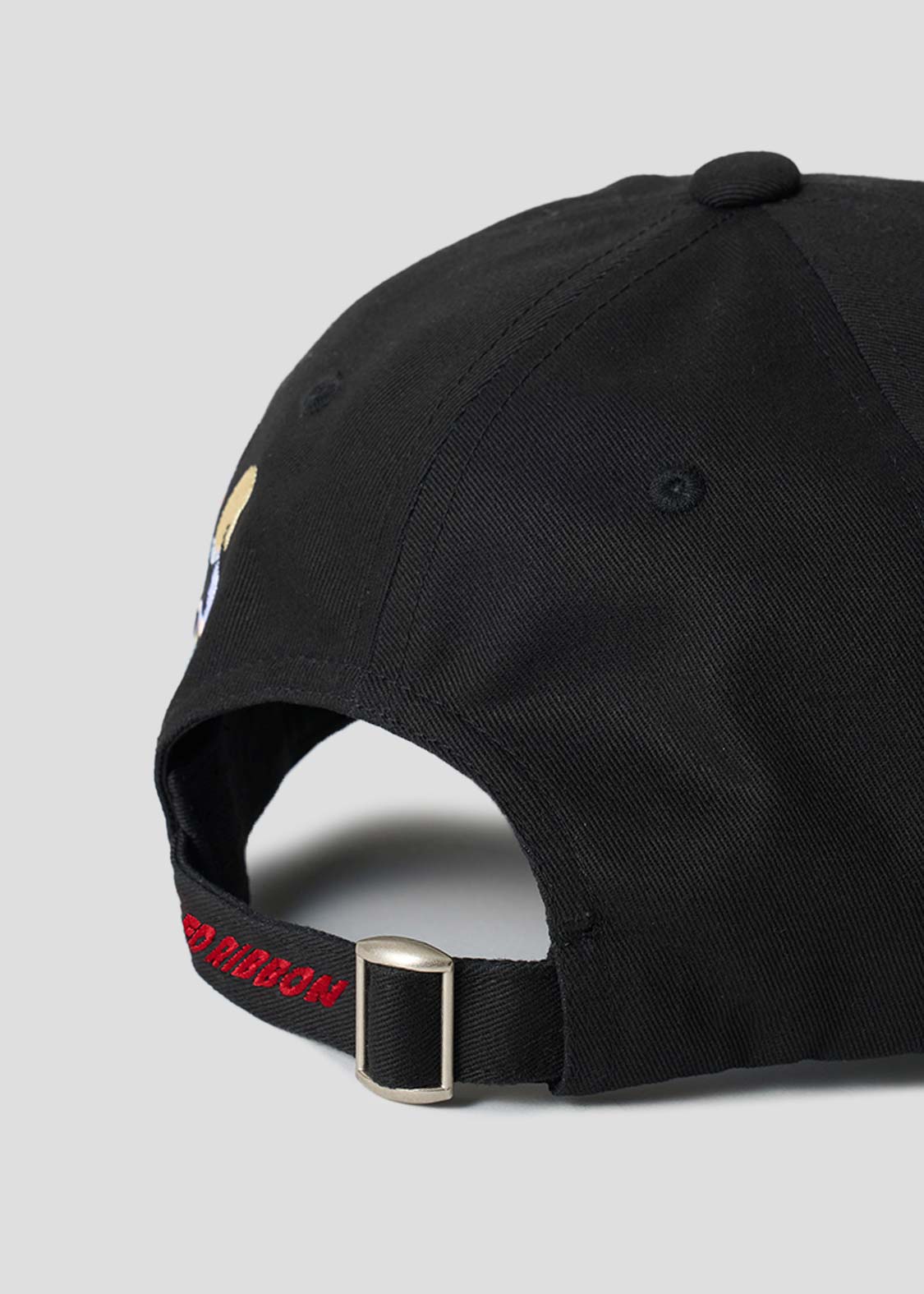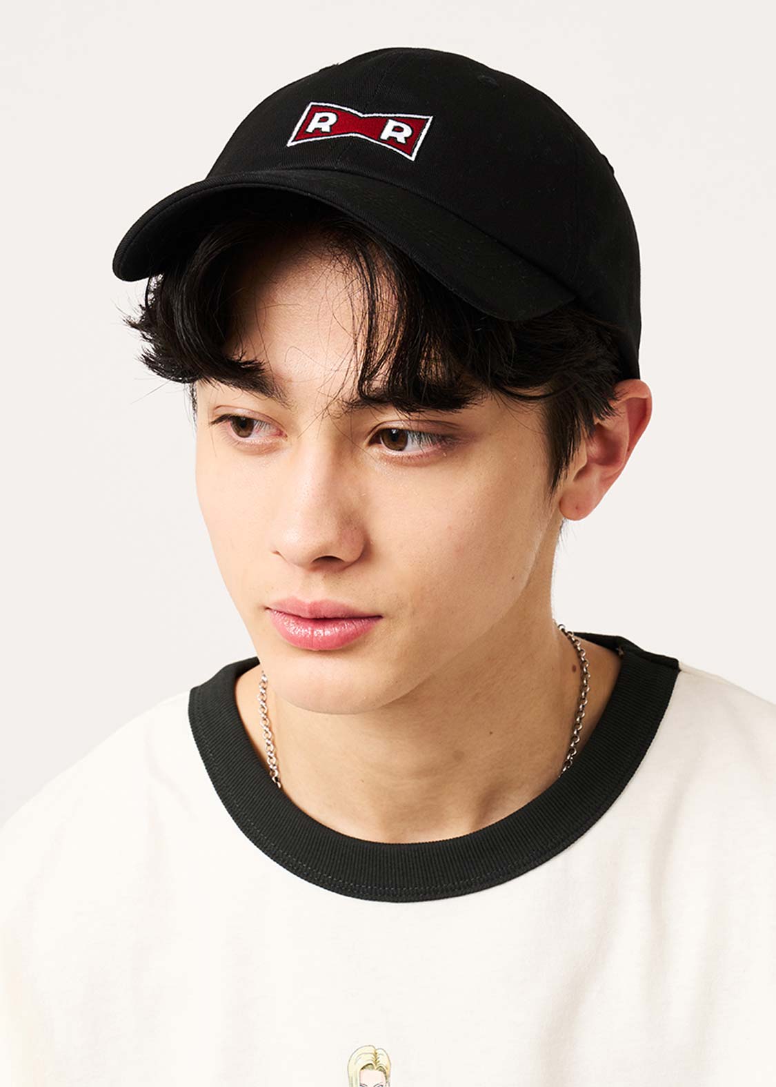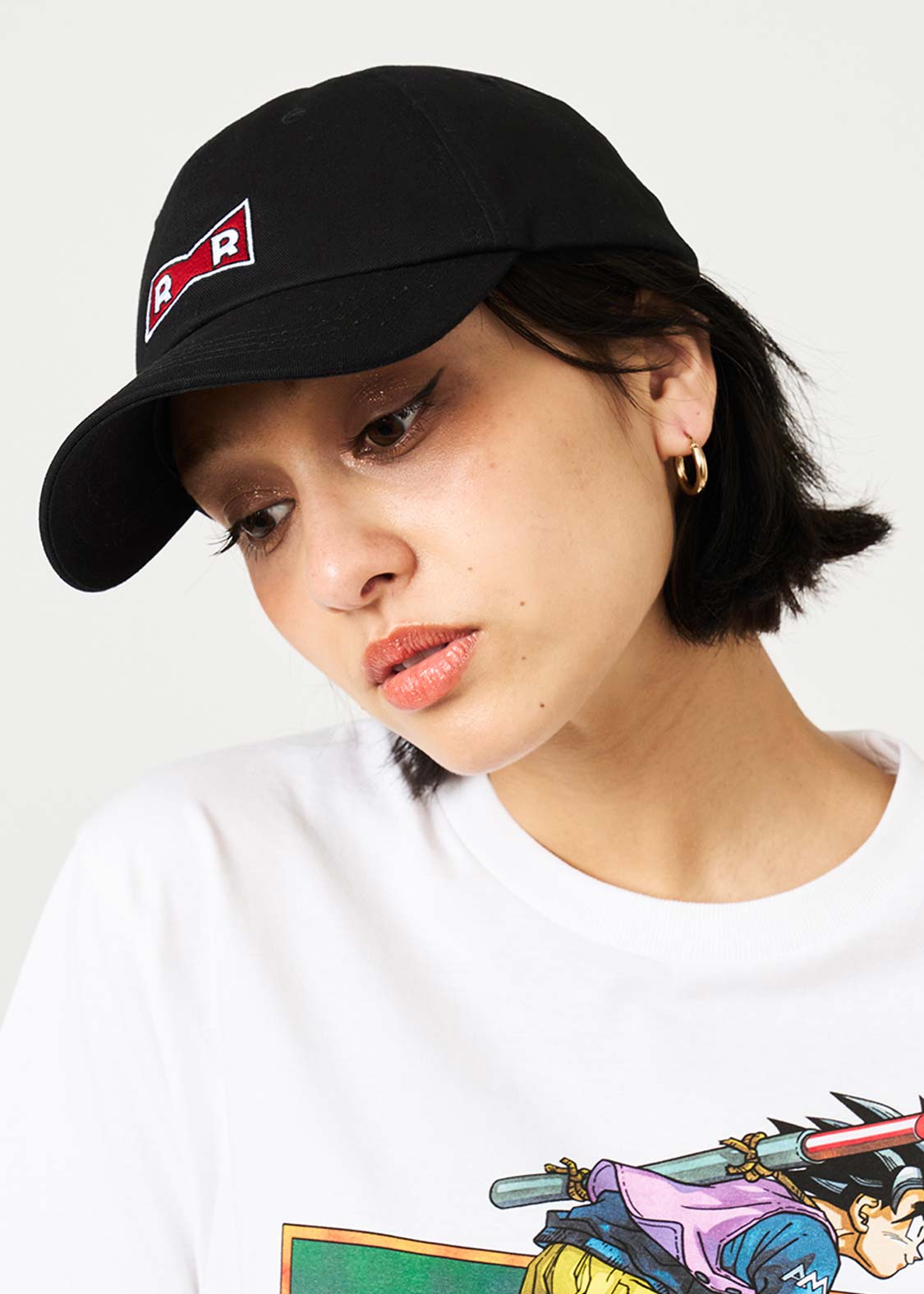 フロントはレッドリボン軍のマーク、バックは人造人間17号と18号の後ろ姿を刺繍したデザイン。サイズ調節の紐にはRED RIBBONの文字をプリントしました。