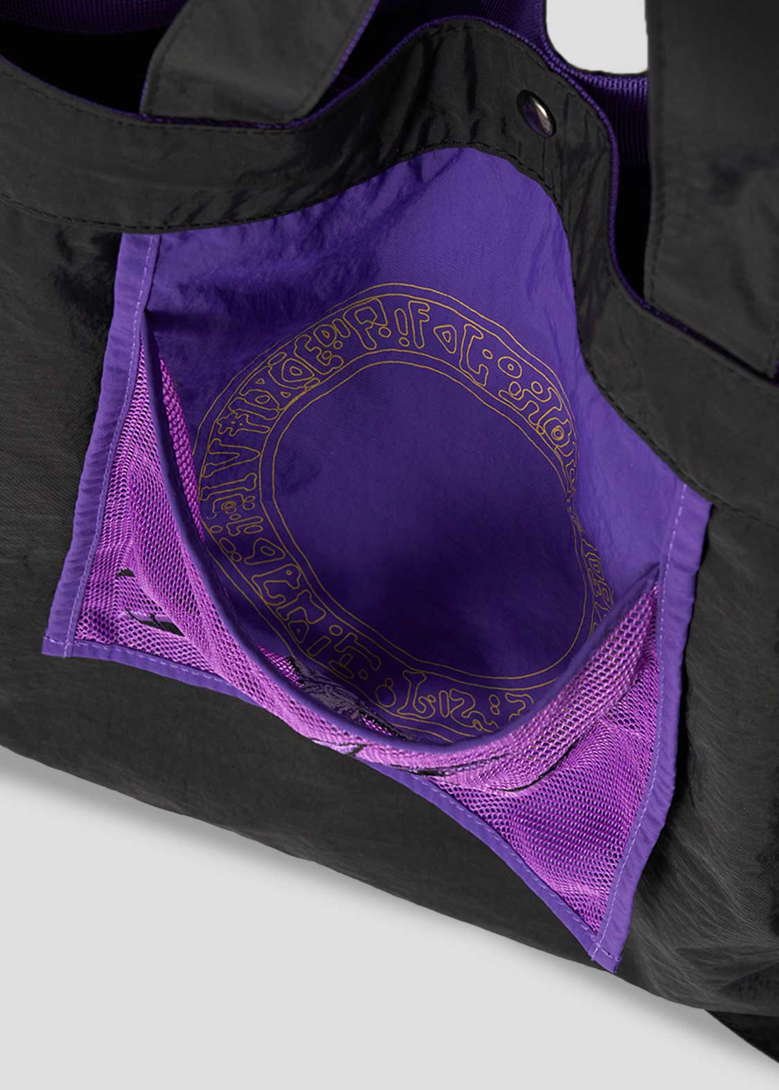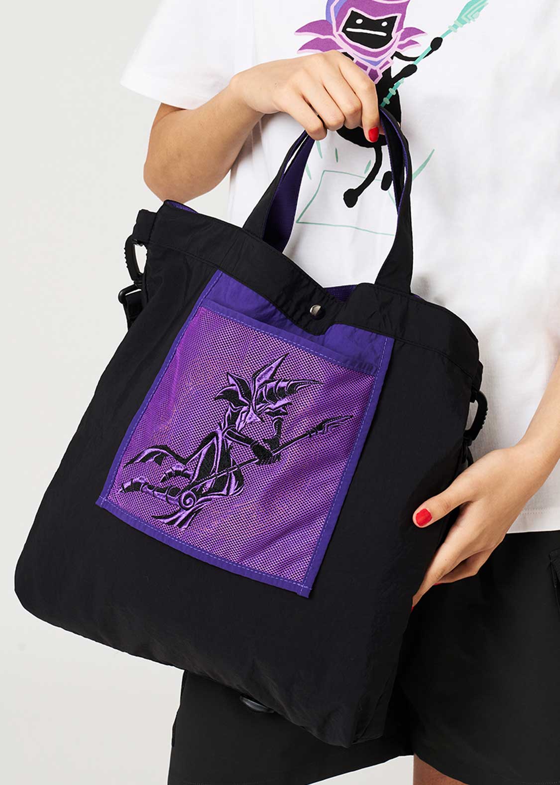 ・グラフィックを刺繍とプリントで表現した2WAYトートバッグ。