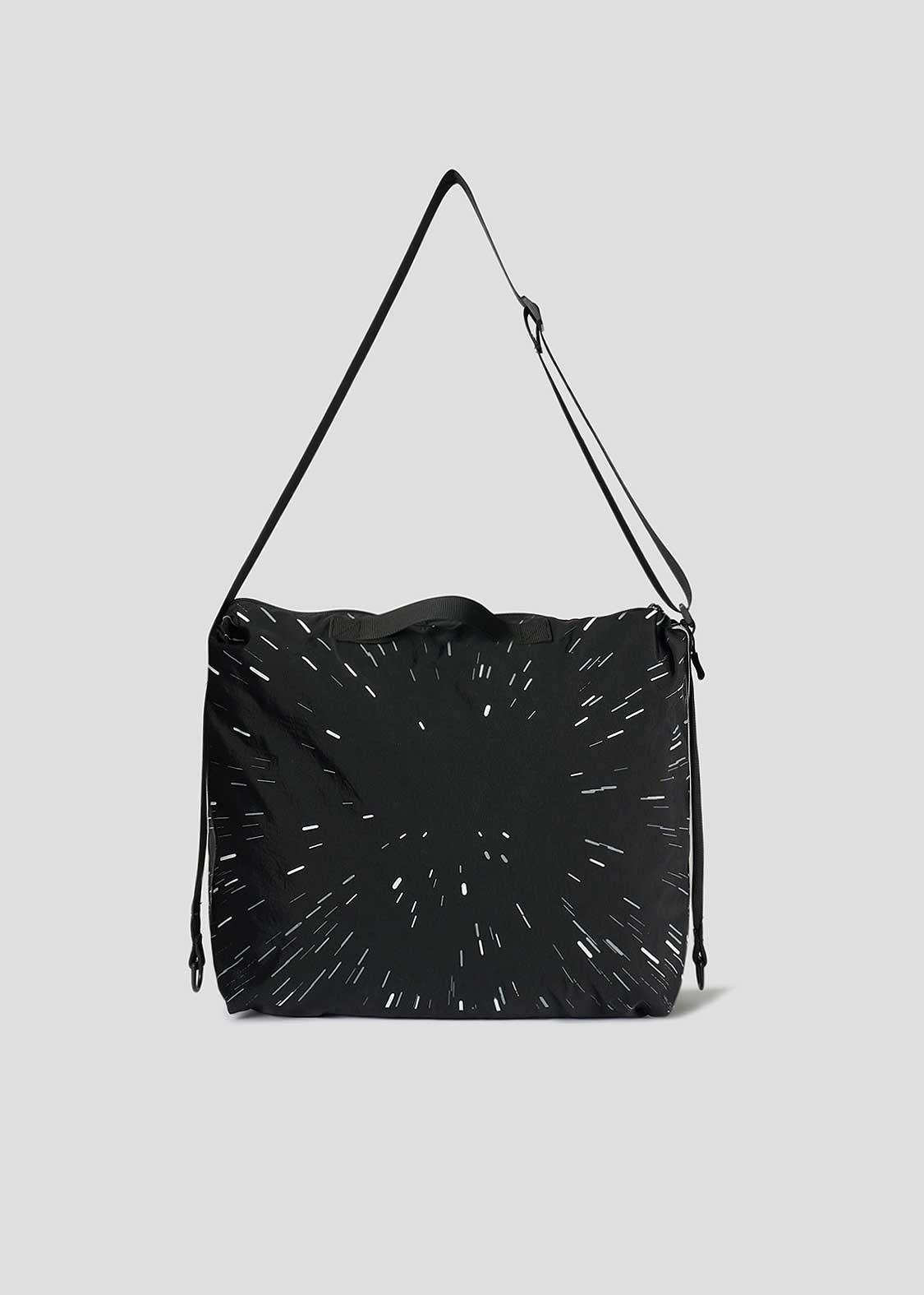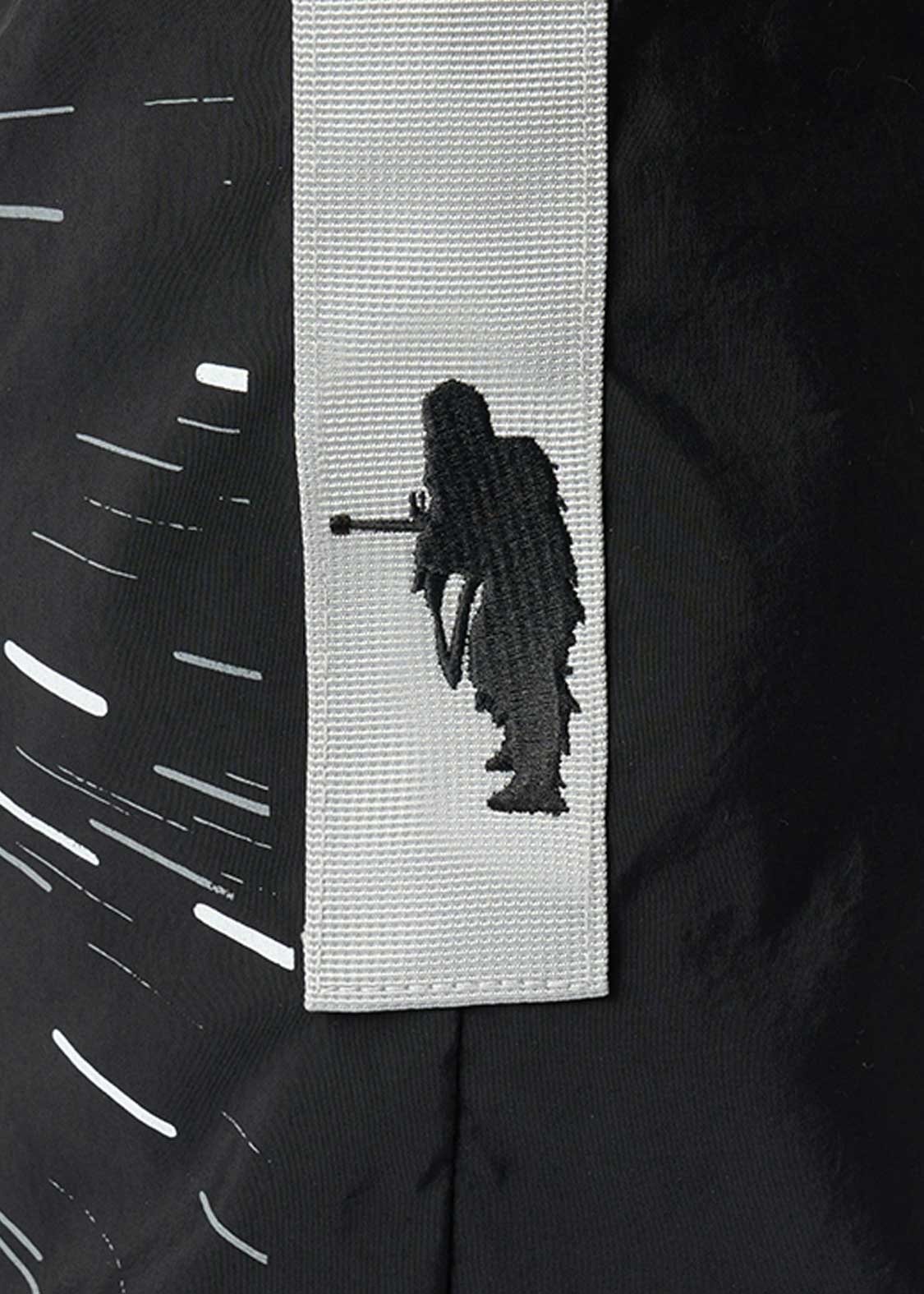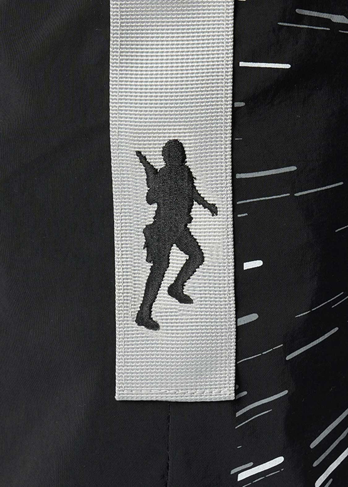 ミレニアム・ファルコンをダイナミックにアルミ粉プリントで表現し、『STAR WARS』のロゴを刺繍であしらったデザイン。バックにはハイパースペースをプリントしています。サイドに刺繍されたハン・ソロとチューバッカのシルエットもアクセントになっています。