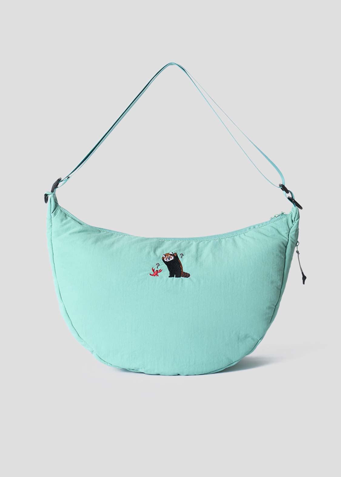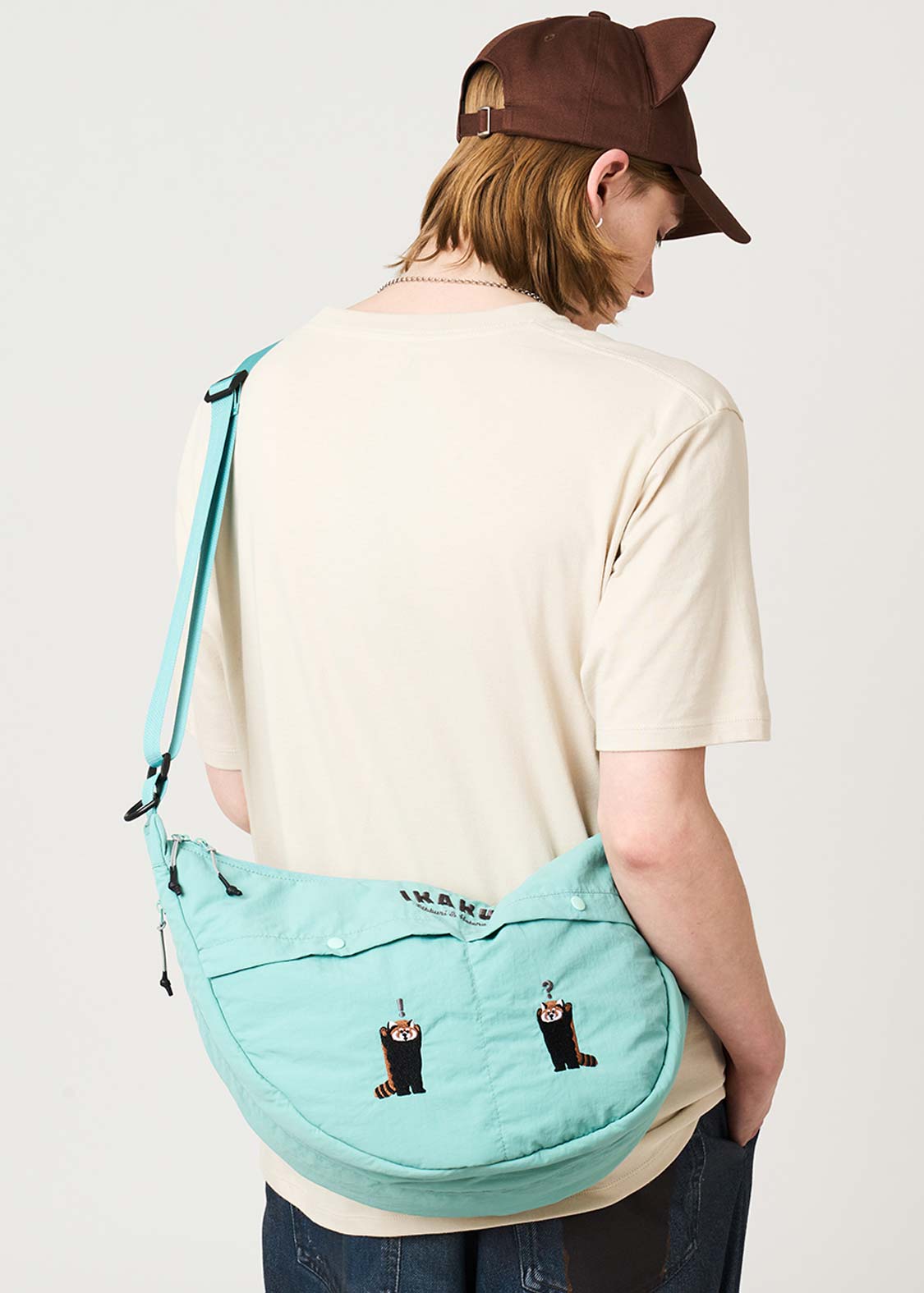 レッサーパンダの「?」と「!」の表情を、遊び心たっぷりにデザイン。ちょっとしたリアクションを切り取った、!?マークがアクセントのグラフィックです。