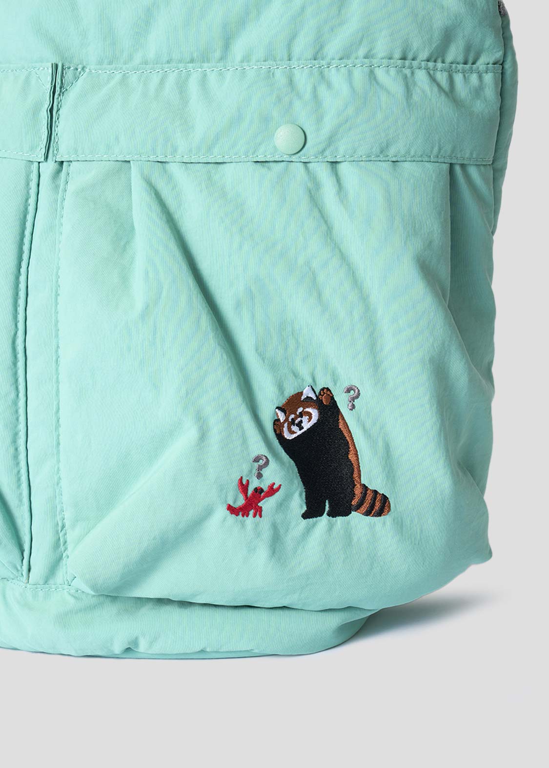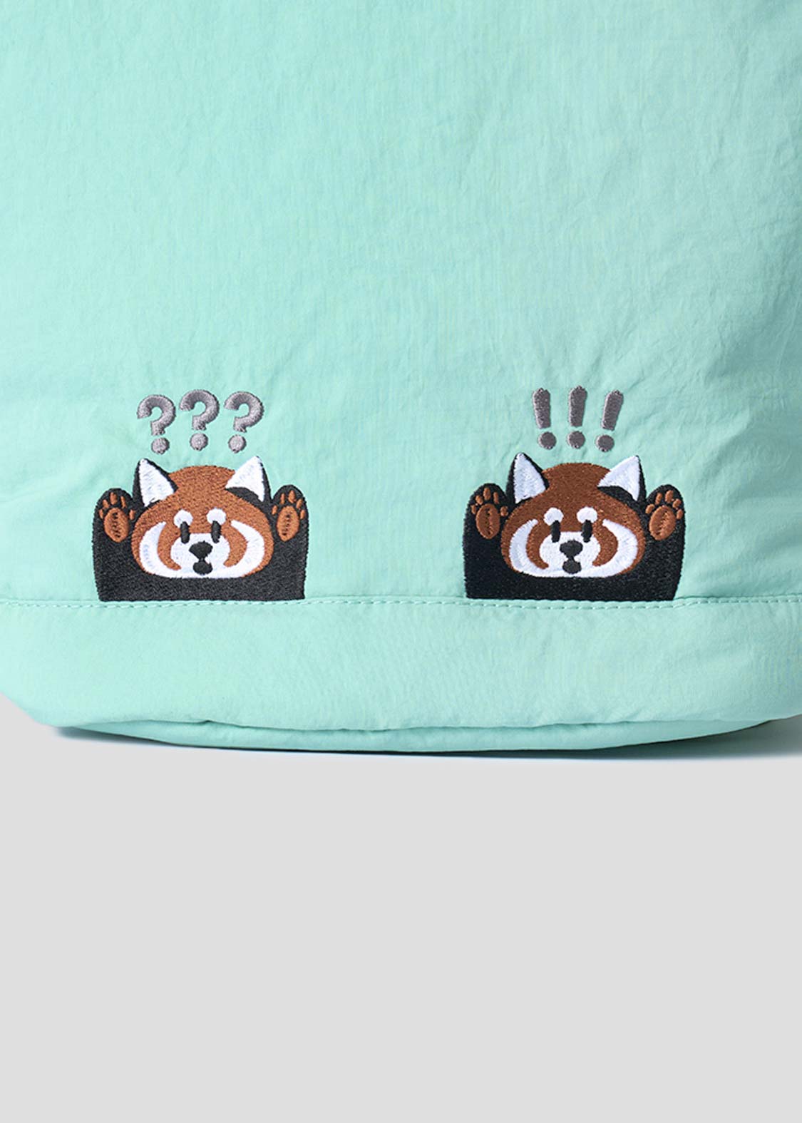 レッサーパンダの「?」と「!」の表情を、遊び心たっぷりにデザイン。ちょっとしたリアクションを切り取った、!?マークがアクセントのグラフィックです。