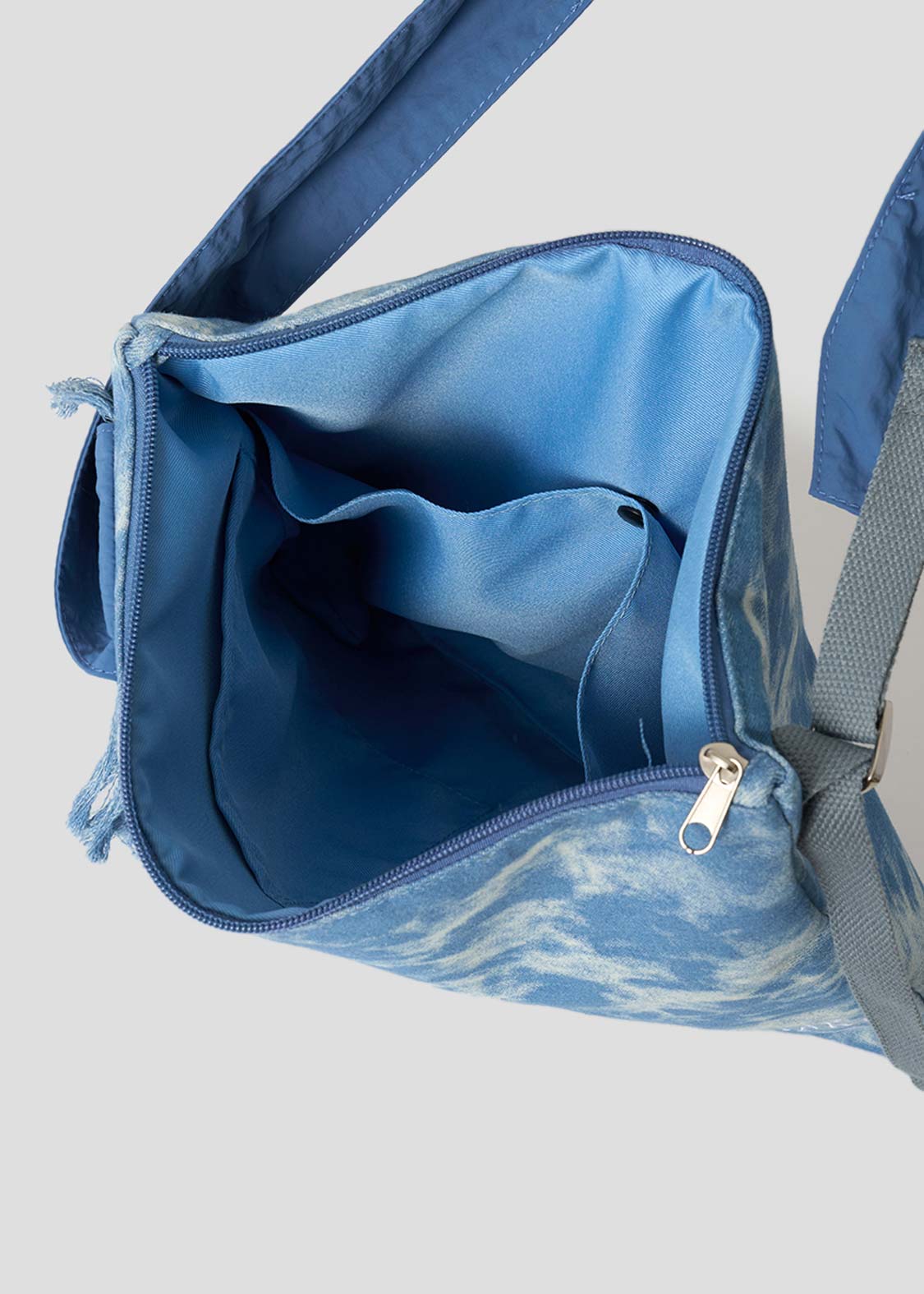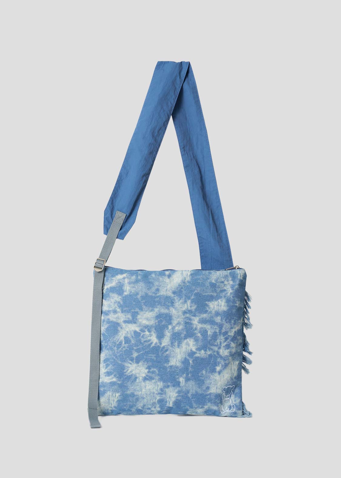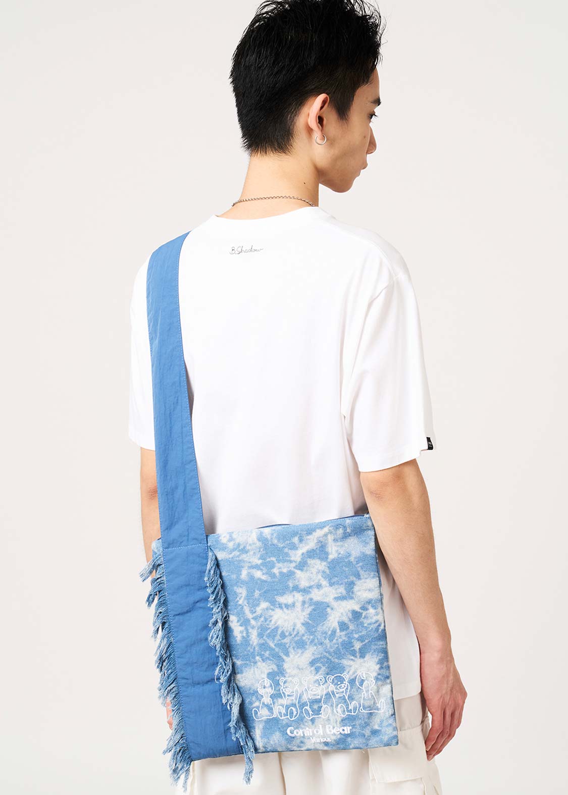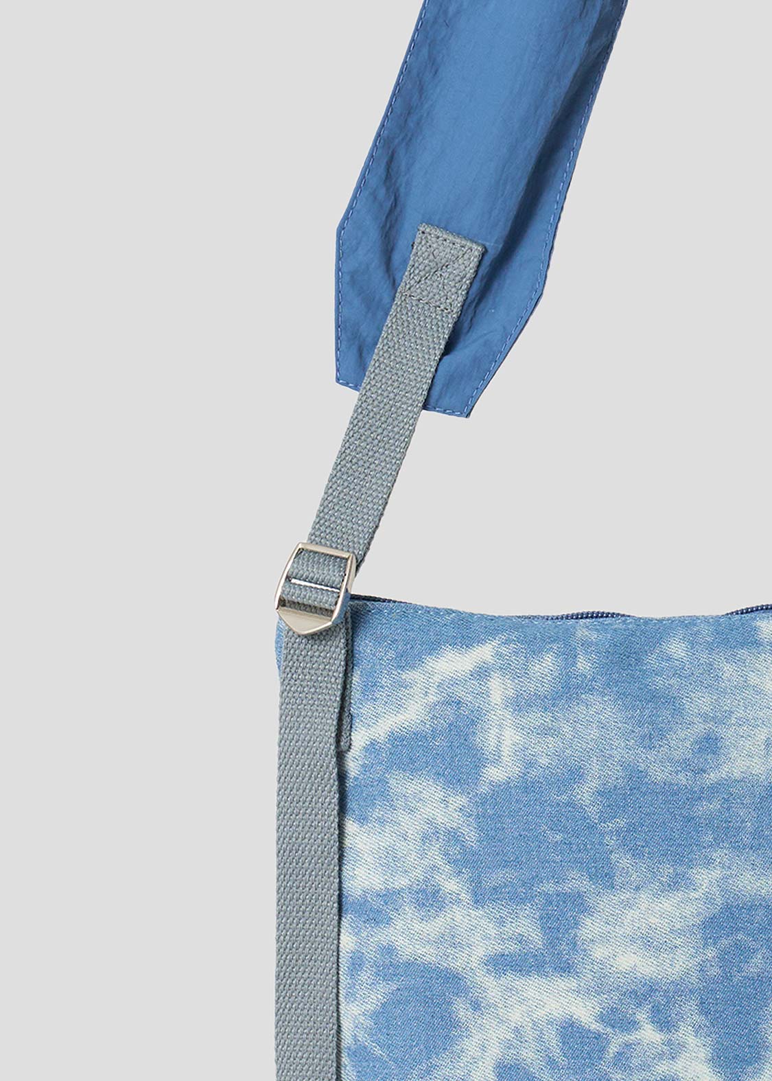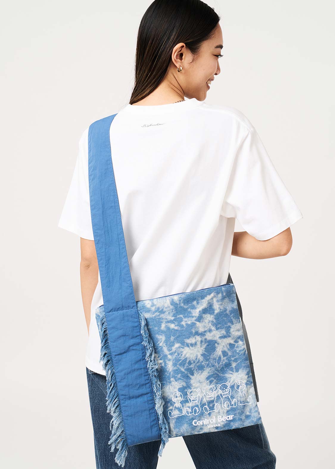 ・加工デニムを使用したショルダーバッグ。