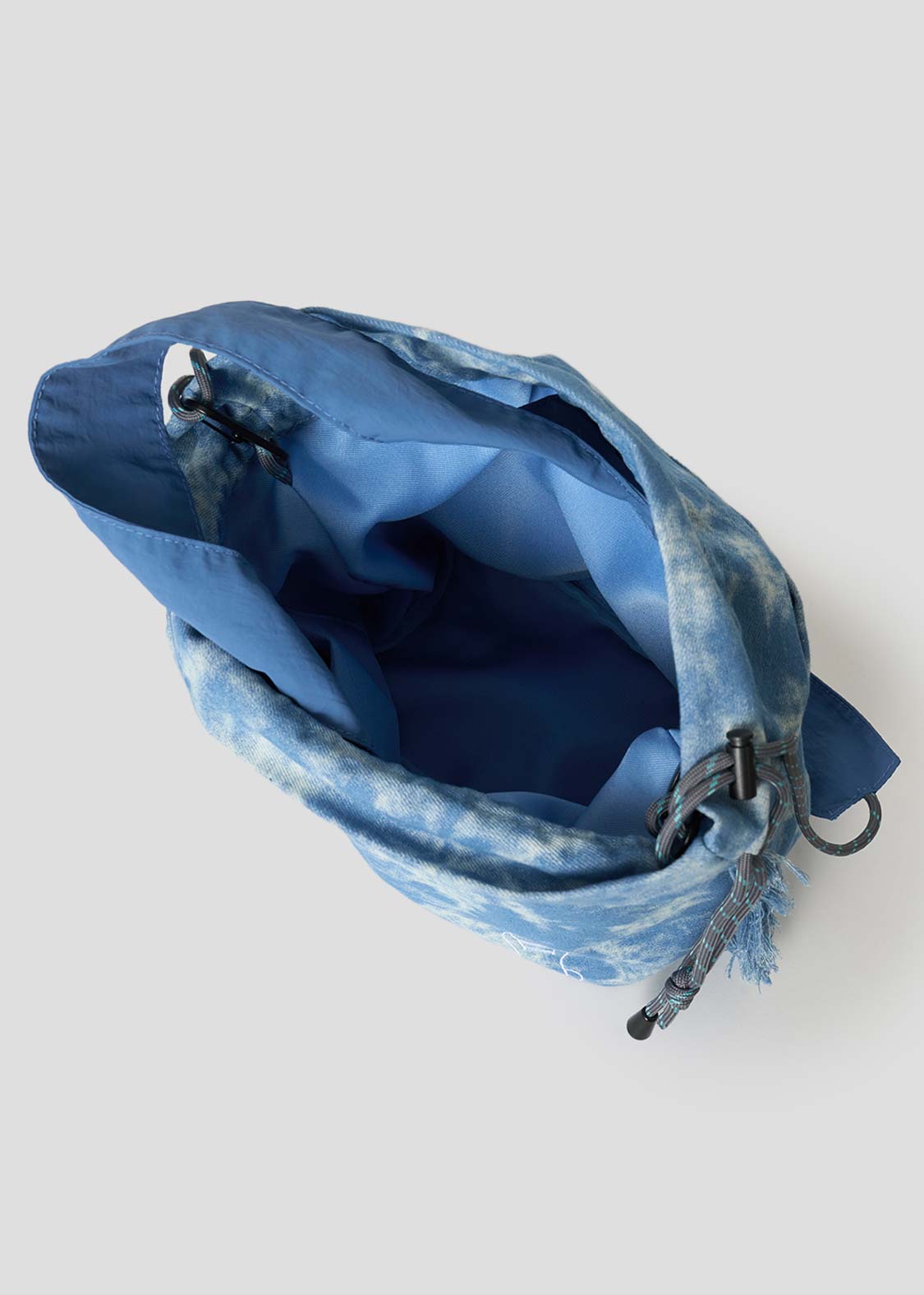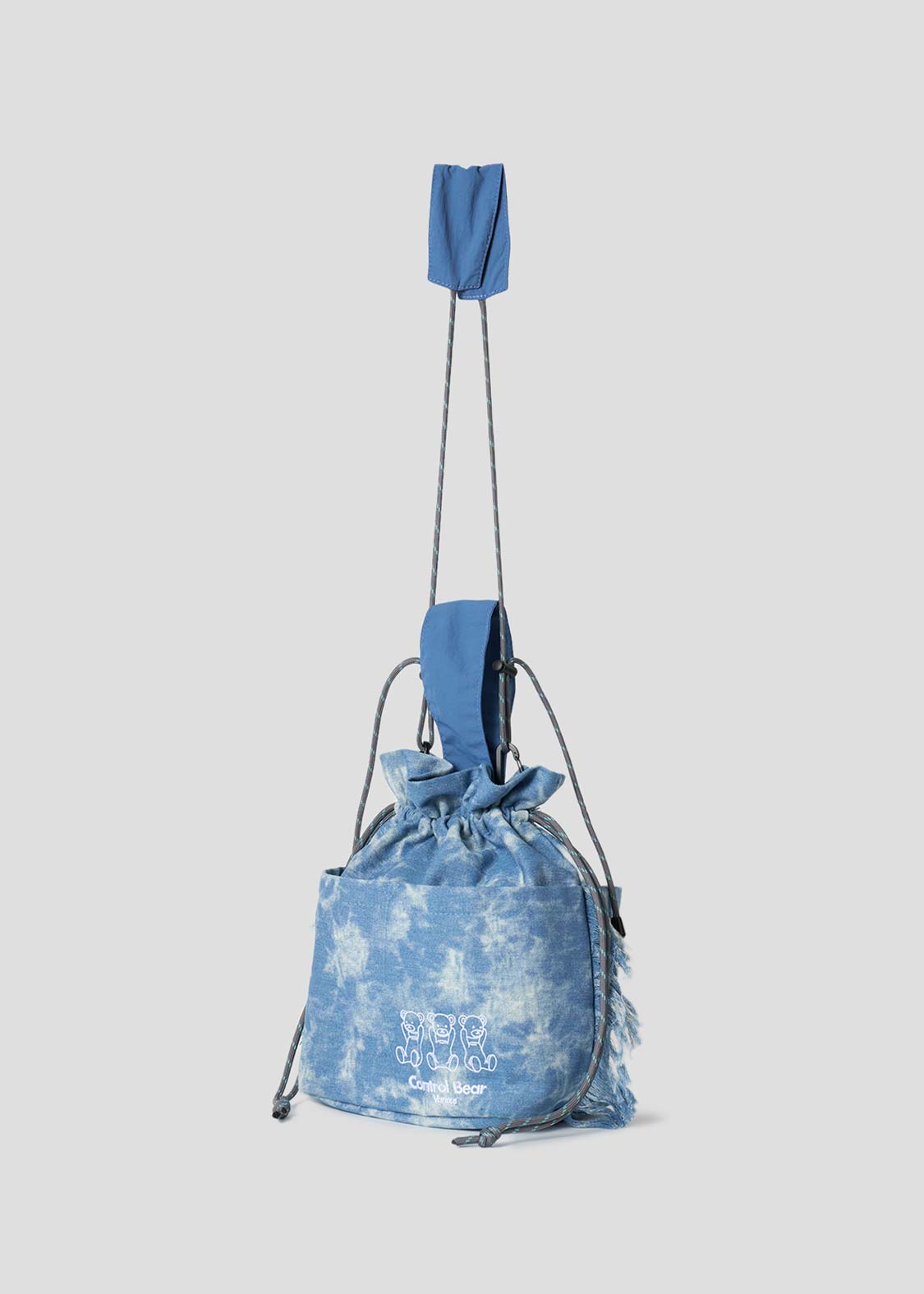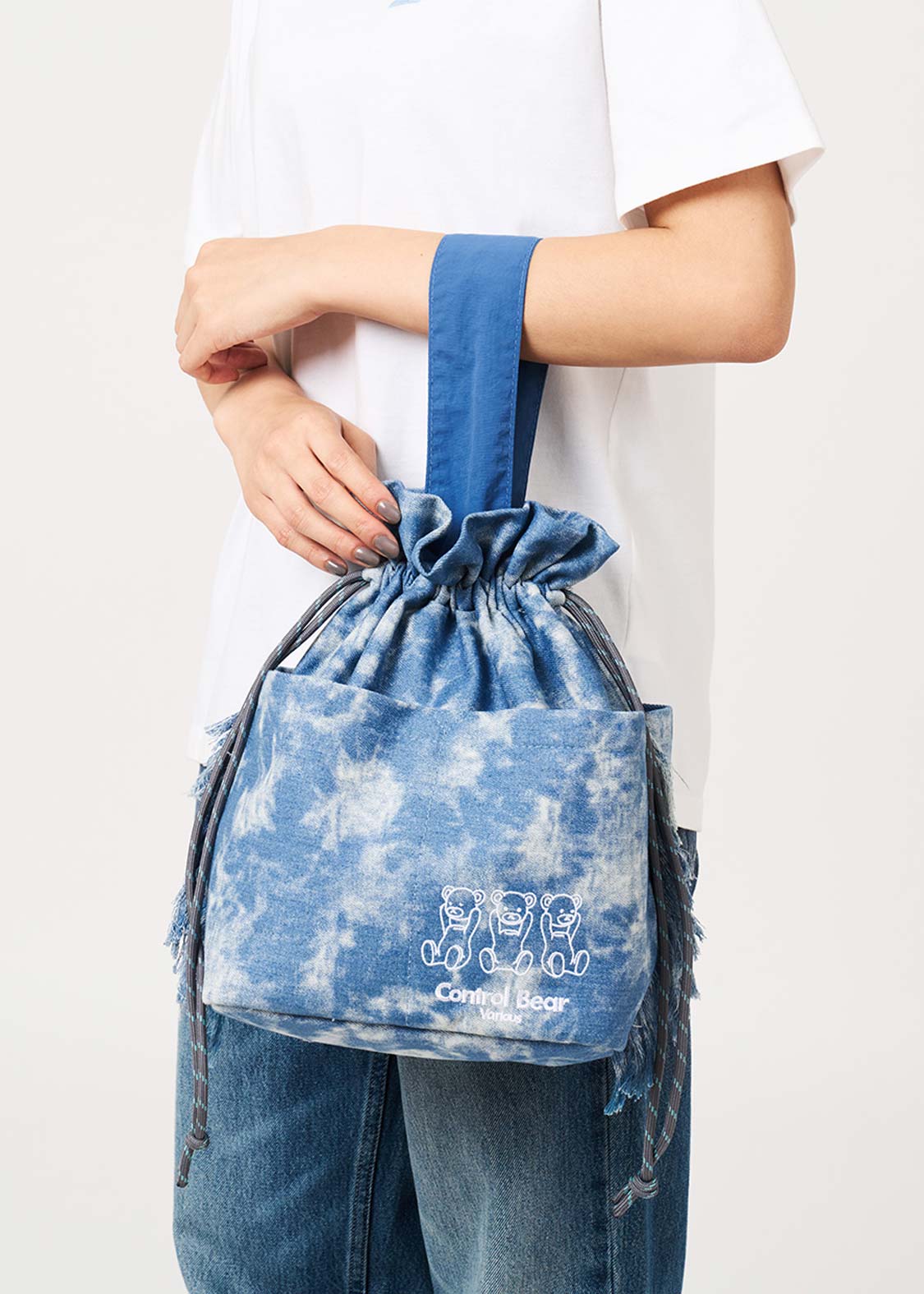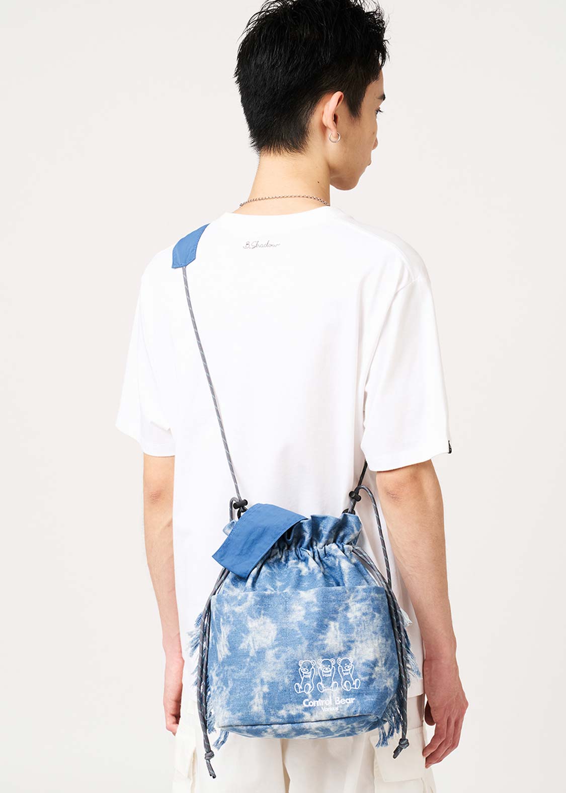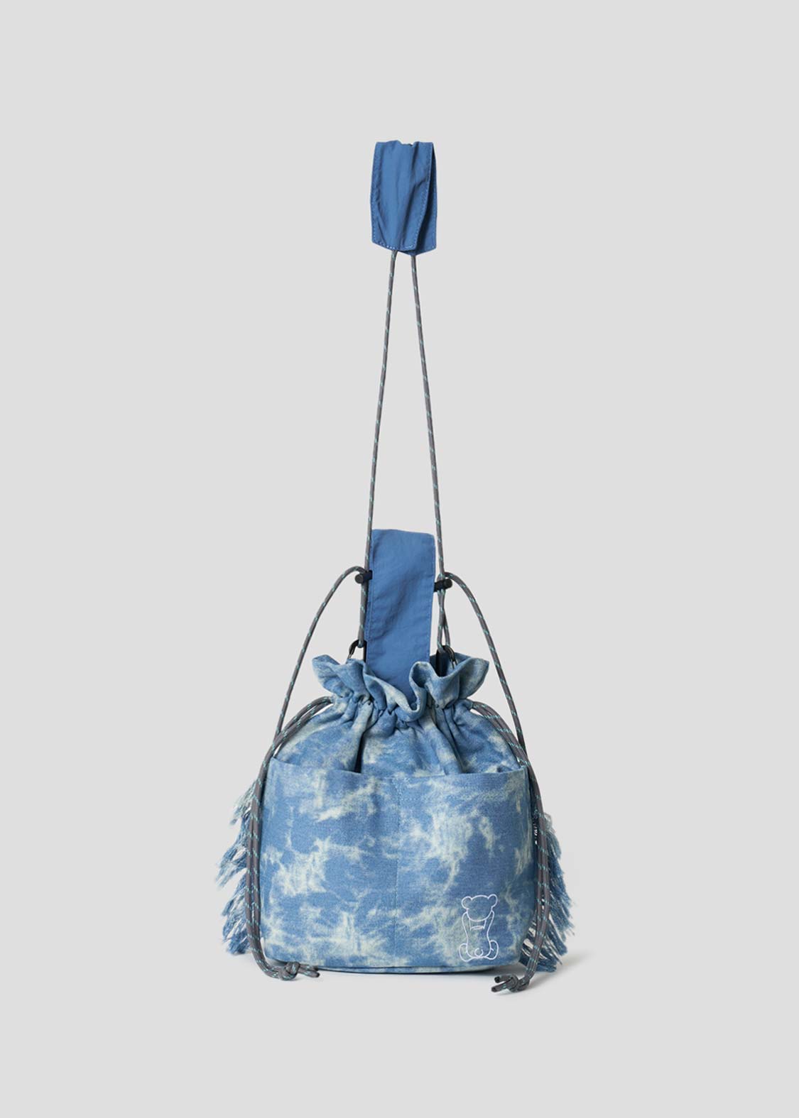 ・加工デニムを使用した、2WAYストリングバッグ。