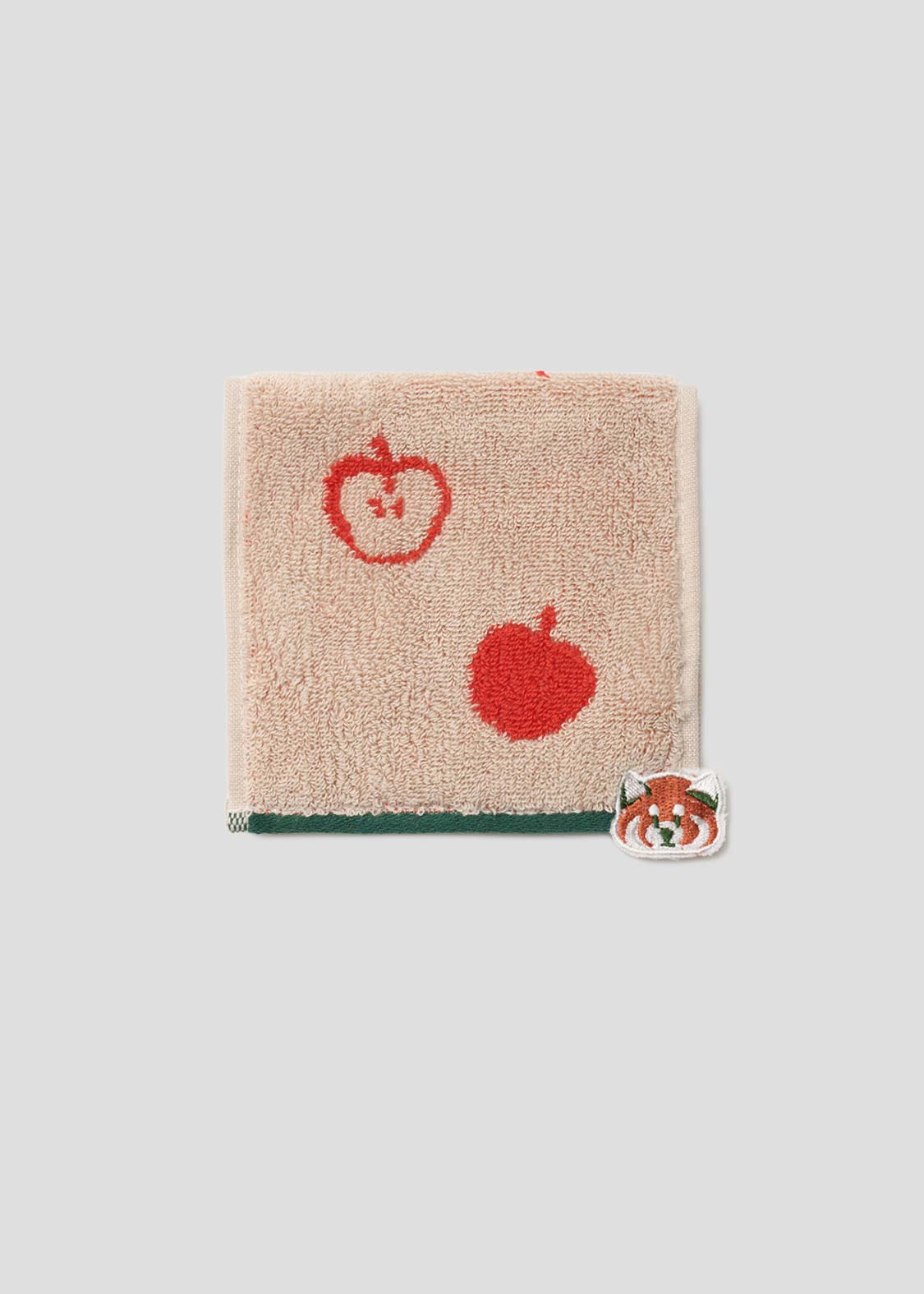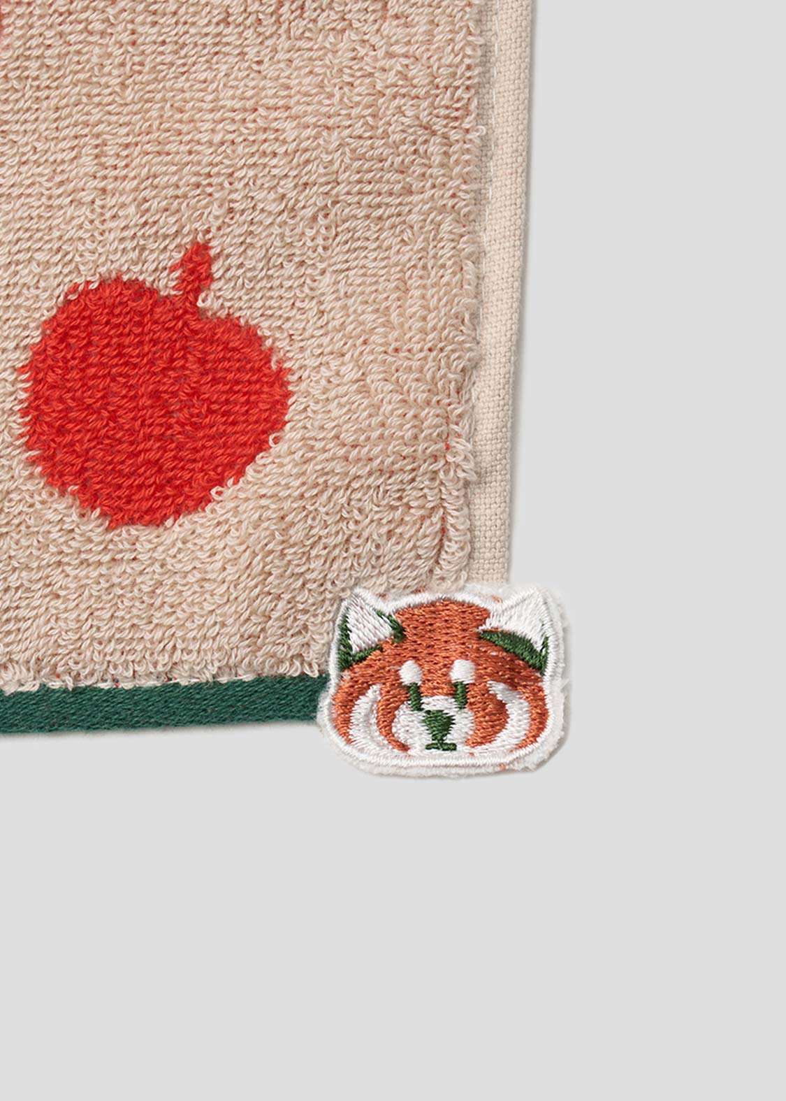 レッサーパンダの大好物、りんごをフィーチュア。赤いりんごがアクセントになる、遊び心のあるグラフィックです。