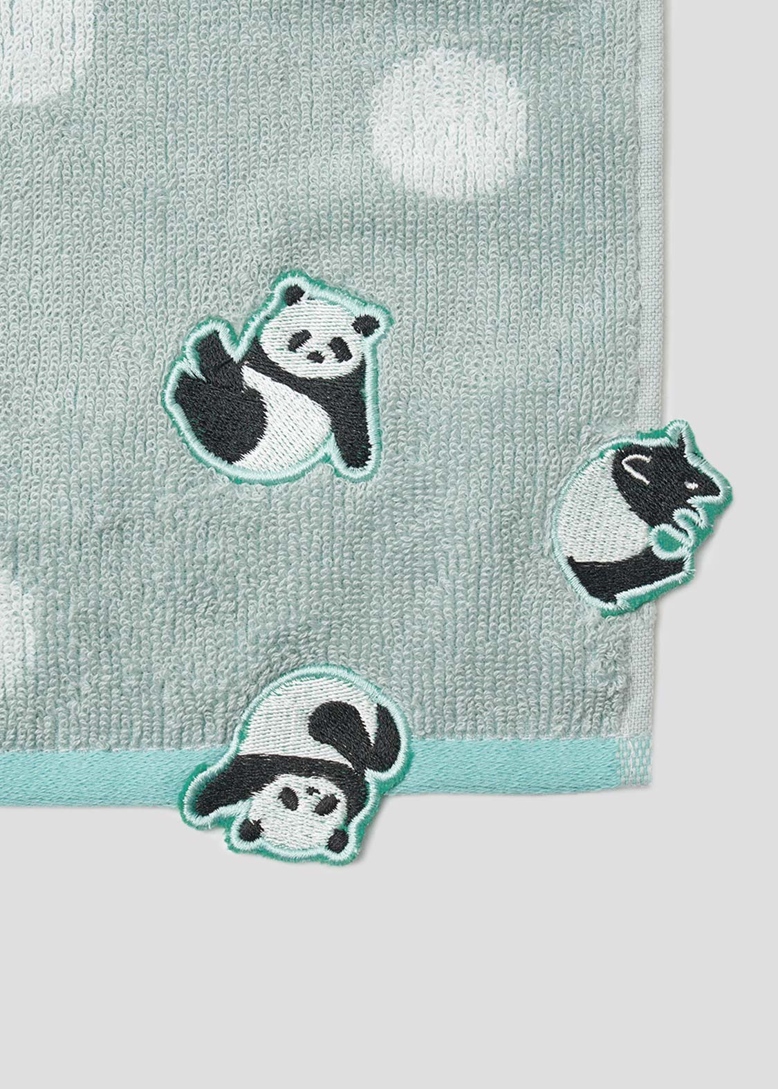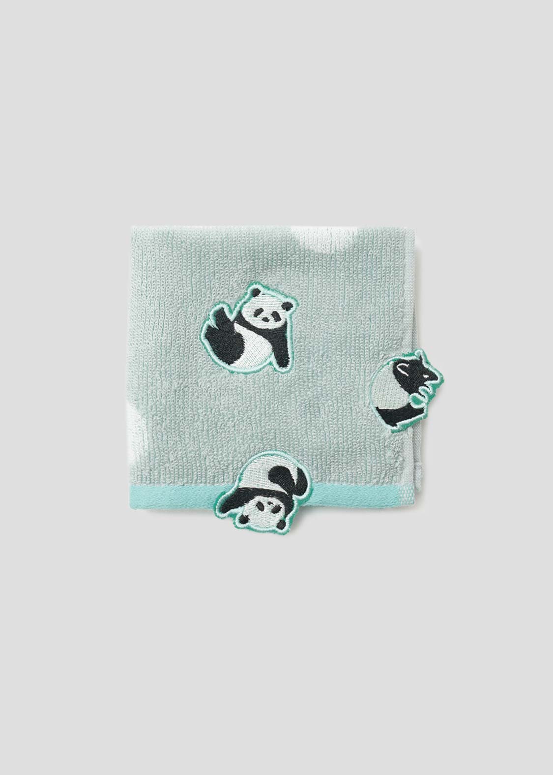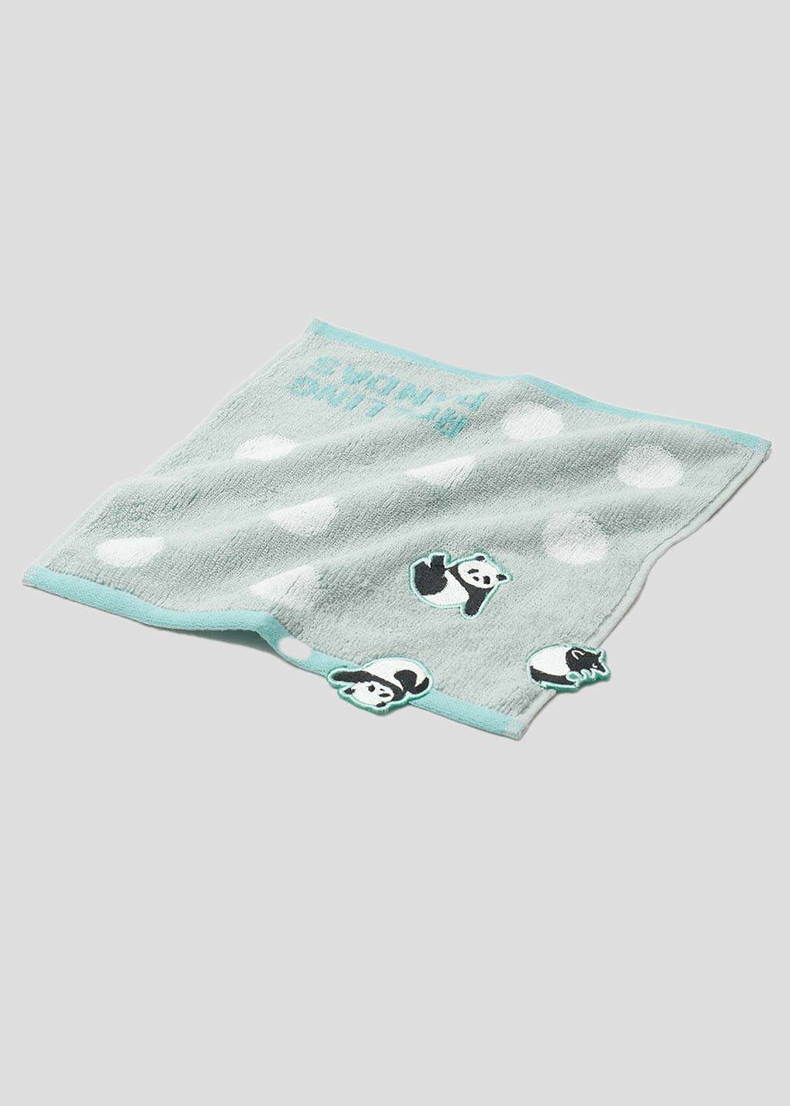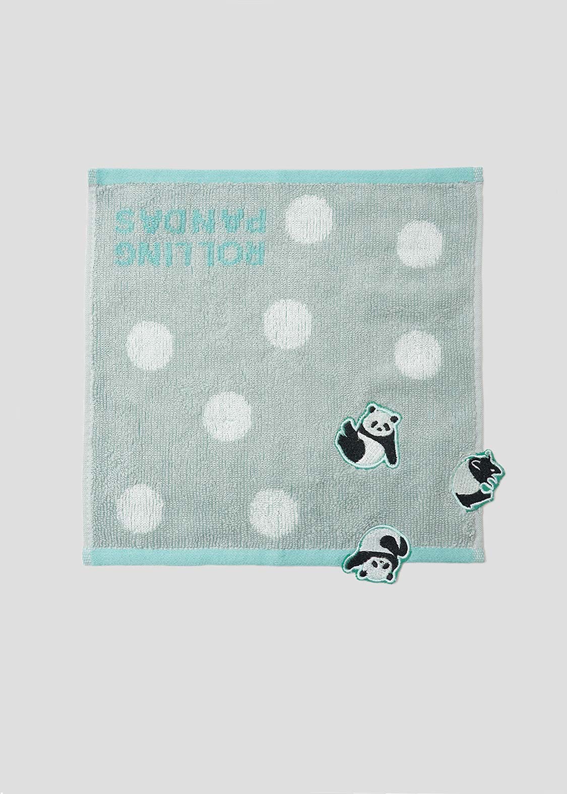 毬のように体を丸めた赤ちゃんパンダが、ころころと転がり落ちていく。その愛らしい姿に思わずほっこり気分になる、キュートなデザインです。