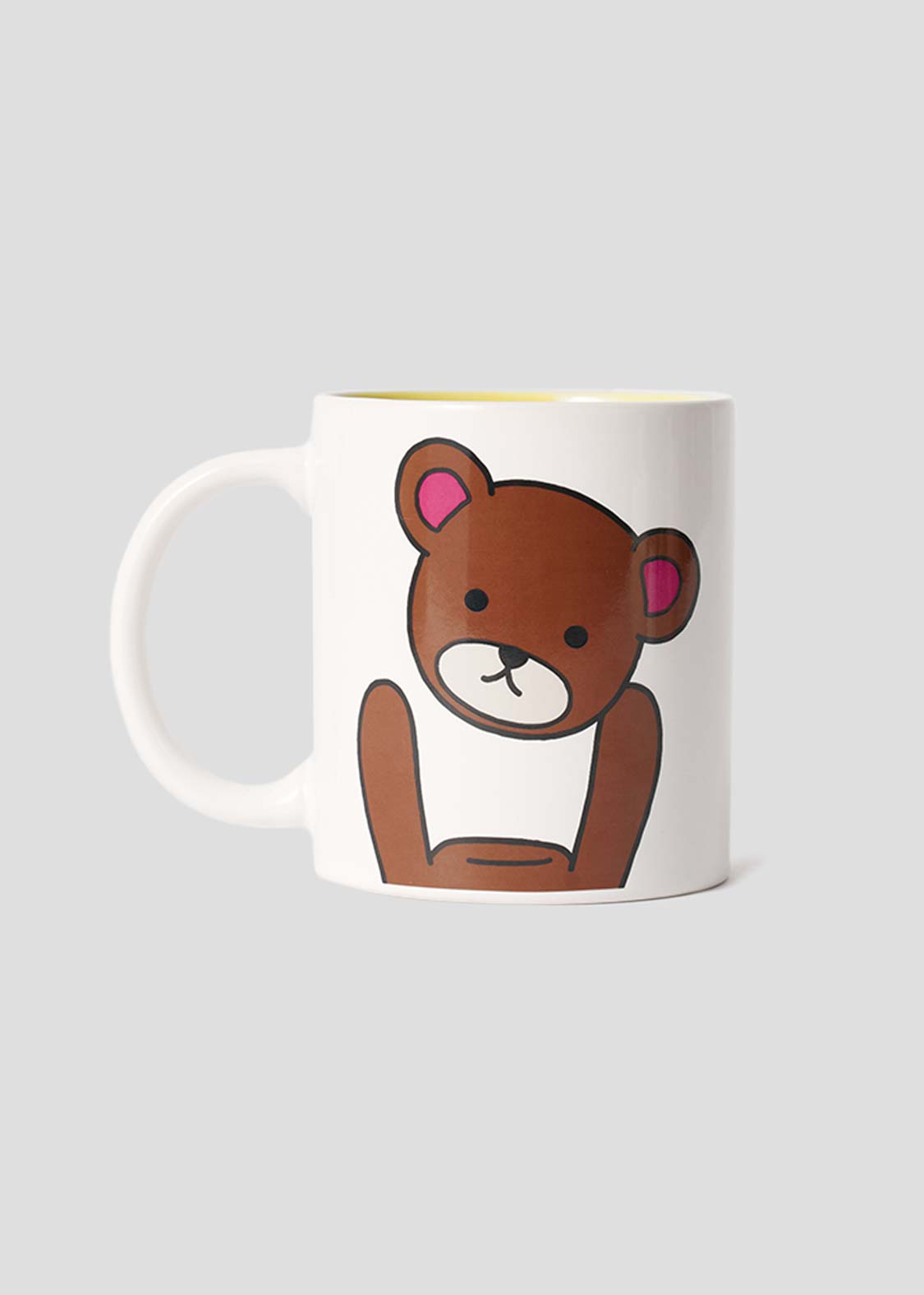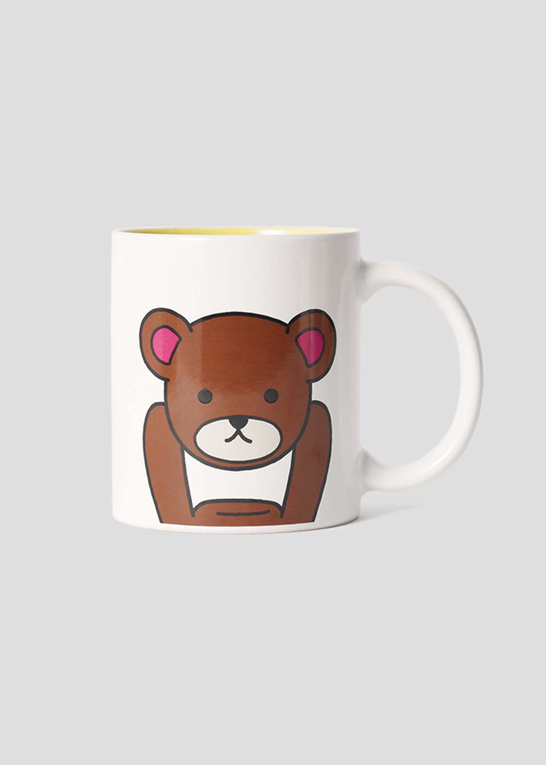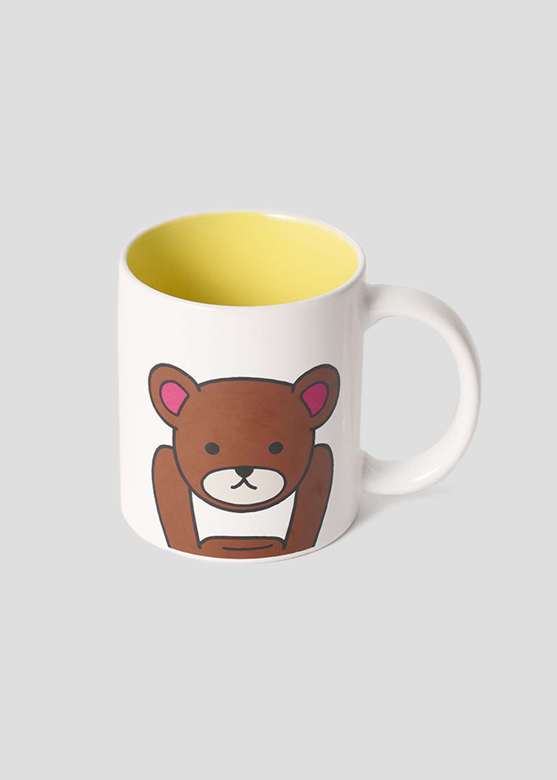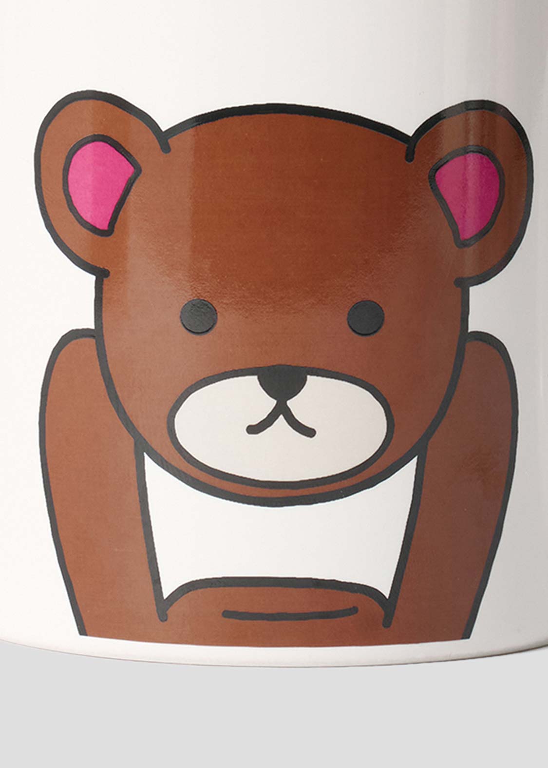 ポン!とばかりに頭をとるファニーなクマくん。ブラックなユーモアとキュートさが混じりあったインパクトのあるキャラクターです。