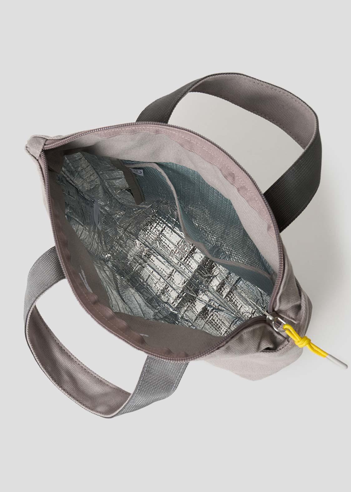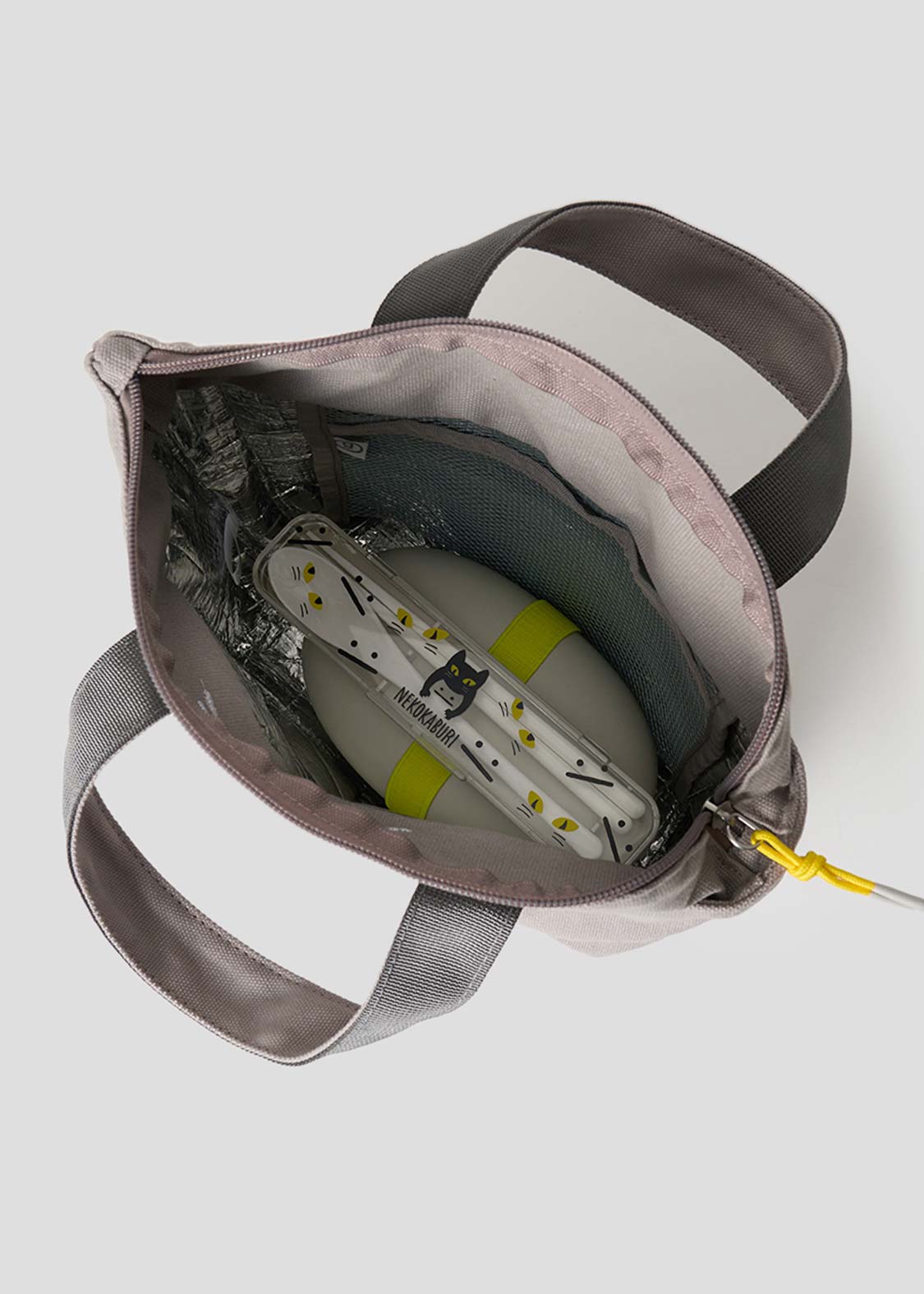 ・表生地にコットンキャンバス素材、内側生地に保冷生地を使用したランチバッグ。