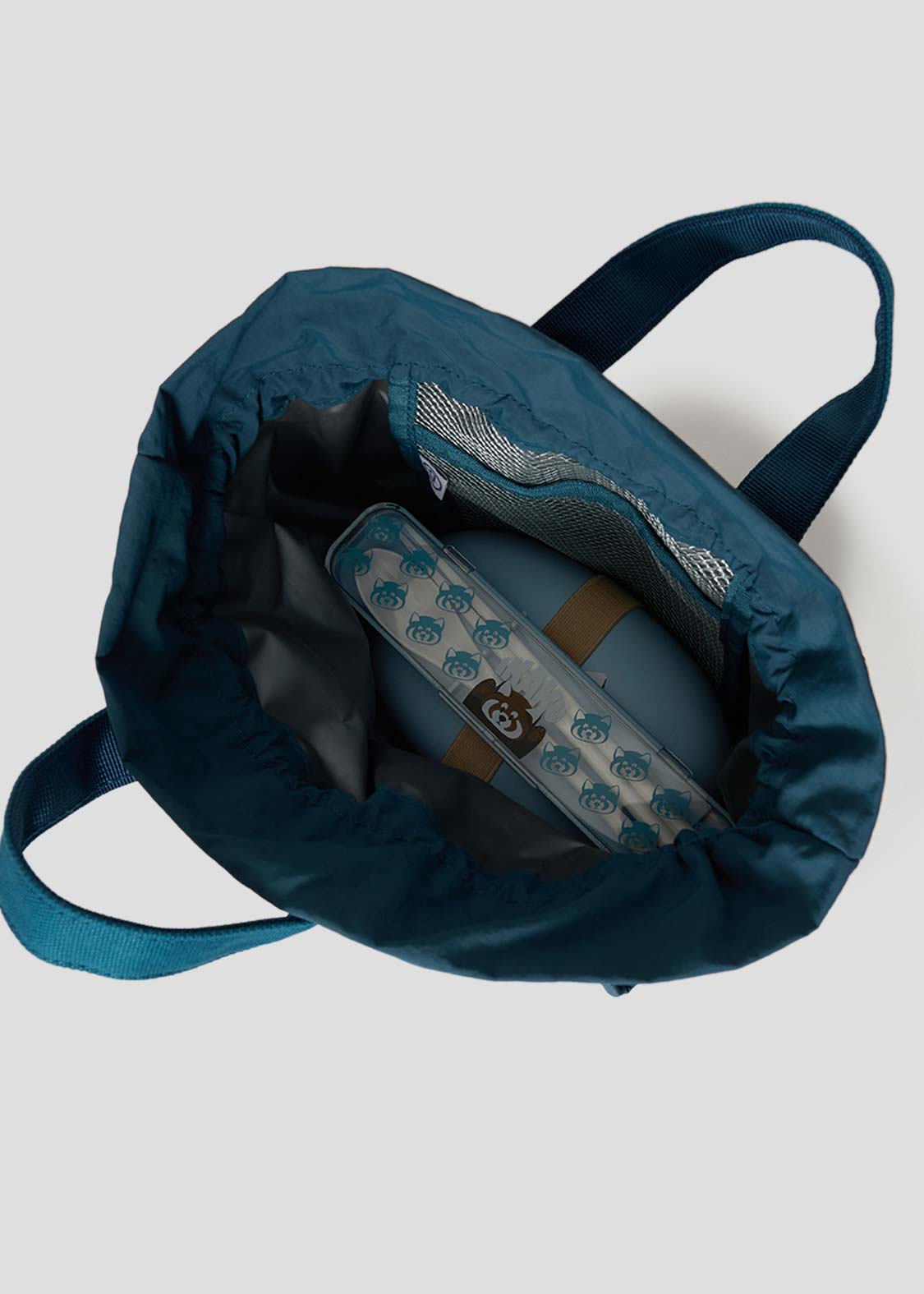 ・巾着バッグの内側に保冷剤を入れられるメッシュポケット付き。
